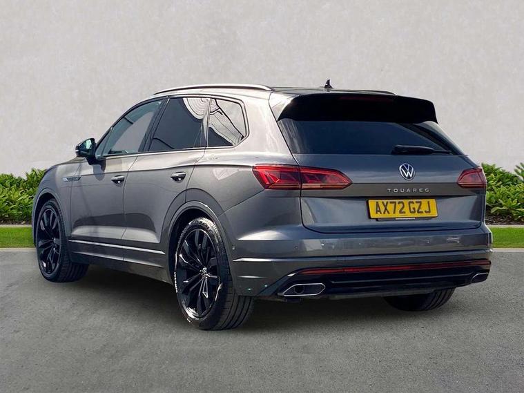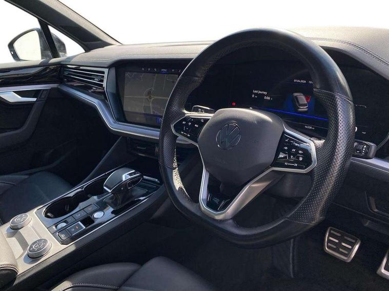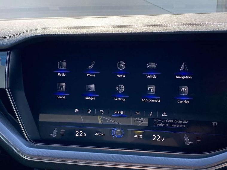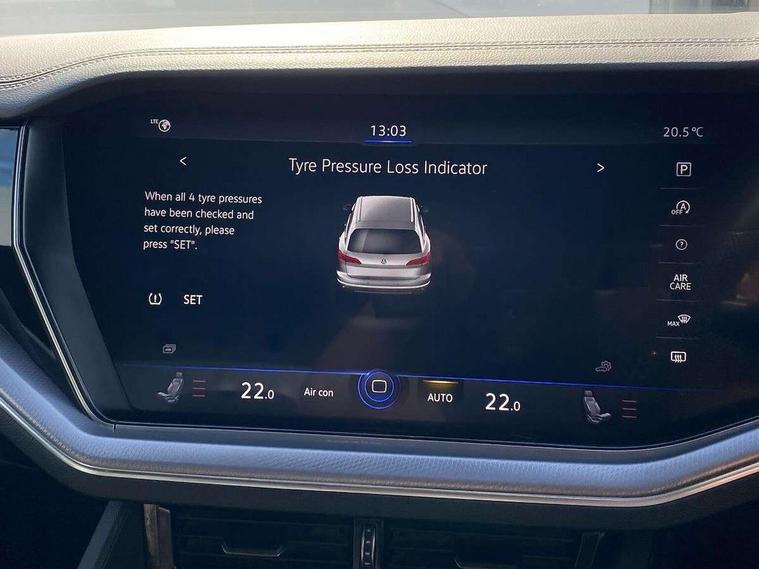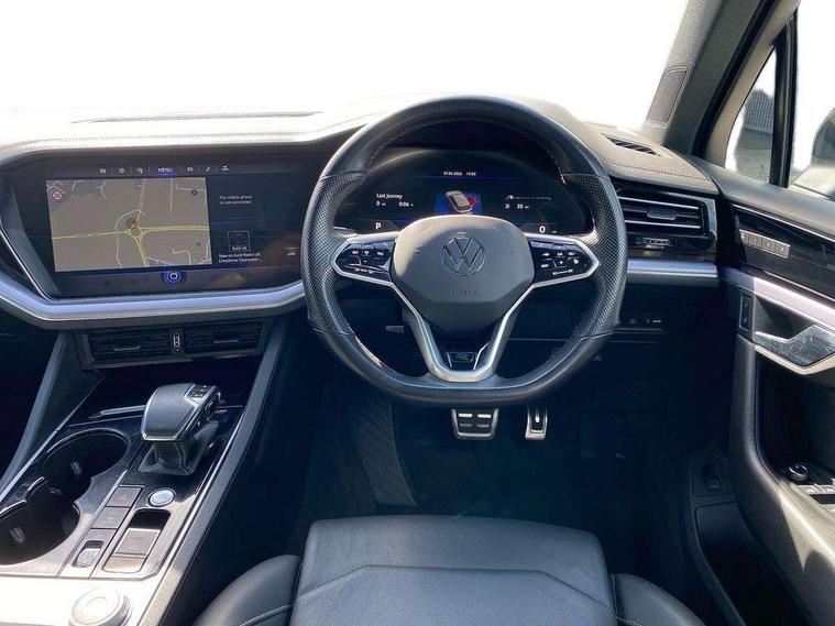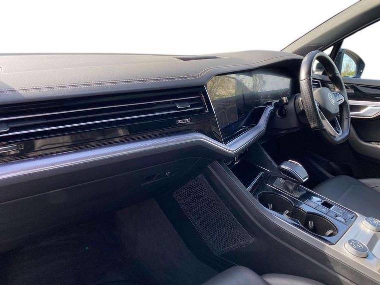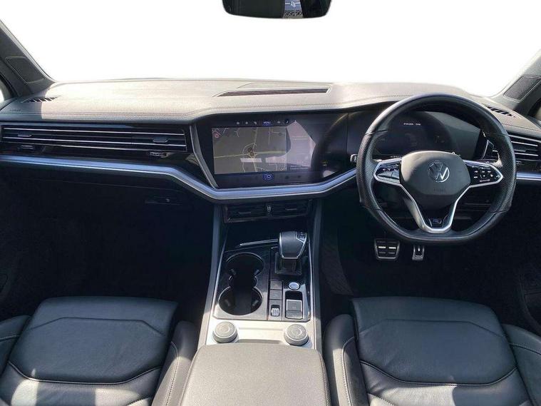 2D/3D map view, ACC - Adaptive cruise control with front assist, forward collision warning, distance monitoring, city emergency brake and speed limiter, Apple car play/Android Auto, Audible and visual fatigue detection system, Bluetooth hands free telephone connection, Car information display, Drive select with Damper control, Driver alert system, Driver profile selection, Dynamic road sign display camera controlled system with visual warning for traffic and road signs, eCall emergency system, Fully electric tailgate + keyless entry and start, Instrument cluster, MirrorLink, Multifunction camera, Multifunction computer premium with 7" colour display, One touch indicators with repeat function, Service interval indicator, Speed sensitive power steering, Start/stop system with regenerative braking, Tailgate power latch, Think blue trainer driver tips and journey analysis, Traffic sign recognition, Voice control system, Wireless Smartphone charger, 24 litre AdBlue tank, Torsen limited slip differential, DAB Digital radio, Dynamic navigation based on TMC+, Gesture control for infotainment system, Multi device interface (MDI) with illuminated USB-C connection, Music playback - MP3, WMA and AAC files, SD card slot, Simultaneous pairing of 2 compatible mobile devices, SMS functionality - read, compose and send SMS messages using touch-screen display, Title and cover art display, Volkswagen media control, Adaptive low beam for urban and motorway use, Auto dimming rear view mirror, Automatic coming/leaving home lighting function, Automatic headlights, Black anodised roof rails, Black door mirrors, Black rear diffuser, Black side window surrounds, Black upper and lower grille louvres extending into headlights and radiator grille, Body colour door handles, Body coloured wheel arches, C signature gloss black front air intake, Chromed tailpipe on the left and right integrated in the bumper with trapezoid design, Dusk sensor, Dynamic headlight range control, Electric front tilt/slide panoramic sunroof and fixed rear sunroof, Electrically power adjustable, heated, folding, auto dimming, front passenger exterior door mirror lowering function, Front and rear electric windows, Galvanised body, Gloss black finish B pillar, Gloss black rear diffuser, Headlight washers, Heat insulating darkened glass in side and rear windows, Heated windscreen washer jets, IQ.Light-LED matrix headlight, daytime running light with dynamic cornering light and indicator, LED 3rd brake light, LED rear fog light, LED rear number plate lights, Plastic scuff plates in door apertures, Poor weather light, Puddle lights, Rain sensor, Rear side wing doors, Rear wiper, 12V socket in front and rear centre console and boot, 2 Coat hooks on B pillar, 3 rear head restraints, 3 seat bench in 2nd row, 3 spoke sport heated leather multi-function sports steering wheel with gear shift paddles - generation 2, 4 way adjustable front head restraints, 4 way electric lumbar support for driver and front passenger, 4 zone climate control, 40:20:40 split folding slide/recline rear seat, B pillar vents, Black lower edge of door extending sills, Branded points of interest, Double sun visor for drivier and passenger with LED illuminated vanity mirrors, Electric luggage compartment cover, Folding rear centre armrest with 2 cupholders, Front + rear carpet mats, Front centre armrest with storage box, Gear shift indicator, Height/reach adjust steering wheel, Illuminated air conditioned glovebox, Isofix preparation for 2 rear child seats, Jack and tool kit, Leather trimmed gear knob with gloss black inlay/aluminum trim, Leatherette door trim, LED luggage compartment lighting, Load through provision, Luggage compartment with load lashing rings, Plastic loading edge protection, Rear seat remote release levers, Single front passenger seat, Soul black headlining, Stainless steel pedals, Innovision cockpit pack - Touareg, 3 point front seatbelts with pre-tensioners, ABS, Active bonnet, Automatic post collision braking system, Curtain airbags, Driver/Front Passenger airbags, EBD + Brake Assist, EDL, Electronic parking brake with auto hold, ESC with ASR, Front seat side impact airbags, Hill descent control, Hill start assist, Passenger airbag deactivate switch, Seatbelt warning lamp and buzzer, Three 3 point rear seatbelts, Two tone horn, Volkswagen roadside assistance, Warning triangle and first aid kit, Alarm with interior monitoring in cab, backup horn and towing protection, Child security locks for front and rear doors, Electronic engine immobiliser, Remote central locking, Black decorative trims on the side windows, High gloss black centre console,