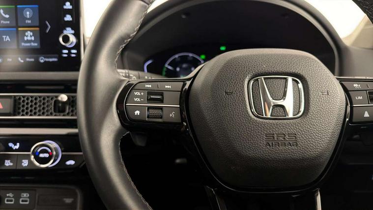 7" Multi information display screen, Adaptive cruise control, Adaptive motion for electric power steering, Adjustable speed limiter, Agile handling assist, BLIS (Blind Spot Information System) with Cross Traffic Monitor, Bluetooth hands free telephone connection, Driving modes, Economy mode, Electric power steering wheel with variable gear ratio steering, Emergency call service, Emergency stop signalling system, Forward collision warning, Front and rear parking sensors, Honda CONNECT with Navigation 9" touchscreen, AM/FM/DAB, Apple Carplay and Android Auto, live traffic info, Honda sensing, Idle stop, Intelligent speed limiter, Lane departure warning system, Lane keep assist, Low speed following, Power meter, Rear parking camera, Road departure mitigation, Tailgate, Traffic jam assist, Traffic sign recognition, Wireless apple carplay, Vehicle stability assist, 'Shark fin' mobile antenna, 2x USB Front socket (1 data & 1 charge), 8 Speakers, Digital Audio Broadcast (DAB) Tuner, Front tweeters, Steering wheel mounted audio controls, Aspherical driver door mirrors, Auto headlight adjuster, Auto headlights, Automatic coming/leaving home lighting function, Automatic rain sensing wipers, Body colour door handles, Chrome window garnish, Electric adjustable heated door mirrors, Electric front and rear windows, Electrically folding door mirrors, Headlight extension black, High beam assist, High level LED brake light, LED daytime running lights, LED front turn type, LED Headlights, LED rear lights, Material finish grille, Pop up hood, Privacy glass, Rear side wing doors, Rear wiper, Single hidden exhaust pipe, Variable front intermittent wipers, 3 seat bench in 2nd row, 60/40 split folding rear seat, Cargo accessory power socket, Cargo net hooks, Driver and front passenger seat armrests, Driver's electric lumbar adjustment, Driver's seat height adjustment, Dual climate control air conditioning system, Fabric upholstery, Front accessory power socket, Front map lights, Front/rear courtesy lights, Glovebox light, Heated front seats, Hybrid emblem, Isofix points/i size, Leather steering wheel, Meter Illumination white, Passenger seat back pocket, Platinum chrome interior door handles, Rear head restraints, Rear reading lights, Rear seat centre armrest, Single front passenger seat, Sunvisors with illuminated vanity mirrors, Tilt/telescopic adjustable steering wheel, Tonneau cover, Trunk light, USB Rear number 2 x charge, White ambient roof light, 3x3 point rear seatbelts, ABS+EBD+Brake assist, Airbags - driver and front passenger, Airbags - Knee (AS), Airbags - Knee (DR), Anti-whiplash front headrests, Brake hold function, Collision mitigation braking system, Collision mitigation throttle control, Deflation detection system, Driver SRS airbag (single stage inflation), Electronic parking brake with auto hold, Front and rear curtain airbags, Front and rear seat belts with emergency locking retractor (ELR), Front centre airbag, Front side airbags, Hill start assist, Low speed brake system, Manual child lock in rear doors, Passenger airbag deactivate switch, Rear airbags, Regenerative braking/deceleration paddle control, Immobiliser, Mirrors and windows key fob, Remote central locking with 2 jack knife keys, Security alarm, Selectable door unlock, Smart entry + Smart start, Superlocking, Tilt sensors, Ultrasonic security sensor, 17" 2 tone diamond cut alloy wheels, Tyre repair kit,
