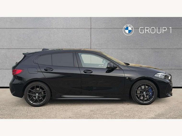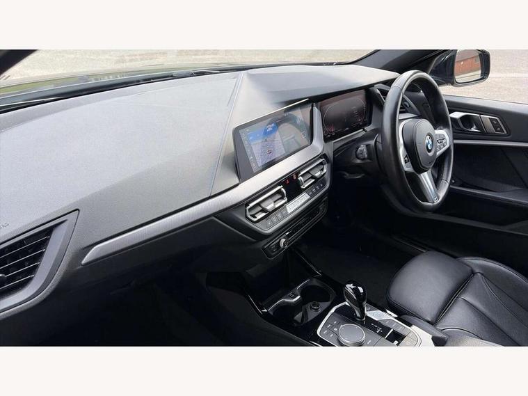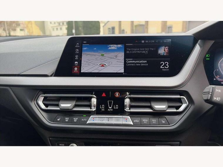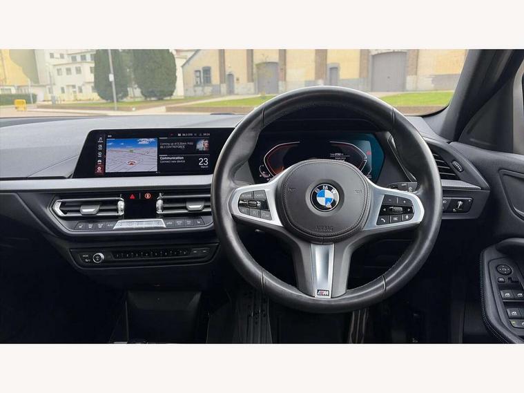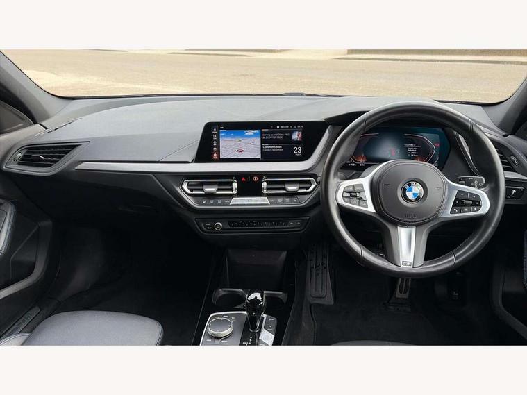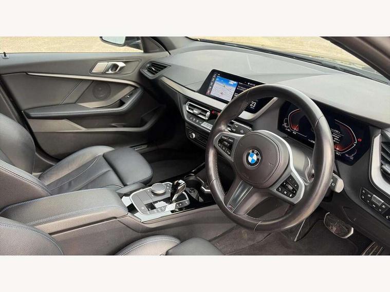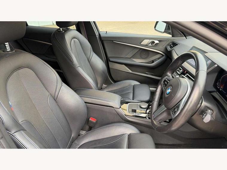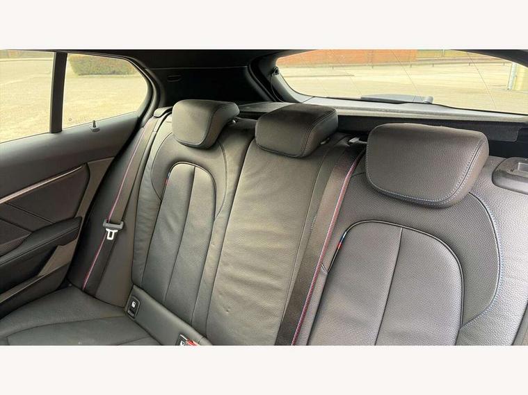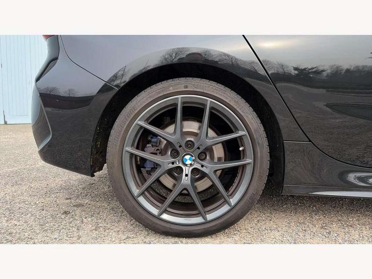 Active guard plus, Attentiveness assist, Bluetooth / WiFi interface for wireless connection of mobile terminal devices and audio streaming, BMW ConnectedDrive online services, BMW Teleservices, Check Control warning system for monitoring of lights and door/luggage compartment open warning, Eco pro mode, Front axle single joint with specific axle kinematics to minimise drive influences on steering + provide increased rigidity agile driving behaviour, Head up Display, Integrated owners handbook, Oil sensor for level and grade, On board computer, Optimum shift indicator, Park assist including reversing assistant, lateral parking aid and reversing assist camera, Personal Profile, Pull away assistant, Rigidly mounted rear subframe - Multi link construction with separate spring / damper configuration and excellent driving characteristics, Speed limit Info including no-overtaking indicator, Speed limiter, 7 speed automatic transmission with double clutch technology, Aluminium lightweight construction, Anti roll bar front and rear, Balancer shaft, Double VANOS twin scroll turbocharging system, Drive Performance Control, Electronic differential lock, High precision injection, M sport suspension, Petrol Particulate Filter, Twin tube gas filled shock absorbers with degressive characteristic curve, VALVETRONIC engine management, DAB Digital radio, Stereo speaker system with 2 mid range speakers in the front door trims and rear parcel shelf + 2 central bass speakers underneath the front seats, Auto dimming rear view mirror, Automatic headlight beam throw control, Automatic windscreen wipers and automatic headlight, BMW adaptive LED headlights, BMW individual high gloss shadow line with extended content, Body colour door handles, Body colour mirror caps, Body colour roof trims, Chrome 'M' logo side designation, Chrome exhaust twin tailpipes round 90mm in left, Chrome kidney grille frame with Satin Aluminium struts, Direction indicator side lights in exterior mirrors, Fading support, Folding side mirrors with auto dimming/folding wing mirrors with auto dimming, Follow me home headlights, Front and rear bumper system with replaceable deformation elements, Front and rear electric windows with open and close fingertip control, anti trap facility and comfort closing, Front door sill finishers in black plastic with M designation in metallic look, Green tinted heat protection glazing, Heated, electrically adjustable exterior mirror aspheric on driver side, convex on passenger side, High beam assistant, High gloss shadowline window frame, Recess cover mirror frames and B/C pillar embelisher trim, High level third brake light, Integrated front windscreen with washer jets, LED daytime running lights, LED eyebrow turn indicators, LED front fog lights, Lightweight engineering, M Sport spoiler, Matt black air guide grilles, Matt black wheel arch trim, Model designation on electric bootlid, Nearside reverse light in rear light cluster, Preparation for high beam assistant, Rear fog lights, Rear side wing doors, Rear window wiper, Shark fin antenna, Sun protection glass, Trailer stabilisation logic, Visible VIN plate, Welcome lighting, 12V power socket in front centre console with blanking plug, 3 rear seat head restraints, 3 seat bench in 2nd row, 3 spoke sports leather steering wheel with black leather and stitching, pearl chrome decorative finish, specific M Badge, Ambient interior lighting, Anthracite headlining, Child seat ISOFIX attachment for two outer rear seats and front passenger seat with anchorage points, Conditioned based service, Driver and front passenger seat heating, Floor mats in anthracite velour with contrasting colour seam to match contrast stitching on instrument panel, Folding rear clothes hook, Four grab handles integrated in roof lining, Front and rear door pockets with bottle holders, Front and rear side armrest integrated into door trim, Front armrest, Front sports seats, Glove compartment, Height adjustable front head restraints, Luggage compartment for bag hooks on left and right, foldable luggage compartment liner and two lashing eyelets, Manual adjust steering wheel, Multi-function controls for steering wheel, Single front passenger seat, Storage compartment in centre console, Sun visors with vanity mirrors and insert tab, Two front centre console cupholders, Two zone automatic air conditioning, Additional interior lighting pack - 1 Series, Additional storage compartment pack with code 493 -1 series, BMW live cockpit professional pack- 1 Series, Connected pack professional - 1 Series, Interior lights pack - 1 Series, M Sport exterior styling aerodynamics pack - 1 Series, 2 tone horn, 3 point seatbelts on all seats, front pyrotechnic belt tensioners, stopper and belt force limiters, rear coded belt buckles, Airbags - Front driver/passenger, front and rear curtain head protection, front side, manual deactivation of front passenger airbag, Anti lock braking system (ABS) with brake assist, BMW emergency call, Brake drying, Braking readiness, Child proof locking system in rear door, Comfort modes, Cornering brake control, Crash sensor activating central locking release, hazard warning lights, fuel cut off, interior lighting + activation of safety battery terminal clamp, Driver and front passenger seat belt security check, Dynamic stability control + (DSC+), Dynamic Traction Control - DTC, Electrically operated hand brake including automatic hold function, Front and rear disc brakes, M Sport brakes with blue calipers, M Sport seatbelts, Seatbelt warning, Side impact protection, Tyre pressure monitoring system, Warning triangle and first aid kit, Central locking switch for all doors, fuel filler cap and luggage compartment, Deadlocking function system to all doors, Drive away locking system on all doors and luggage compartment with de-activated in iDrive settings, Locking wheel bolts, Remote control with integrated key with High-gloss Black inlay and M designation and 1 button for open/ close 