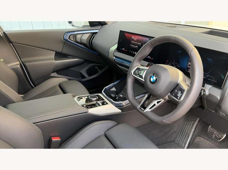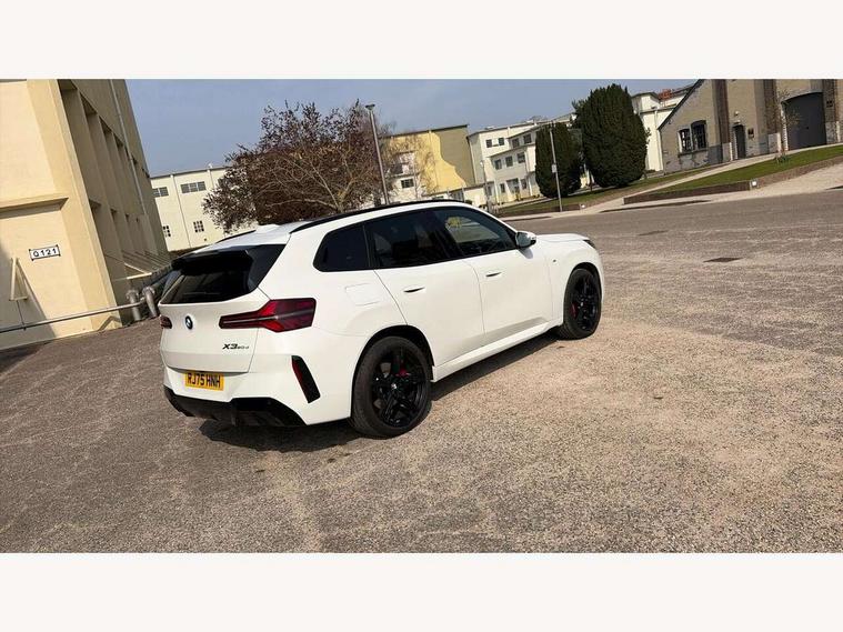 Active guard professional, Attentiveness assist, Automatic operation of tailgate, BMW ConnectedDrive online services, BMW iDrive, BMW Live cockpit plus, BMW Online services, BMW Teleservices, Brake pad wear indicator, Condition based service, Drive off assistant, Flat tyre monitor, Language version English, My Mode - Personal, Efficient, Sport, Relax, Expressive, Parking assistant, Reversing assist camera, Servotronic system, Variable sport steering, Dynamic stability control, Multiple control arm rear axle, Steptronic transmission with gearshift paddles, Two-joint strut-type front axle with tension strut, DAB tuner, Personal eSim, 4 tailpipe tips, B-pillar trim panel in black high-gloss, BMW badge on front and rear, BMW M-specific front/rear bumpers and side sills, BMW M-specific radiator grille with horizontal bars in Dark Silver and M logo, Body colour mirror caps, Daytime running lights, Door handles flush to the surface with lock barrel on driver's side is illuminated and in vehicle colour, Dynamic brake lights, Electric adjustable and heated door mirrors, Electric window trap release and convenient opening/closing feature, Headlight beam throw control, Heated rear window, Heated windscreen washer jets, High beam assistant, LED 3rd brake light, LED rear lights, LED tail lights, LED turning indicators, Locking of the doors, M high-gloss shadowline, M-specific Exterior mirrors, Mirror base and mirror blade in satinised aluminium, Mirror triangle in black high-gloss, Rain sensor with automatic headlight activation, Rear side wing doors, Rear wiper, Reversing light, Side window frame in black high-gloss, Windscreen wipers, 12v power socket in front centre console and luggage compartment, 2 x USB Type C ports for charging and data transmission (front centre console) and 2 x USB Type C ports for charging (rear centre console), 3 rear headrests, 3 seat bench in 2nd row, 3 zone automatic air conditioning, 40:20:40 split folding rear seat with loading system, Ambient lighting, Anthracite headlining, Electric adjustable seats with memory function, Floor mats in velour, Footrest and pedals in black plastic, Four grab handles integrated in roof lining, Front armrest with integrated control panel, Front centre console trim in black high-gloss, Front head restraints, Front passenger seat, Front sports seats, Glove compartment, i-Size / ISOFIX attachment points on both outer rear seats, with covers in black, Interior door handles in dark chrome, Luggage compartment separating net, M sport leather steering wheel, Multifunction steering wheel, Rear side armrests integrated into door trim, Selector lever with toggle operation, Steering column adjustment, Sun visors with illuminated vanity mirrors, Three upper retaining strap clips integrated into the rear panels of the seat backrests, Through loading system, Two front cupholders and two in the rear center armrest, Wireless charging tray, Connected pro package - X3, Driving assistant package - X3, Driving assistant plus pack - X3, Interior and exterior mirror package - X3, 3 point seatbelts, Airbag deployment is controlled with respect to the intensity and scope, Anti-lock braking system (ABS), Automatic hold function, BMW emergency call, Brake assist, Brake drying, Brake energy regeneration, Braking readiness, Central airbag, Child locks on rear doors, Cornering brake control (CBC), Crash Sensor - activation of central locking release, hazard warning light and interior lighting, Driver and front passenger front and side airbags, Dynamic brake control, Electromechanical parking brake, Front and rear disc brakes, Head airbags, Integrated braking system, Post Crash Collision Warning with braking function, Trailer stability control, Tyre pressure sensor, Warning triangle, Alarm system, Closing system with central locking, Comfort access system with BMW digital key plus, Locking wheel bolts, Start/stop button with keyless motor start with acoustic drive, Tyre repair kit plus,