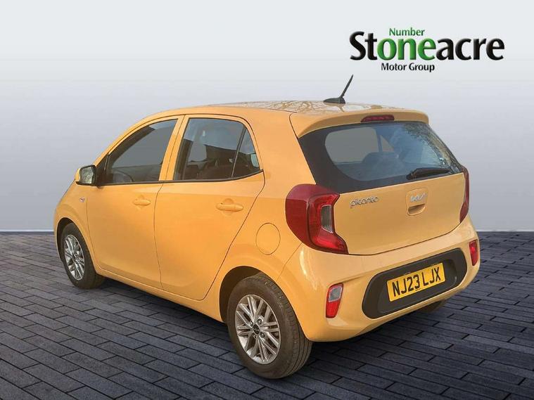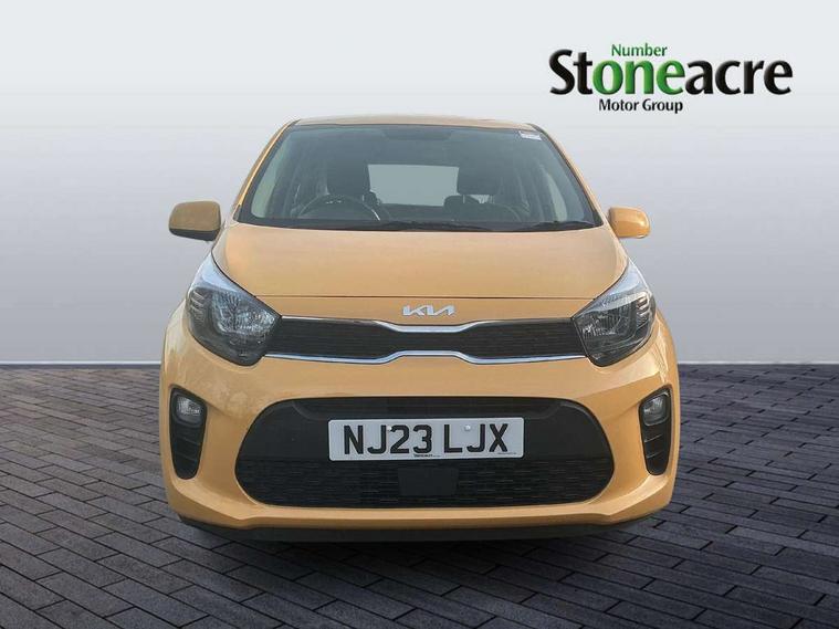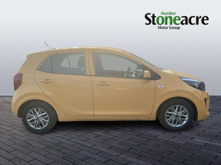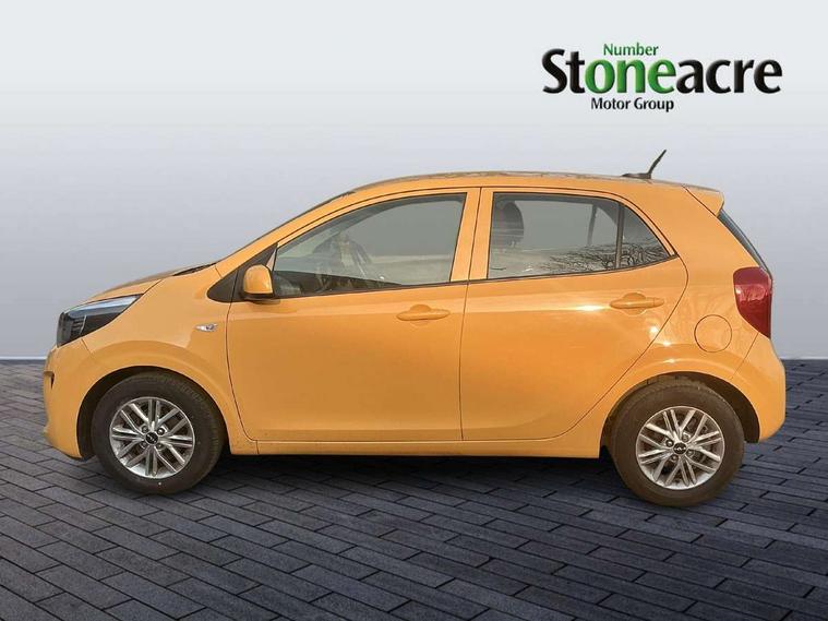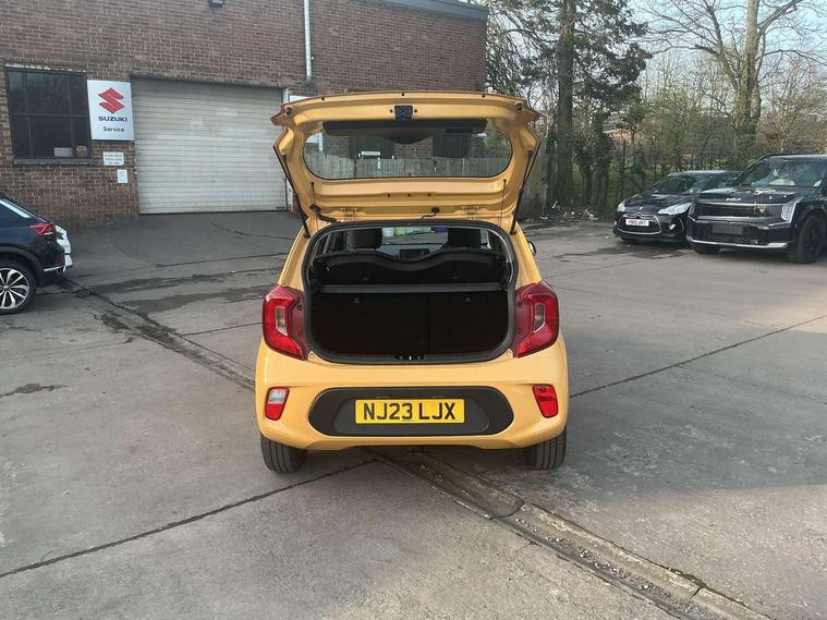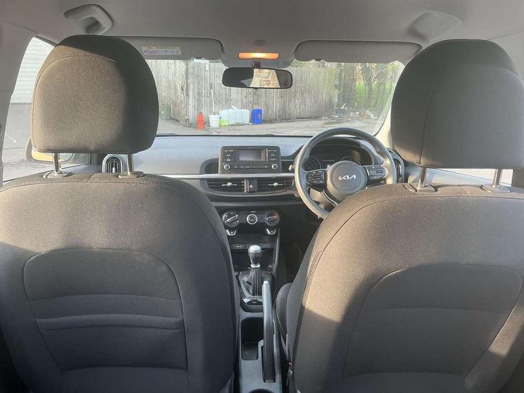 3.8" monochrome audio display with RDS and DAB, Emergency call service, Emergency stop signalling system, External temperature gauge, Motor driven power steering, Tachometer, Tailgate, Trip computer, 4 speaker audio system, Bluetooth with music streaming, Steering wheel mounted controls, USB ports for connection of a media device, Automatic headlight control system, Black radiator grille with chrome surround, Body colour bumpers, Body colour mirrors and door handles, Day/night rear view mirror, Daytime running lights, Electric adjustable heated door mirrors, Front and rear electric windows with drivers's auto up/down function, Headlamp levelling, Heated rear window, High mount brake light, MFR - Multi Focus Reflector halogen headlights with black bezel, Rain sensor, Rear fog lights, Rear side wing doors, Rear wash/wipe, Speed variable front wipers, Tinted glass, Visible VIN plate, Welcome and follow-me home light functionality, 1 x rear coat hook, 12V power point front, 2 seat bench in 2nd row, 3 x passenger assist grips, 60/40 split/folding 2nd row of seats, All round height adjustable headrests, Cupholders in centre console, Driver and front passenger sunvisor with vanity mirror, Driver seat height adjust, Front cabin lights, Glovebox, High gloss lower centre fascia trim, door armrest and air vents, ISOFIX Child seat top tethers and anchor fixings, Leather trimmed steering wheel and gearshift, Luggage area light, Luggage area parcel shelf, Manual air conditioning, Passenger front seatback pockets, Premium cloth upholstery, Silver paint finished interior door handles, Single front passenger seat, Slide/reclining front seats, Tilt adjustable steering wheel, Advanced Driver Assistance Pack - Picanto, 2 x 3-point rear seatbelts, ABS/EBD, Automatic unlocking of doors in case of impact, Dual front airbags, ESC + BAS + VSM + HAC, Front passenger airbag cut-off switch, Front seatbelt height adjusters, Front seatbelt pretensioners + load limiters, Hill hold control, Knee airbags, Rear child proof door locks, Seatbelt warning, Side impact protection, Torque vectoring brake based and straight line stability (SLS), Traction control, Twin curtain airbags, Twin front side airbags, Tyre pressure monitoring system, Anti theft alarm, Engine immobiliser, Folding key, Locking wheel nuts, Remote central door locking, 14" alloy wheels, Tyre mobility kit,