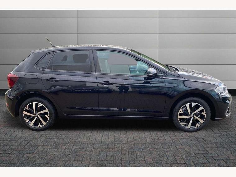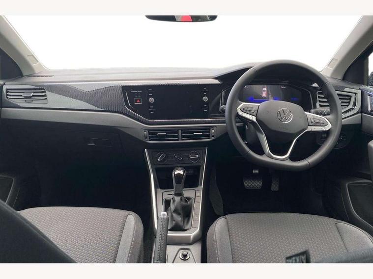 Advanced driver attention and drowsiness monitor, Bluetooth mobile phone interface, Dynamic road sign display, Emergency call service, Mobile phone preparation with inductive charging function, Multifunction front facing camera for distance control, Power assisted speed sensitive steering, Predictive adaptive cruise control without follow-to-stop and speed limiter, Preparation for navigation system with media and internet package, Preparation for We connect and We connect plus, Rear view camera, Speedo and rev counter, electronic odometer, trip, service interval display and exterior temperature gauge, Standard rear axle, Travel Assist - Lane keeping system and traffic jam assist, Travel assist including emergency assist, Trip computer, Warning signal and warning light for front and rear seatbelts not fastened, Washer fluid level indicator, Wireless app connect, Front wheel drive, Rear shock absorpion, Start-stop system with battery regeneration (recuperation - energy recovery during braking), DAB Digital radio, Diversity antenna for FM reception, Automatic dimming interior rear view mirror, Automatic headlight control with LED separate daytime running lights with coming/leaving home function, Body colour bumpers with chrome inserts, Body colour door handles, Body colour door mirrors, Electric front windows, Engine badge deletion, Headlight range adjustment, Heat insulating and laminated safety glass windshield, LED Headlights, LED rear combination lamps, Power folding adjustable/heated exterior mirrors and front passenger exterior mirror lowering function, Rain sensor, Rear electric windows, Rear fog light, Rear side wing doors, Rear tinted glass from B-pillar backwards approx 65% tinted, Rear windscreen washer and wiper with interval delay, Third brake light, 12V power socket in centre console, 2 front and 2 rear reading lights with switch off delay and dimmer, 2 USB-C ports in the front, 2 USB-C charging sockets on the center console in the rear, 3 rear head restraints, 60/40 split folding rear seat and rear seat bench not split, Ceramique roof lining, Chrome plated radiator grille inserts, air vent surrounds and light switch surrounds, Door and side trim panel, Driver and front passenger seat height adjustment, Driver/passenger sunvisors with illuminated vanity mirrors, Front centre armrest, Front seat backrest storage pockets, Front standard seats, Handbrake lever handle in leather, Hartley/Thomas cloth upholstery, Headliner in recycled material, Isofix child seat preparation easy-fit (for two outer rear seats, and front passenger seat) compatible with I-size, Leather trimmed gear knob, Luggage compartment cover, Luggage compartment lighting, Removable luggage compartment floor, Single front passenger seat, Standard climatic zones, Standard pedal cluster, Three spoke leather wrapped multifunction steering wheel with shifting paddles, Light and vision pack - Polo, 3 point height adj front seatbelts + pretensioners, 3 point seat belt for centre rear seat, 3 point seatbelts, outer rear with ECE lable, ABS, Driver and front passenger airbag with front passenger airbag deactivation, Drivers and front passengers safety optimised head restraints, ESC (Electronic stability control) + EDL (Electronic Differntial lock) and ASR (Traction control), Extended and predictive pedestrian/ cyclist protection, Front assist with autonomous emergency braking (for Adaptive Cruise Control ACC up to 130 mph), Front curtain and side airbags with center airbag, Front disc brakes, Hill hold control, Manual child lock in rear doors, Rear drum brakes, Single tone horn, Tyre pressure loss indicator, Alarm with interior protection, Anti-theft alarm system with interior monitoring, backup horn, and towing protection, Anti-theft wheel bolts, Electronic engine immobiliser, Lava stone black gloss/matt decorative inserts in dash and front door panels, 16" Torsby alloy wheels, Low rolling resistance tyres,