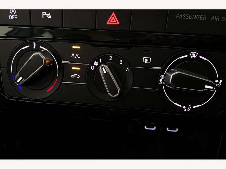 'Lights On' Reminder warning buzzer, Adaptive cruise control including front assist, forward collision warning, autonomous emergency braking, speed limiter, Blind spot monitoring, Bluetooth telephone and audio connection for compatible devices, Car information display, Digital cockpit, Driver alert system, eCall emergency call system, Lane assist, Low washer fluid warning light, Multifunction computer with visual gear change recommendation for fuel consumption, Operating permit alteration, Power assisted speed sensitive steering, Speedo, rev counter, electronic odometer, trip, service interval display, exterior temperature and fuel gauge, Stop/start system, Warning sound and light for doors and tailgate open, Warning sound and light for front seatbelts unfastened, We Connect Go Dongle, Wireless Car net app connect with Apple CarPlay, combined functionality of Apple CarPlay/Android Auto and MirrorLink, Battery regeneration during braking, Misfuel prevention device, 2x USB connection with USB charging sockets and in rear centre console, DAB Digital radio receiver, Diversity antenna for FM reception, Multi device interface (MDI) with USB connection, Music playback - MP3, WMA and AAC files, Premium USB cable for Apple or Android smartphone compatibility, Simultaneous pairing of 2 compatible mobile devices, Title and cover art display, Automatic hazard lights activation under emergency braking, Black door mirrors, Black roof rails, Body colour door handles, Body coloured bumpers, Dusk sensor + automatic driving lights, Electrically foldable, adjustable and heated door mirrors with reverse activated kerb view adjustment on passenger's side, Front and rear electric windows, Front fog lights with static cornering function, Galvanised body, Heated rear window, LED third brake light, Lower door sills and door pillars in black, Radiator grille with high gloss surface and chrome strip, Rear fog light on one side, reversing light on both sides, Rear lights incorporating LED technology, Rear side wing doors, Rear tinted glass 65% approx light absorbing from B pillar backwards, Rear window aerial, Rear windscreen washer and wiper with interval delay, Reflectors in all doors, Tailgate with integrated roof spoiler, Windscreen wipers/ intermittent wipe + 4 position delay, 12V Accessory socket in centre console, 3 rear head restraints and 3 rear three point seat belts with ECE label, 3 seat bench in 2nd row, 60/40 split folding rear seat backrest, Comfort front sport seats, Diag cloth upholstery, Drawer under drivers seat, Driver and front passenger sunvisor with vanity mirror, Driver's sunvisor with ticket holder, Dust and pollen filter, Front + rear carpet mats, Front and rear reading lights X 2, Front centre armrest with storage compartment, Front seat back storage pockets, Front seats with adjustable lumbar support, Glovebox, Heating and fresh air system with 4 stage blower, Height/reach adjust steering wheel, Instrument lighting white adjustable panel illumination, Interior light with delay, Isofix child seat preparation for 2 rear child seats, Luggage compartment cover, Luggage compartment lighting, Manual air conditioning, Moveable and foldable Rear bench seat, Storage compartment in drivers and front passengers door, Three spoke multi-function leather trimmed steering wheel and gearknob, Variable boot floor, Anti-lock Braking System (ABS) with Hydraulic Brake Assist (HBA), Automatic post collision braking system, Driver and front passenger safety-optimised head restraints, Drivers and Front Passengers airbags with front passengers airbag deactivation switch, ESC with EDL, ASR, EDTC and trailer stabilisation function, Front and rear curtain airbags, Front seat side impact airbags, Height-adjustable front three-point seat belts with tensioners, Hill start assist, Pre crash preventive occupant protection, Rear door child safety locks, Rigid safety cell with front and rear crumple zones, Single torn horn, Tyre pressure loss indicator, Volkswagen roadside assistance, Alarm with interior protection and deactivation via infotainment system, Child security locks in rear doors, Electronic engine immobiliser, Remote tailgate unlocking using key fob, Decorative inserts transition high gloss black/platnium grey, 17" Manila black diamond turned surface alloy wheels + anti theft wheel bolts, Breakdown kit,