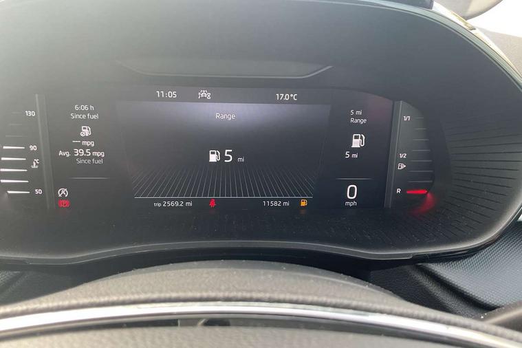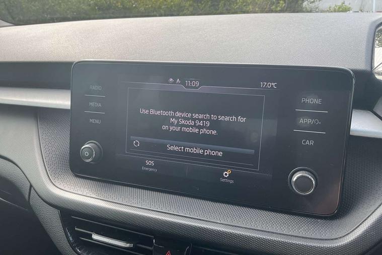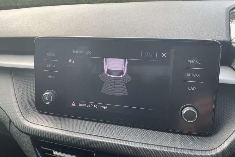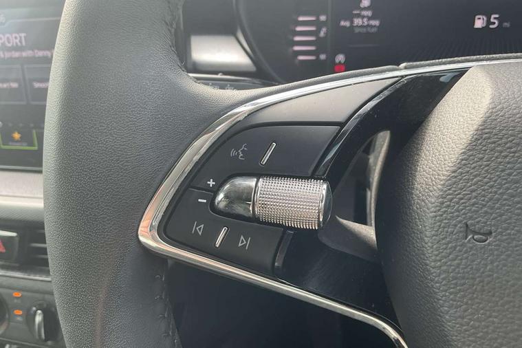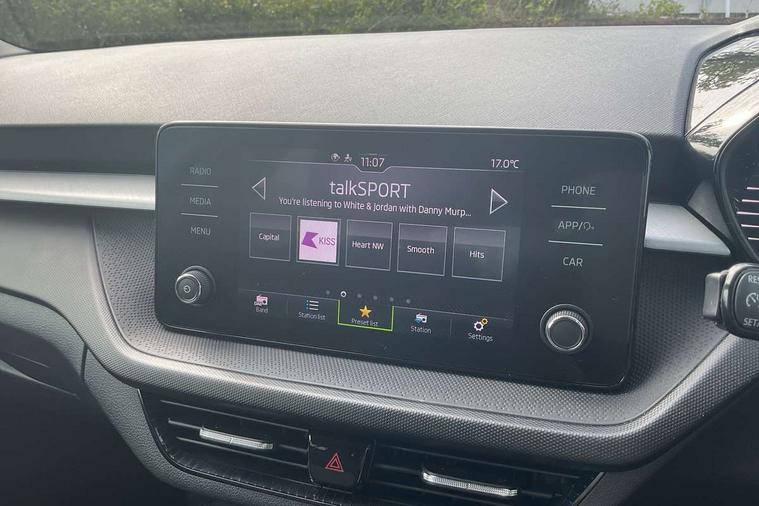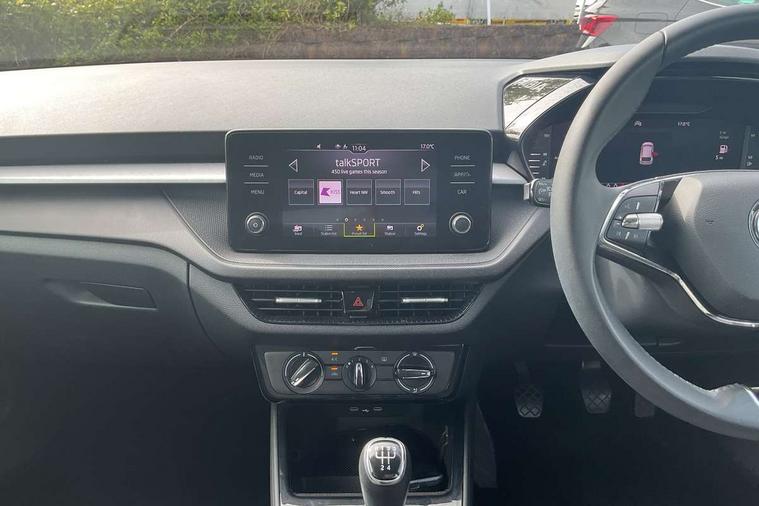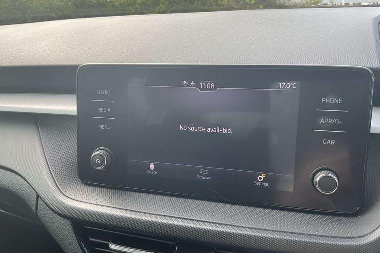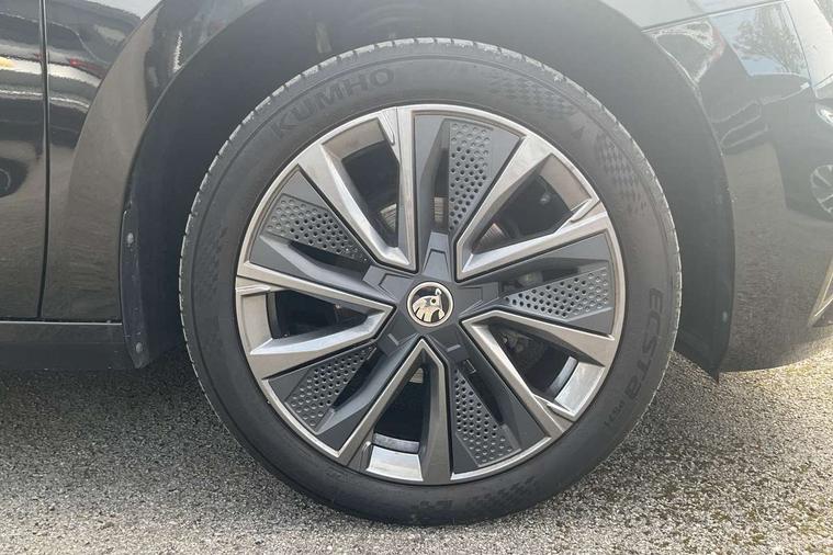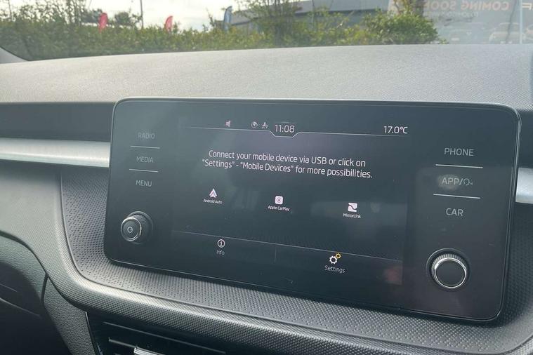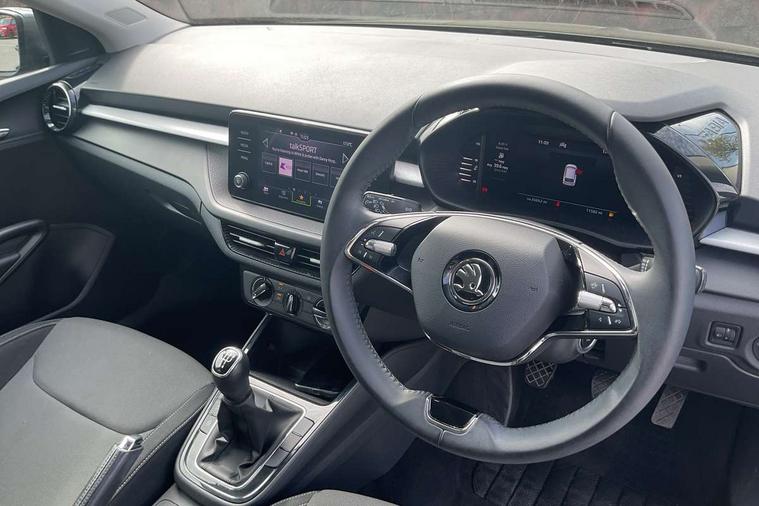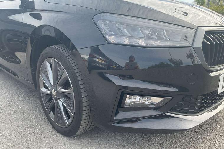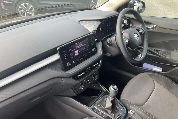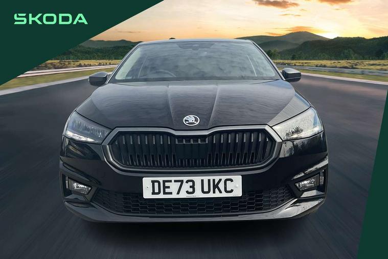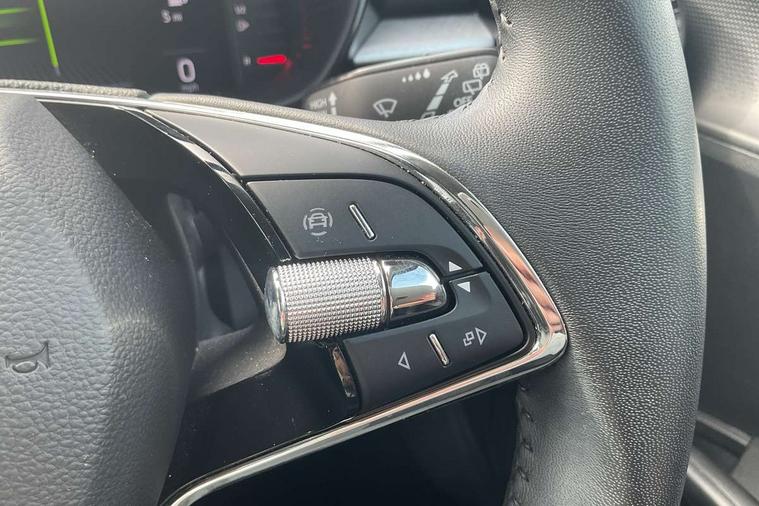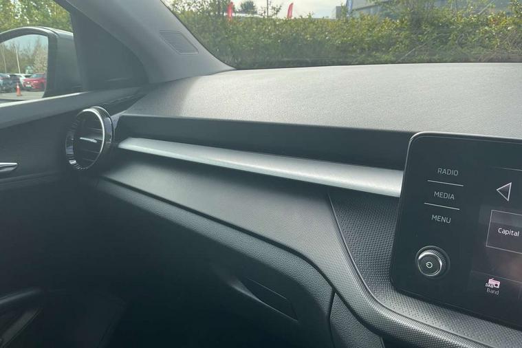 Bluetooth connection, Driver alert system - DAS, Electromechanical power steering, Exterior temperature gauge, Lane assist including road edge detection, Service interval indicator, Virtual cockpit with 10.25" colour display, 2x USB-C in the front (for data transmission and charging), 6 Speakers (4 in front and 2 in rear), Auxiliary socket for external MP3 player, Bolero radio with 8" colour display, DAB digital radio reception, Basic LED Headlights, Body coloured bumpers, Dimming rear view mirror with black frame, Door mirror integrated indicators, Electrically adjustable and heated door mirrors, Electrically adjustable front windows with function auto up/down, Front fog lights, Front window wiper intermittent control, Headlight range control - Automatic, Ice scraper in fuel cap, LED daytime running lights with coming and leaving home feature, Mechanical adjustable rear windows, Privacy glass, Rain sensor, Rear LED fog light, Rear side wing doors, Rear window wiper with washing nozzles, Roof mounted spoiler, SKODA tailgate lettering in chrome, Third brake light, 2 reading lights in front and 2 reading lights in rear, 3 rear headrests, Backrest split and folding, Central console with fixed cup holder and storage box, Chrome handbrake release button, Fabric upholstery, Gearshift knob/handle in leather, Grain satin black interior door handles, Hand brake lever handle in leather, Height adjustable drivers seat, Height adjustable front headrests, Height adjustable steering wheel, ISOFIX and TopTether anchorage points to the outer rear seats, ISOFIX and TopTether on the front passenger seat, Luggage compartment lighting, Pollen filter, Rear seat bench unsplit, Single front passenger seat, Storm grey headlining, Sun visors with mirror and airbag label on passenger side, Ticket holder, Umbrella in drivers door, 3-point height adjustable front seats belts with pretensioner and force limiter, Automatic warning lights in case of crash, Driver and passengers airbag with switch off function, e-Call+, ESC including ABS, MSR, ASR, EDS, HBA and XDS, Front and rear seat belt warning, FRONT ASSIST (AEB City and AEB Inter Urban), Front side airbags, Head airbags, One tone horn, Pedestrian protection, Three rear 3-points safety seat belts with pretensioner and force limiter including stop function for outer rear seat belts, Tyre pressure monitoring system, Anti-theft alarm system including immobiliser, interior monitoring, backup horn, and towing protection, Central locking with radio remote control, interior controls, SAFE function and 2 foldable keys, KESSY - Keyless engine start/stop, Anodized cross line upper decorative trim, Colour Edition air vents, Grain satin black central console cover, Grain satin black lower decorative trim, Satin black door and side trim panel in front, Anti-theft wheel bolts protection, Super-low rolling resistance tyres,
