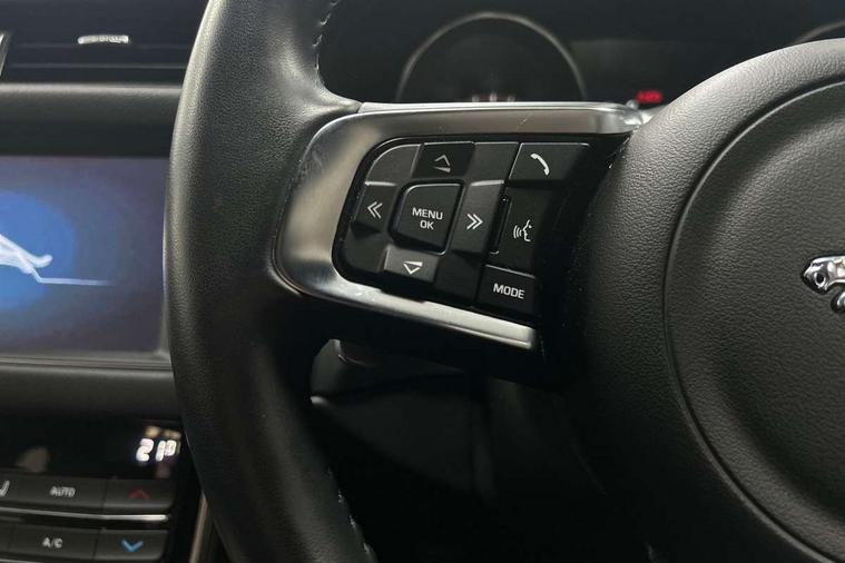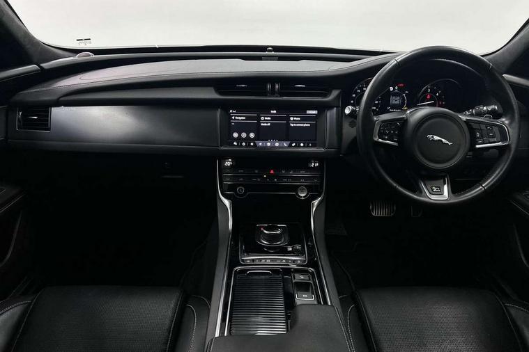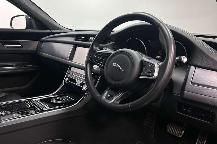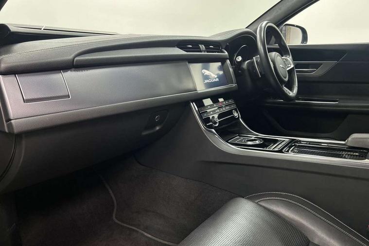 Analogue dials with 7" central TFT display, Android Auto, Apple car play, Bluetooth telephone connectivity, Electric power steering, Forward facing stereoscopic camera, InControl remote premium, Instrument cluster with 5 TFT display, Jaguar Voice front, Lane departure warning system, Outside temperature gauge, Pro services and wifi hotspot, Rear parking aid, Service interval indicator, Traffic sign recognition with adaptive speed limiter, Trip computer, 8 speed automatic transmission, Bluetooth audio streaming, DAB Radio (Digital Audio Broadcasting), InControl app, InControl protect, InControl Wi-fi, USB and auxiliary socket, Acoustic windscreen, Approach lamps, Auto dimming rear view mirror, Automatic headlights, Blue tinted glass, Body colour door mirrors, Body coloured extended side sills, Boot mounted spoiler, Electric front/rear windows with one touch/auto up/down, Frameless auto dimming interior rear view mirror, Headlight power wash, Heat insulated glass, Heated rear window, LED tail lights, R-sport body kit, R-Sport front bumper, Rain sensor windscreen wipers, Tailgate/boot lid spoiler, Trailer stability assist, 12V accessory sockets - front and rear, 2nd row air vents, 3 rear seat head restraints, Auxilliary 12V power socket, Bright metal foot pedals, Chrome seat switches, Fixed rear bench seat, Front armrest, Front centre console storage box, Isofix child seat preparation, Jaguar sense, JaguarDrive selector, Multifunction R-sport steering wheel, Overhead console with sunglasses holder, Perforated grained leather upholstery with contrast stitching, Premium carpet mats, R-Sport branded soft grain leather steering wheel, Rear armrest with twin cupholders, Rear storage compartment, Satin chrome trunk finish, Sports seats, Sunvisors with illuminated vanity mirrors, Tie down hooks in luggage area, Twin front cupholders, Smartphone pack - XF, ABS+EBA, Anti-whiplash front headrests, Autonomous emergency braking, Brake pad warning light, Driver/Front Passenger airbags, DSC - Dynamic Stability Control, Electronic parking brake, Emergency brake assist, Front and rear curtain airbags, Front/rear seatbelt pre-tensioners, Hill start assist, Pedestrian contact sensing, Power child locks, Seatbelt warning, Side airbags, Three 3 point rear seatbelts, Torque vectoring brake, Traction control, Tyre pressure monitoring system, Deadlocks, Drive away door locking, Immobiliser, Keyless start, Locking wheel nuts, Perimeter alarm, Remote central locking, Dark morse code aluminium instrument panel finisher, Luxtec wrapped instrument panel,