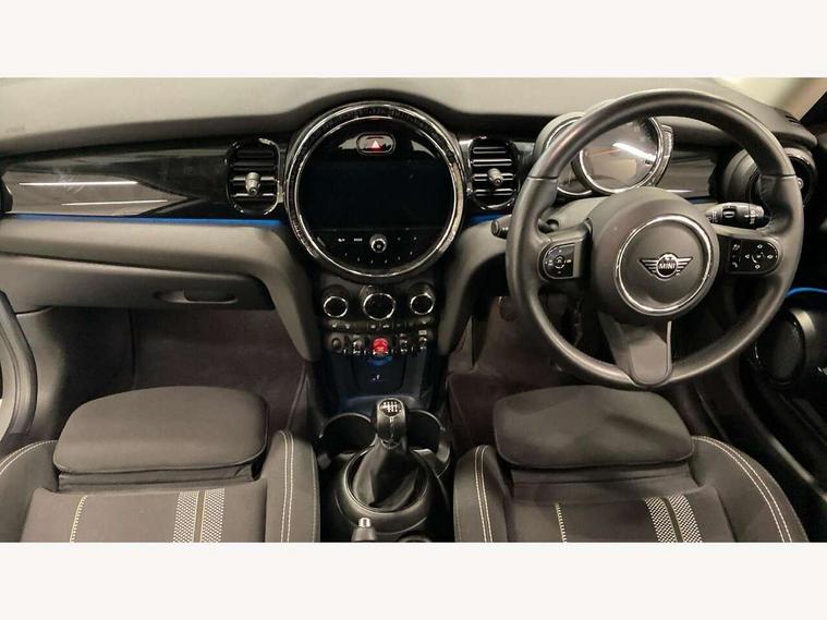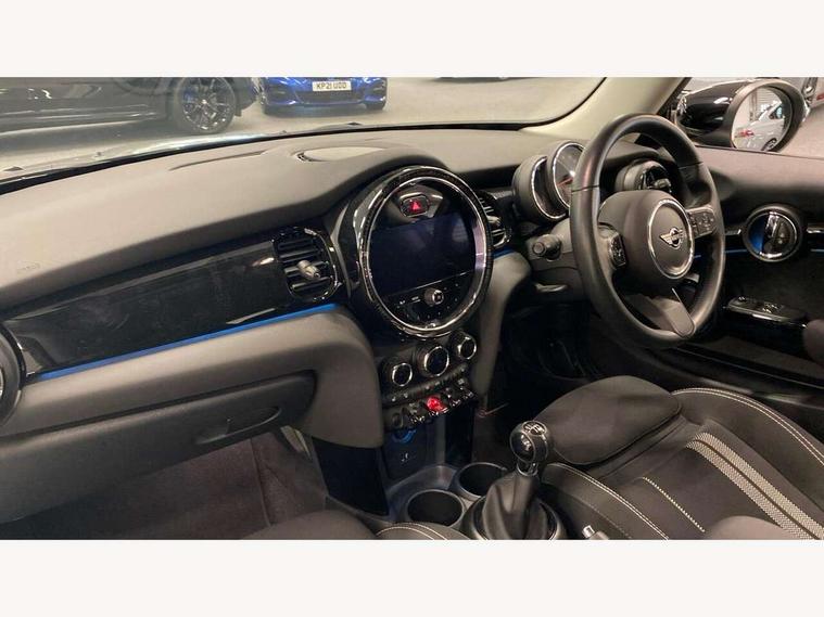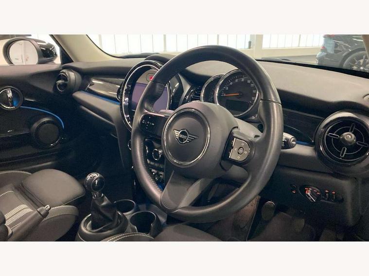 Automatic start/stop function with brake energy recuperation, Compatible mobile phone bluetooth with audio streaming, Cruise control with brake assist, Electro-mechanical speed dependant steering assistance, Flexible car sharing preparation, Instrument cluster, MINI Driving Modes - centre toggle switch to control driving setting (sport, mid and green), Mini E-call, MINI TeleServices, On board computer, Service interval indicator, 6 Speed manual transmission including gear change indicator display, Double Vanos system, Fully variable valve control, High precision injection, Performance Control, 4 speakers in front door trims and underneath front seats, 8.8" touchscreen with LED ring, FM tuner and DAB digital radio, Automatic headlight activation switch, Bonnet scoop, Chrome fuel filler cap, Dynamic brake lights, Electric front windows, Heated rear window, Heated windscreen washer jets, LED headlight with closed ring and daytime driving lights, Metal door sill strips with Cooper S, Model logo Cooper S on right of tailgate, Radiator grille chrome border with honeycomb structure including S Badge, Rain sensor window wipers, Rear fog lights, Rear LED lights with union jack design, Rear window wiper, Side scuttle panel with integrated indicator, Sun/heat protection glass, Two central exhaust tailpipes with chrome finisher, White indicator lenses, 12V Accessory socket in centre console, 4 lashing eyes in luggage compartment, 60/40 split folding rear seat, Carbon black colour line - Knee roll and door armrest, Chrome interior highlights, Cupholders, Front and rear head restraints, Front and rear isofix with front passenger airbag deactivation, Glove compartment, Height and length steering column adjustment, Interior lighting with 12 different colours across the dashboard, underneath door bezel with illuminated laser-engraved design on central display, Leatherette gearshift lever and handbrake gaiters, LED reading lights, vanity mirror lights, front foot well light and spotlight on front seats, Manual air conditioning, Mechanical seat adjustment - forward/back & backrest for front seats and driver seat height adjust, Multifunction steering wheel, Passenger seat height adjuster, Satellite grey headlining including grab handles and clothes hooks, Sport leather steering wheel with speed limiter and audio/communication controls, Storage compartments in doors, Storage pocket on back of front seats, Sunvisors with vanity mirrors, Velour floor mats, 3 point seatbelts on all four seats, 6 Airbags - front, side, head and seat belt tensioners, Anti-lock braking system (ABS), DSC - Dynamic Stability Control, Front and rear disc brakes, Two tone horn, Tyre pressure monitoring system, Alarm system with tilt sensor, monitoring doors, bonnet interior and tailgate, Electronic vehicle immobiliser, Start/stop toggle with keyless go, Piano black interior trim, Tool kit, Tyre repair kit,