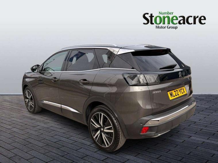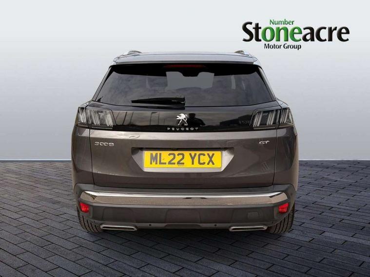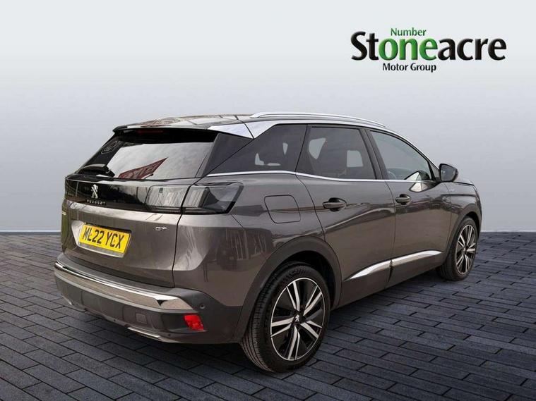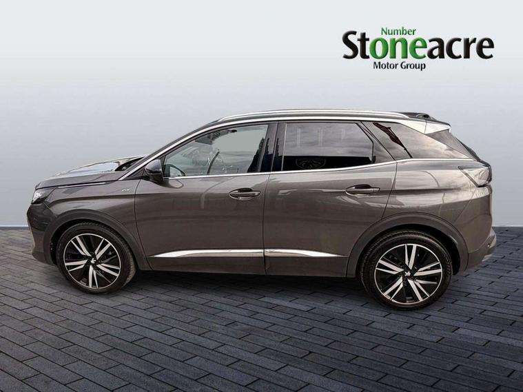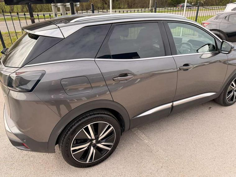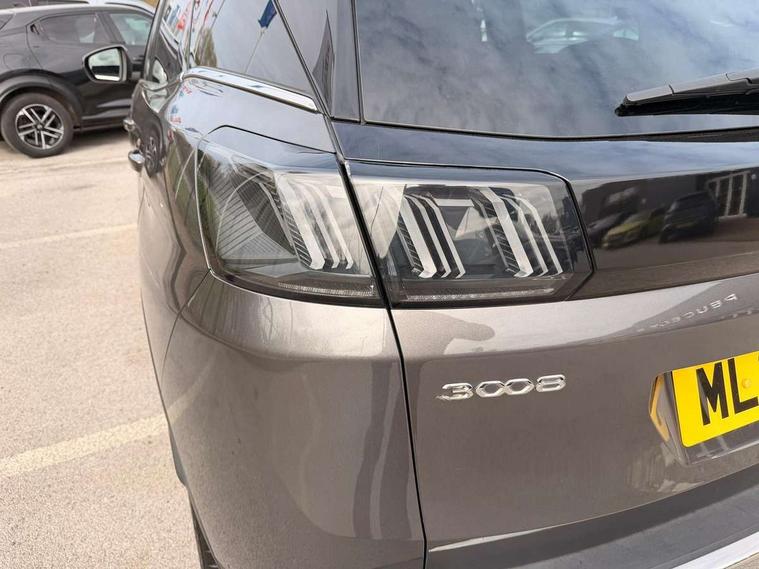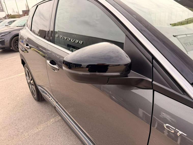 3D connected navigation with 10" HD touchscreen, Bluetooth telephone facility, Drive modes select (Eco, normal and sport), Driving Time Warning (DAA1), Emergency services call system, Extended traffic sign recognition, Exterior temperature indicator with ice warning, Front parking sensors, Hands free electric tailgate, Mirror screen with mirror link, apple carplay and android auto, Multi function trip computer, Peugeot connect SOS and assistance, PEUGEOT i-Cockpit with 10" high definition capacitive touchscreen, Peugeot i-cockpit with compact multi-function sports steering wheel, PEUGEOT i-Cockpit with configurable 12.3" Head-up digital instrument panel, Rear parking aid, Rear passenger USB charging sockets (x2) (type A), Speed limit recognition and recommendation, Visio park assist 360 with colour camera system + automatic parking assist, Voice recognition, Dynamic stability control and electronic anti-skid system, Stop/start function, DAB Digital radio, Focal premium HiFi sound system, USB socket, Auto self levelling headlights, Automatic triggered rear windscreen wiper in reverse gear, Black with chrome detailed front wing trim, Body colour door handles, Body colour rear roof spoiler with stainless steel edging trim, Body protectors (bottom of front and rear bumpers + wheel arches + protection at bottom of doors) in black, Dark tinted rear side windows + tailgate window, Diamond Black door mirror shells, Door mirror mounted LED courtesy floor lighting, Electric folding door mirrors with exterior courtesy LED lighting, Electric operated/heated door mirrors, Fog Mode, Front windscreen wiper with magic wash cleaning system, Full LED headlights with LED fog lights with static cornering function, Gloss black B and C pillar and aerodynamic deflector trim, Gloss black front bumper air scoops, Gloss black rear cluster connecting strip, Gloss black windscreen trim, GT emblem in satin copper (front wings and tailgate), Headlights left on audible warning, Heated rear windscreen with integrated antenna, LED daytime running lights, LED front indicator, LED rear number plate lighting, LED side indicator lights integrated into door mirrors, LED third brake light, One touch electric front/rear windows with pinch protection, Rear LED Peugeot signature 'Claw Effect' lights, Rear side wing doors, Stainless steel roof arches, Twin exhaust tailpipe, 1/3 to 2/3 split folding rear seats, 12V Sockets in dashboard, rear cabin and load area, 2 cupholders in front centre console, 2 cupholders in rear armrest, 2 x Rear reading spotlights, 2x Rear coat hooks, 3x Isofix child seat fittings in the front passenger and outer rear seats, 4 Grab handles retractable and damped, Aikinite stitching in armrest, gear lever and dashboard facia, Aluminium pedals, Blue ambient lighting for connecting zone, Blue ambient lighting to front door panels, central storage and cupholders, Blue ambient lighting to headup instrument panel, Centre front armrest with butterfly wing opening and illuminated storage compartment, Dual zone automatic climate control, Electric power steering with reach and rake adjustable steering column, Flocked front door pocket interior with blue ambient lighting, Flocked glovebox interior, Focal tweeter speaker grilles in Belem bronze metal effect finish, Foldable front passenger seat with picnic table, Footwell illumination, Front interior light with 2 reading spotlights and rear interior light with timer, Front passenger seat manual adjustment (longitudinal and back rest angle), Front seat back map pockets, Gear shift indicator, Illuminated glovebox, Individual left and right controls in boot for seat folding, LED interior lighting in storage spaces and load area, LED roof interior lighting, Mistral floor mats with Aikinite contrast stitching, Mistral full grain perforated leather steering wheel with aikinite stitch detail and satin chrome 'GT' emblem, Rear bench seat with central armrest and ski hatch, Rear centre console ventilation system, Roof lining - Mistral black, Satin chrome dashboard trim, Satin chrome digital instrument panel and touchscreen trim, Satin chrome front door panel recess trim, Satin chrome interior door handles, Satin chrome scorpion's tail and toggle switch trim, Seatbelt not fastened audible and visual alert for front seats, Seatbelt unfastened on the move audible and visual alert for front and rear seats, Sunvisors with illuminated vanity mirrors, Two position boot floor, Drive assist plus pack - 3008, Driver sport pack - 3008 Auto, Safety plus pack with high beam assist - 3008, Visibility pack - 3008, 3x Rear three-point retractable seatbelts with force limiters in the outer rear seats, ABS (Anti-lock Braking System) with EBD (Electronic Braking Distribution) and EBA (Emergency Braking Assistance), Adaptive driver and front passenger airbags with passenger airbag deactivation function, Driver and front passenger side airbags, Electric child locking functionality on rear windows and doors, Electric parking brake, Front and rear curtain airbags, Front optimised safety headrests and 3 x rear retractable headrests with height adjustable, Front three point retractable seatbelts with pre tensioners and force limiters, Front ventilated disc brakes and rear disc brakes, Hill start assist, Two tone horn, Automatic door locking when moving off, Automatic hazard light activation upon heavy brake application, Electronic immobiliser, key operated exterior door lock from the left hand door, Perimetric and volumetric alarm with lift and tilt sensor, Peugeot Open and Go System, Remote control central locking with two plip keys, Puncture repair kit including compressor, sealant cartridge and towing eye,