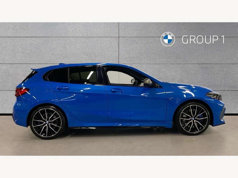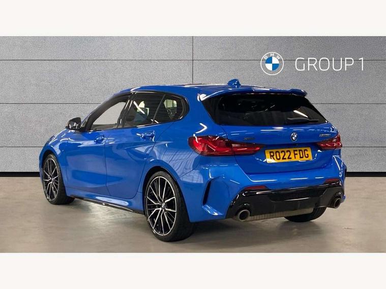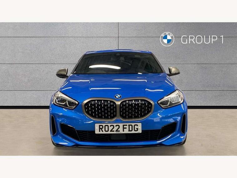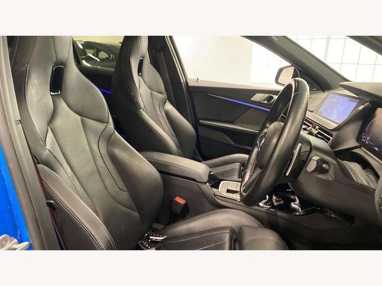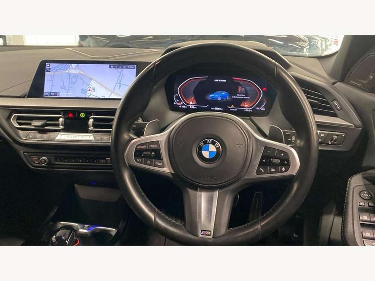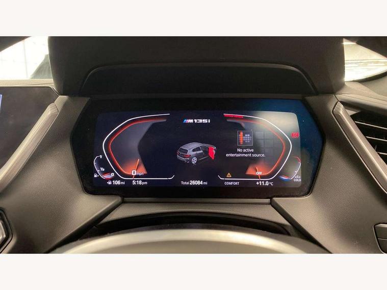 Active guard plus, Attentiveness assist, Bluetooth / WiFi interface for wireless connection of mobile terminal devices and audio streaming, BMW ConnectedDrive online services, BMW Teleservices, Check Control warning system for monitoring of lights and door/luggage compartment open warning, Cruise control with brake assist, Eco pro mode, Electric power steering, Electro hydraulically controlled multi-plate clutch transfers drive to rear axle and with power take-off device located on the front differential., Energy efficient operating strategy, Front axle single joint with specific axle kinematics to minimise drive influences on steering + provide increased rigidity agile driving behaviour, Gearshift time display in manual mode, Integrated owners handbook, Lane departure warning system, M Sports steering with M135i xDrive specific settings, Oil sensor for level and grade, On board computer, Optimum shift indicator, Personal Profile, Pull away assistant, Rigidly mounted rear subframe - Multi link construction with separate spring / damper configuration and excellent driving characteristics, Speed limit Info including no-overtaking indicator, Speed limiter, Sporty fast gear shifting in sport mode, Aluminium lightweight construction, Anti roll bar front and rear, Balancer shaft, Double VANOS, Drive Performance Control, Eight speed sport automatic transmission with gearshift paddle switches, Electronic differential lock, Electronic selector lever, Engine cover with M performance designation, High precision injection, Larger fuel tank capacity (50 litres), Launch control, M135i specific heavily de-throttled engine intake air guide, M135i specific high-performance cooling package, M135i specific larger turbocharger with integrated divert-air valve, Petrol Particulate Filter, Twin tube gas filled shock absorbers with degressive characteristic curve, VALVETRONIC engine management, Variable, stepless and infinitely adjustable distribution of drive torque between the front and rear axles, xDrive intelligent all wheel drive with M135i specific reinforced components, DAB Digital radio, Auto dimming rear view mirror, Automatic headlight beam throw control, Automatic windscreen wipers and automatic headlight, Body colour door handles, Body colour roof trims, Cerium grey exterior mirror caps, Direction indicator side lights in exterior mirrors, Exhaust tailpipe, Cerium Grey with bevelled finish - twin, round 100mm, left and right split, Fading support, Folding side mirrors with auto dimming/folding wing mirrors with auto dimming, Follow me home headlights, Front and rear bumper system with replaceable deformation elements, Front and rear electric windows with open and close fingertip control, anti trap facility and comfort closing, Front door sill finishers with M135i designation, Green tinted heat protection glazing, Heated, electrically adjustable exterior mirror aspheric on driver side, convex on passenger side, High gloss shadowline window frame, Recess cover mirror frames and B/C pillar embelisher trim, High level third brake light, Integrated front windscreen with washer jets, Kidney grille frame in Cerium Grey with Mesh design, LED daytime running lights, LED eyebrow turn indicators, LED front fog lights, Lightweight engineering, M logo designation side in cerium grey, M Performance exhaust system with valve control and minimised exhaust back pressure, M Performance specific setup, M Sport spoiler, Matt black air guide grilles, Matt black wheel arch trim, Model designation on electric bootlid includes xDrive designation for M135i xDrive, Nearside reverse light in rear light cluster, Preparation for high beam assistant, Rear fog lights, Rear side wing doors, Rear window wiper, Reinforced crank drive, new pistons and adapted con rods, Shark fin antenna, Trailer stabilisation logic, Visible VIN plate, Welcome lighting, 12V power socket in front centre console with blanking plug, 3 rear seat head restraints, 3 seat bench in 2nd row, 3 spoke sports leather steering wheel with black leather and stitching, pearl chrome decorative finish, specific M Badge, Ambient interior lighting, Anthracite headlining, Child seat ISOFIX attachment for two outer rear seats and front passenger seat with anchorage points, Conditioned based service, Driver and front passenger seat heating, Floor mats in anthracite velour with contrasting colour seam to match contrast stitching on instrument panel, Folding rear clothes hook, Four grab handles integrated in roof lining, Front and rear door pockets with bottle holders, Front and rear side armrest integrated into door trim, Front armrest, Front integrated head restraints, Front M sports seats, Glove compartment, Luggage compartment for bag hooks on left and right, foldable luggage compartment liner and two lashing eyelets, Manual adjust steering wheel, Multi-function controls for steering wheel, Single front passenger seat, Storage compartment in centre console, Sun visors with vanity mirrors and insert tab, Two front centre console cupholders, Two zone automatic air conditioning, Additional interior lighting pack - 1 Series M135i, Additional storage compartment pack with code 493 -1 series, BMW live cockpit professional pack- 1 Series, Connected pack professional - 1 Series, Interior lights pack - 1 Series, M Sport exterior styling aerodynamics pack - 1 Series 135i, 2 tone horn, 3 point seatbelts on all seats, front pyrotechnic belt tensioners, stopper and belt force limiters, rear coded belt buckles, Airbags - Front driver/passenger, front and rear curtain head protection, front side, manual deactivation of front passenger airbag, Anti lock braking system (ABS) with brake assist, BMW emergency call, Brake drying, Braking readiness, Child proof locking system in rear door, City braking function, Comfort modes, Cornering brake control, Crash sensor activating central locking release, hazard warning lights, fuel cut off, interior lighting + activation of safety battery terminal