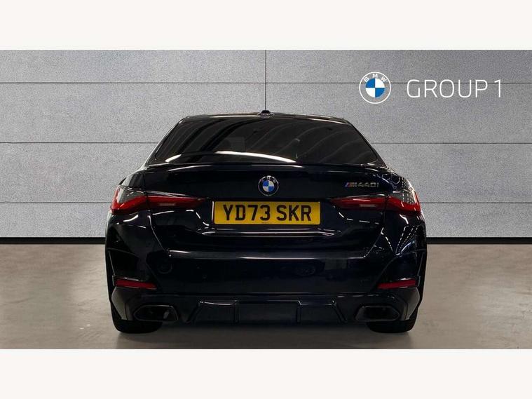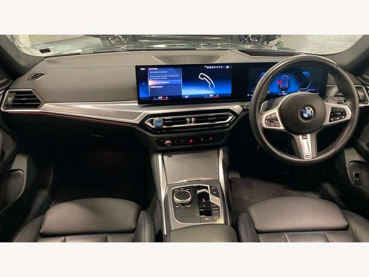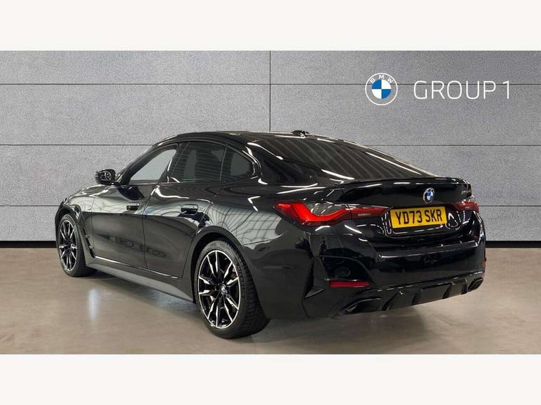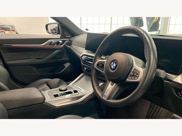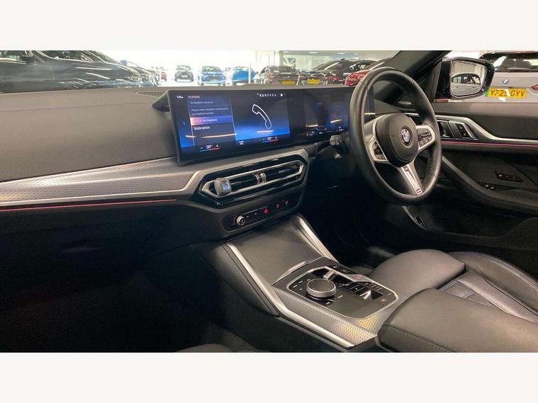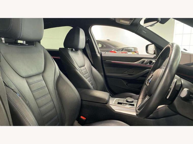Active guard plus, Auto start-stop, Bluetooth hands free facility with USB audio interface with audio streaming, BMW ConnectedDrive online services, BMW service history, BMW Teleservices, Brake pad wear indicator in front and rear, Check Control warning system for monitoring of lights and door/luggage compartment open warning, Condition based service, Electric bootlid, Electric power steering with Servotronic steering optimised at all speed ranges, Fatigue detection system, Gearshift time display in manual mode, iDrive controller on centre console, Instrument cluster with speedometer with mph readout, tachometer, fuel gauge and oil temperature gauge, Integrated owners handbook, Language version English, Oil sensor for level and grade, warning by check control system, On board computer - average speed, fuel consumption, outside temp display with acoustic warning, clock/date, service interval, odometer/trip meter, Optimum shift indicator, Shifting point display, Tailgate, Variable sport steering, 48V Mild hybrid technology, 8 speed automatic steptronic transmission with gearshift paddles, Active sound design, Adaptive M suspension, Double joint spring strut front axle, Drive performance control - ECO PRO, comfort and sport modes, Low centre of gravity, M Sport differential, Petrol Particulate Filter, Sprint mode, Stroke dependent dampers, xDrive system permanent all-wheel drive variable torque distribution, 2x USB Type C ports in front centre console for charging and data transfer, 2x USB Type C ports in rear centre console for charging, DAB tuner, Electronic service booklet, Acoustic glazing, Automatic headlight beam throw control with load dependent regulating reaction, dynamic compensation of braking dive and acceleration squat, Automatic windscreen wipers and automatic headlight, Automatically dimming electrochromatic rear view mirror, BMW emblem on engine compartment lid and tailgate, BMW Individual high gloss shadow line with extended contents, BMW individual lights shadow line, Body colour fuel filler flap, Body colour roof fin, Brushed aluminium inserts in the front door sill finishers with BMW designation, Door sill strips, Dynamic brake lights, Electric windows - front and rear, with open/close fingertip control, anti trap facility and comfort closing function all round, Exterior mirrors - electrically folding with anti-dazzle, Fading support, Follow me home headlights, Front and rear bumper system, Front apron plastic in body colour, Green tinted heat protection glazing, High gloss shadow line exterior trim, Illuminated bow type door handles in body colour drivers side with door lock, Interior rear view electrochromatic mirror with automatic anti dazzle function, LED 3rd brake light, LED daytime running lights, LED front indicators, Licence plate panel integrated into front bumper and tailgate, Lightweight engineering, M designation on front side panels, left and right, M rear boot spoiler, Model designation on right side of tailgate, One piece front bumper cover including towing eye cover in body colour, Preparation for high beam assistant, Rear side wing doors, Rear wiper, Reversing light, Side frame decorative moulding black matt, Sun protection glass, Two part LED tailights in L-shape with components in smoked glass, brake light, LED turn indicator and rear fog light, Visible exhaust tailpipe finisher, Visible VIN plate, Welcome lights in interior and door handle area, Widened track and increased camber values for max transverse dynamics, agility and steering precision, Window recess cover black high gloss, Windscreen wipers with integrated heated washing jets, xDrive designation on left tailgate, 12V power socket in front centre console, 2 front cupholder in centre console with clamping elements and matt black inlay, 3 rear headrests, 3 seat bench in 2nd row, 3 spoke M sport leather multifunction steering wheel, 3 zone automatic air conditioning, 4 pieces lashing eyelets in luggage compartment, 40:20:40 split folding rear seat and rear centre armrest with two cupholders, Anthracite headlining, Armrest integrated in front and rear door trim + front centre console armrest, Battery in luggage compartment, BMW ID, Extended storage in Combination with sport seat net pocket on rear backrest, Four grab handles integrated in roof lining, Front and rear door pockets, Front and rear footwell lights, Front and rear reading lights, Heated driver and front passenger seats, Height adjustable front headrests, Height adjustable mechanically and infinitely variable steering column, Illuminated armrest storage compartment, Illuminated glove compartment with separate small compartment, Luggage compartment lighting, Luggage compartment seprating net on side trim left/right, Bag hook, 12V socket, TTH button, USB C charging in rear, Folding compartment on driver side, Make-up mirror lights, Single front passenger seat, Storage compartment in rear centre console, Sunvisors with illuminated vanity mirrors and ticket pocket, Toolkit located in luggage compartment, Velour front floor mats, Ambient lighting pack - 4 Series, Connected professional package - 4 Series, M sport exterior styling pack - 4 Series M440i, 3 point seatbelts on all seats, Battery safety cut-off, BMW emergency call, Brake energy regeneration, Braking pre-tensioning, Child proof locking system in rear door, Child seat ISOFIX attachment for the two outer rear seats, Coasting in idle in ECO PRO mode, Cornering brake control (CBC), Crash sensor activating of airbags, Unlocking doors, hazard warning lights, fuel cut off, interior lighting+activation of safety battery terminal clamp, Driver and front passenger side airbags, integrated in the door side seat backrest bolsters for all seat variants, Driver/Front Passenger airbags, Dry braking, Dynamic brake control, Dynamic stability control + (DSC+) - Anti-lock Braking System (ABS) with brake assist and cornering brake control + Automatic Stability Control (ASC), Dynamic Traction Contro