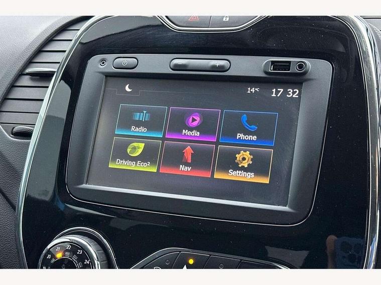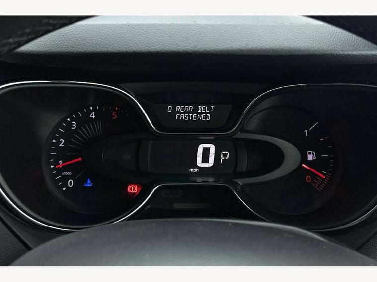 Bluetooth + USB, Cruise control + speed limiter, Rear parking sensor, Trip computer, Variable PAS, Voice control system, DAB Digital radio, Fingertip controls for audio system, Automatic headlights + automatic windscreen wipers, Body colour door handles, Body coloured bumpers, Chrome headlight surround, Chrome insert to side strips, Chrome trim on tailgate, Cornering front fog lights, Electric adjustable/heated/folding door mirrors, Electric front windows + one touch + anti-pinch, Electric rear windows, Extra tinted glass in rear windows, LED daytime running lights, Rear wiper, Variable intermittent front wash/wipe, 12V Accessory socket, 2 cupholders, 3 rear height adjustable headrests, 60/40 split rear seats, Climate control, Front seat backrest storage nets, Gloss black door armrest, Height adjustable driver's seat, Height adjustable front headrests, Height/reach adjust steering wheel, ISOFIX on front passenger and rear outer seats, Leather steering wheel and gear knob, Pollen filter, Removable storage between front and rear passenger, Reversible boot floor, Storage area on top of dashboard, Storage compartments in doors, Variable boot floor, 3 point seatbelts on all rear seats, ABS+EBA, Driver/Front Passenger airbags, ESC - Electronic Stability Control + traction control, Front passenger airbag deactivation, Front side airbags(head+thorax), Hill start assist, Rear door child safety locks, Seatbelt warning, Tyre pressure monitor, Deadlocking system, Keyless entry, RAID (Renault Anti-Intruder Device) with automatic door locking, Thatcham Cat 2 engine immobiliser,