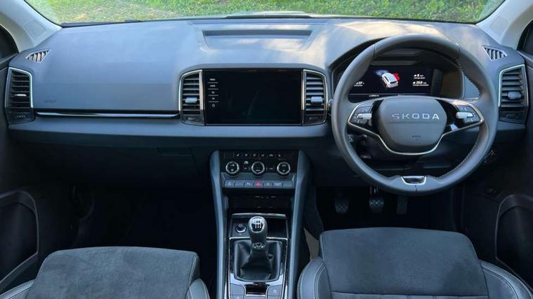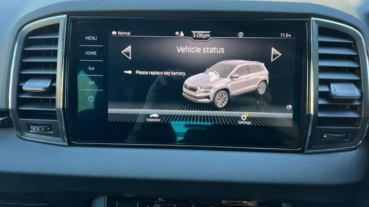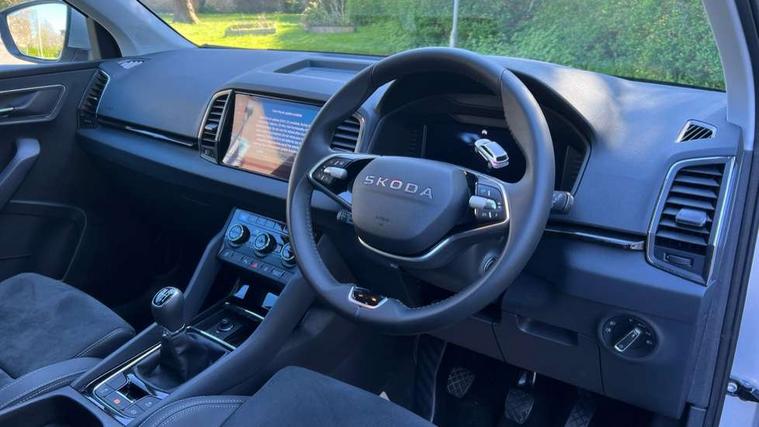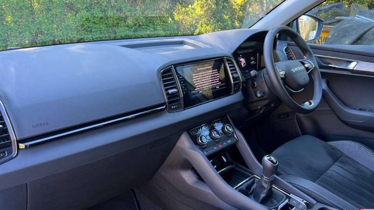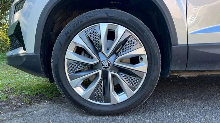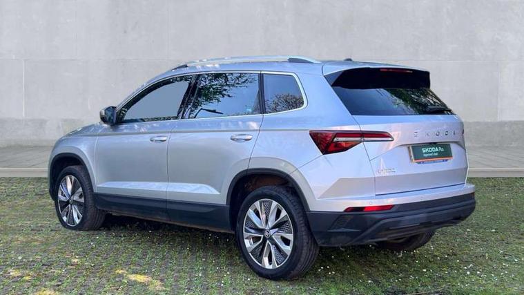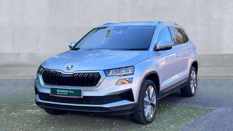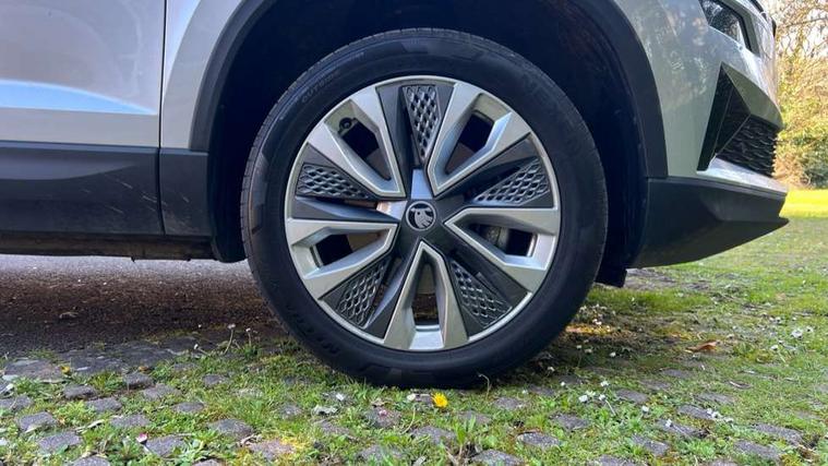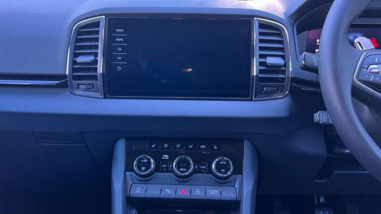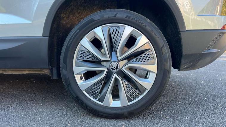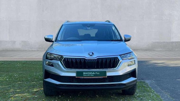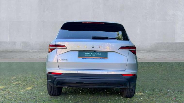 Advanced driver attention and drowsiness monitor, Drive Mode Selection including ECO function, Electro-mechanical PAS, Emergency services call system, Outside temperature gauge, Sensor for driver assistance systems, Service interval indicator, SmartLink wireless for Apple and wired for Android, Start/stop system with regenerative braking, Traffic sign recognition, USB C Port x 2 in front centre console, Virtual Cockpit - 10.25" digital display, Virtual pedal with electrically operated boot door, Wireless smartphone charging, DAB radio with Bluetooth, USB connection, Acoustic glass, Aero front windscreen wipers with intermittent function, Auto dimming rear view mirror with light and rain sensors, Black electric window control buttons, Body colour door mirrors and handles, Electric front and rear windows with child proof lock, Extended rear roof spoiler, Heated rear windscreen, LED daytime running lights, LED rear lights with high functionality welcome effect and dynamic indicators, Light assistant (coming/leaving home/tunnel light), Plastic scuff plates in door apertures, Privacy glass, Rear side wing doors, Rear window wiper with washer system and intermittent control, Safety reflectors on front doors, Third brake light, Unique dark chrome design logo on alloy wheels, 1.5 litre bottle holders in driver and front passenger door panels, 12V socket in boot, 12v socket in front centre armrest with storage compartment and rear air vents, 2 spoke leather heated multifunction steering wheel, 2 x Tablet holder, 3 rear height adjustable headrests, 3 seat bench in 2nd row, 4 foldable roof handles with rear coat hooks, Black floor carpet, Cargo elements in boot, Chrome inner door handles, Decorative door sills with KAROQ badging, Foldable hooks in the boot, Front head restraints, Height adjustable front three point seats belts with tensioners, Height/reach adjust steering wheel, Ice scraper, Illuminated glovebox, Illuminated luggage compartment, Interior noise suppression, Isofix child seat preparation for front passenger seat, Isofix child seat preparation outer rear, Manual lumbar support for front seats, Pearl grey interior ceiling, Pen holder, Pollen filter, Rear boot cover, Rear package tray, Rear reading lights, Rubbish bin door, Safety vest holder, Single front passenger seat, Skoda lettering on steering wheel, Storage box in upper central dashboard closed, Sunvisors with illuminated vanity mirrors, Textile floor mats, Ticket holder, Columbus pack - Karoq, Design Pack - Karoq, Non Smokers pack, Parking pack - Karoq, Automatic door unlocking in case of crash, Automatic fuel cut off in case of crash, Driver airbag, Electronic parking brake with auto hold function, Emergency rear braking signal, ESC (incl. ABS+MSR+ASR+EDS+HBA+DSR+RBS+MKB), Front side airbags, Head airbags, Hill hold control, Knee airbags, Passenger airbag with switch-off function, Pedestrian monitor, Power operated child safety locks, Seatbelt reminder signalisation and pretensioner for all seats, Three point seatbelts rear, Two tone horn, Tyre pressure monitor, Alarm with interior monitoring, back up horn and tilt sensor with safe function, Electronic engine immobiliser, Keyless entry and start/stop, Remote central locking with 2 remote folding keys, Black centre console, Chrome framed air vents, Satin black dashboard, Anti-theft wheel bolts protection, Breakdown and tool kit,