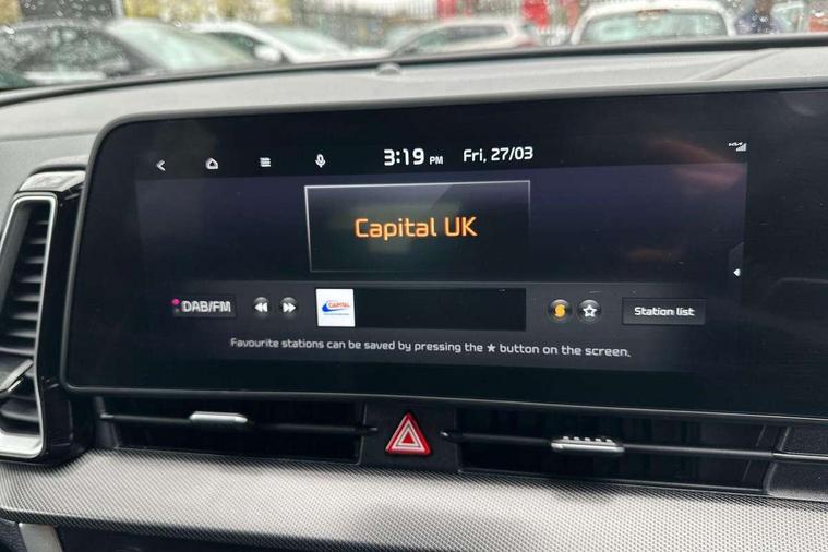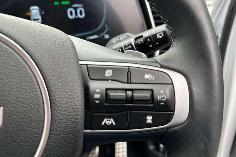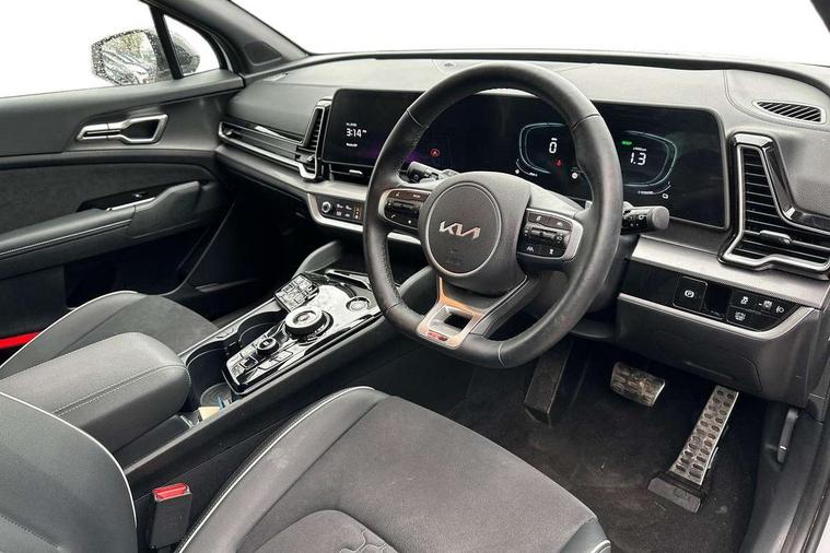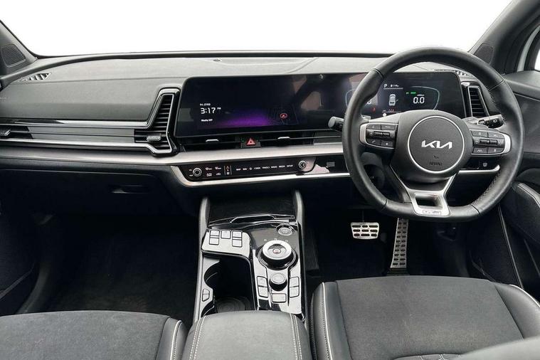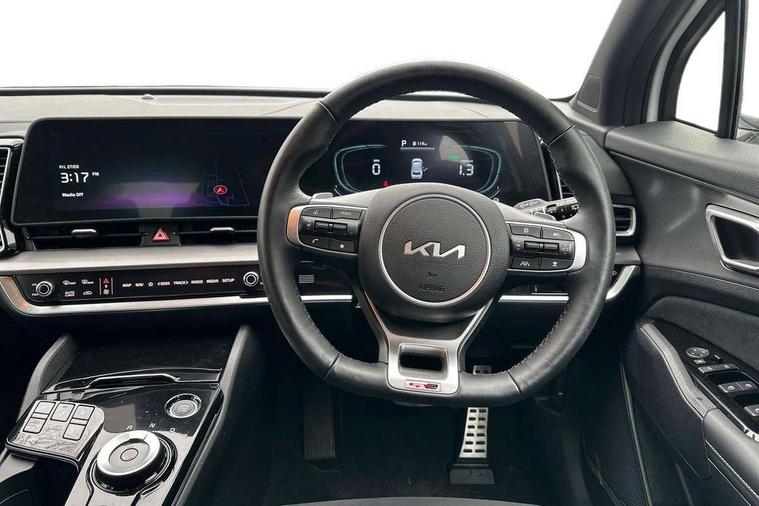 12.3" Display with navigation, 4.2" supervision colour cluster display, Apple car play/Android Auto with voice control, Drive mode selector, E-call, Forward collision avoidance assist (FCA) - city/pedestrian/cyclist/junction covering, Front and rear parking sensors, Highway Driving Assist (HDA), Intelligent speed limit assist, Kia Connect (UVO), Lane Following Assist (LFA), Lane keep assist, Low washer fluid warning, Rear view monitor, Reversing camera system integrated into centre fascia screen, Smart cruise control with stop and go functionality, Speed sensitive power steering, Trip computer, Windscreen washer level indicator, Intelligent Stop and Go, 6 speaker audio system, Bluetooth audio streaming, DAB Radio with MP3, Rear USB port, Steering wheel mounted audio controls, USB C type charging ports on centre console, USB C type charging ports on side of front seats, USB port for connection of a media device, All round electric windows with drivers and front passenger auto up/down function, Automatic headlight control system, Automatic window defogger, Backlite glass heated with timer, Body colour and black bumper with silver accents, Body colour exterior door handles, Body colour radiator upper garnish and door garnish, Electrically adjustable/heated/folding door mirrors with LED indicators, Front and rear chrome skid plates, Gloss black door mirrors, Gloss black radiator grille, Gloss black side sill and wheel arch body mouldings, Glossy black roof rack, High beam assist, Interior electrochromic mirror, LED daytime running lights, LED front fog lamps, LED headlamps (low and high beam - MFR type), LED High mounted stop light, LED rear combination lamp, Rain sensing wipers with aero blades, Rear fog lamp, Rear privacy glass, Rear side wing doors, Rear spoiler, Rear wiper, Satin finished beltline, Silver coloured inserts to bumpers, Tinted rear glass, Trailer stability assist, 12V power socket in front centre fascia and luggage compartment, 2nd row personal lamps, 3 seat bench in 2nd row, 3 x passenger assist grips, 40/20/40 split folding rear seat, All-round height adjustable headrests, Black headlining, Centre console storage box, Cupholders in rear armrest, D-Shaped sports leather steering wheel and perforated inserts with GT-Line logo, Door courtesy lamps, Drink holder at centre armrest, Driver and front passenger side sunvisors with illuminated vanity mirrors, Driver's seat manual height adjust, Drivers seat power lumbar support, Front and rear door storage, Front seat and rear pockets, Front/rear centre armrests, Gear shift indicator, Glovebox illumination, Heated front seats, Heated steering wheel, Interior door lock/unlock function, ISOFIX Child seat top tethers and anchor fixings outer rear seats, Luggage area light, Luggage area load cover, Luggage net with hooks, Metal paint interior door handles, Overhead console lamp, Paddle shift controls, Rear cabin light, Rear coat hooks, Single front passenger seat, Sports pedals, Suede leather upholstery, Three zone climate control, Tilt/telescopic adjustable steering wheel, Ventilation ducts to rear compartment, Active front headrests, All round 3-point seatbelts, Anti-lock braking system (ABS), Dual front side airbags, Dual horn, Electronic parking brake, Electronic stability control with downhill brake control, Front passenger airbag cut-off switch, Front seatbelt pretensioners + load limiters, Height adjustable front seatbelts, Hill start assist control (HAC), Impact sensing auto door unlocking, Multi collision brake assist, Rear door child safety locks, Rear seat alert system, Traction control, Twin curtain airbags, Twin front airbags, Tyre pressure monitoring system, Advanced anti-theft system including immobiliser and alarm, Door deadlocks, Engine Start/Stop Button with Smart Entry System, Locking wheel nuts, Speed sensitive auto door locking, Visible vehicle identification number, Aluminium pattern finish centre fascia and door garnish, 18" GT-Line alloy wheels, Tyre mobility kit,