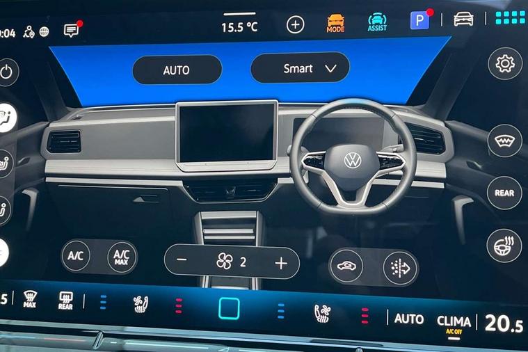 Adaptive cruise control (ACC), Advanced driver attention and drowsiness monitor, Bluetooth mobile phone interface, Digital Cockpit Pro - 10.25" high resolution dash display screen with customisable menus and information, Driving profile selection, Dynamic road sign display, E-Sim card for online connectivity, Easy Open and Close Electric tailgate with virtual pedal activation, eCall emergency call service, Extended safety system (proactive passenger protection system), Front Assist - Autonomous emergency braking with pedestrian and cyclist monitoring, IDA voice assistance with ChatGPT, Inductive smartphone charging without external antenna connection, Lane change system, Side assist, Rear traffic alert and Exit warning system, Multifunction front facing camera, Navigation system, Oncoming vehicle braking when turning including swerve support, Park assist plus with park distance control, Power assisted steering with speed sensitive, Start/stop system with regenerative braking, Tailgate/trunk lid unlocking from outside, Warning signal and warning light for front and rear seatbelts not fastened, Wireless App-Connect, Front shock absorption, Front wheel drive, 12.9" infotainment display, Digital radio reception (DAB), Diversity antenna for FM reception, 3D rear combination light special signal pattern, Ambient lighting with logo projection, Auto dimming interior rear view mirror, Automatic headlight control system, Body coloured door handles, Chrome moldings on the side windows, Coming/leaving home lighting function, Dynamic headlight range control with dynamic cornering light, Exterior mirrors convex on the left and aspherical on the right, Heat insulating glass in side and rear windows, Heat insulating windshield, High Beam Assist, automatic sensing for switching between dipped and main beam, High level 3rd brake light, Highway light, Illuminated door handle recesses, Illuminated lightline between headlamps, Illuminated logo front and rear, Laminated safety glass windshield, LED headlamps, LED separate signature day time running light, Poor weather light, Rain sensor windscreen wipers, Rear fog light on one side, reversing light on both sides, Rear side wing doors, Rear wiper, Remote electrically foldable door mirrors, puddle lights and reverse activated passenger's door mirror, 12V outlet in center console rear and in luggage compartment, 12V socket in centre console, 2 USB-C ports in the front, 2 USB-C charging sockets on the centre console in rear, charging capacity up to 45 W, 230V socket in luggage compartment, 3 bench rear seats in 2nd row, Air care climatronic 3 zone air conditioning system with rear air conditioning control panel, Black roof lining, Brushed stainless steel pedals, Carpet mats, front and rear, Centre console with illuminated storage compartment with sliding cover and two drinks holders, Chrome elements on the mirror switch and power window switches and door pulls, Door and side trim panel insert in Art velour, Drivers seat with manual adjustment of seat travel and height and backrest angle with thigh support longitudinally sliding, Front centre armrest, Front integrated head restraints, Front massage seats, Front scuff plates in aluminium, Front seats with manual height adjustment, Greyson sports cloth upholstery with inner side bolsters in artvelours, Interior ambient lighting with 30 colour options, ISOFIX anchors for child seats on outer rear seats and front passenger seat compatible with i-Size, Leather wrapped heated multifunction steering wheel with touch control and paddle shift, Mechanical rear seat release, Power adjustable lumbar support in front, Rear bench seat, split folding, longitudinally movable and folding with load-through hatch and centre armrest, Safety optimised front head restraints, Single front passenger seat, Sports comfort seats in front, Sun visors with illuminated vanity mirrors, Three rear head restraints, 3 point seat belt for centre rear seats, 3 Point seat belts in front with pretensioners, 3 point seatbelts in outer rear with ECE label, Driver and front passenger airbag with front passenger airbag deactivation, Electronic parking brake with auto hold, First aid kit with warning triangle and safety vest, Front and rear curtain airbags, Front centre airbag, Front disc brakes 1ZA, Hill start assist, Manual child proof rear door locks, Rear disc brakes, Rear side airbags, Two tone horn, Tyre pressure monitoring system, Alarm with interior protection, Central locking system keyless entry, Interior door handle in matte chrome, Soul instrument panel,