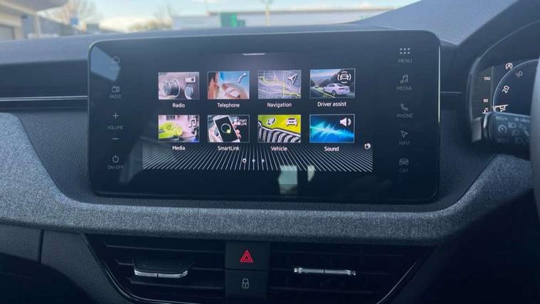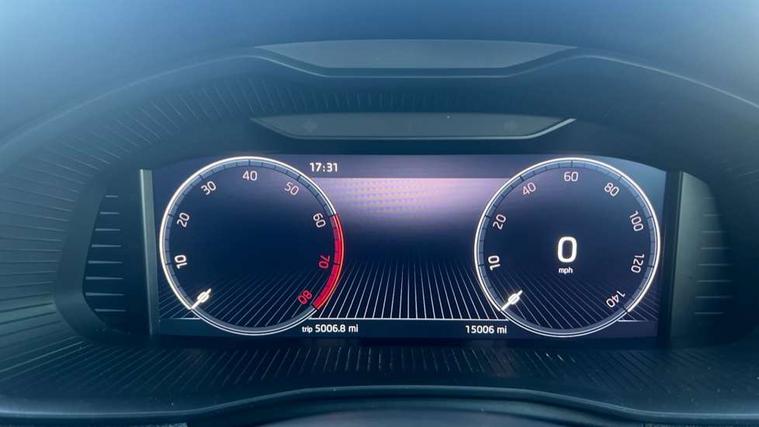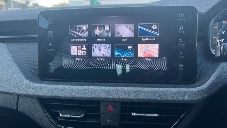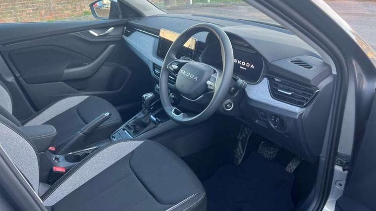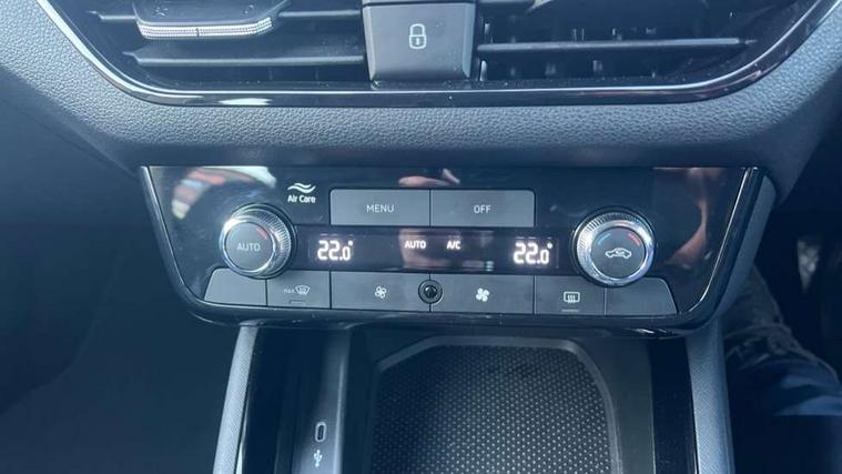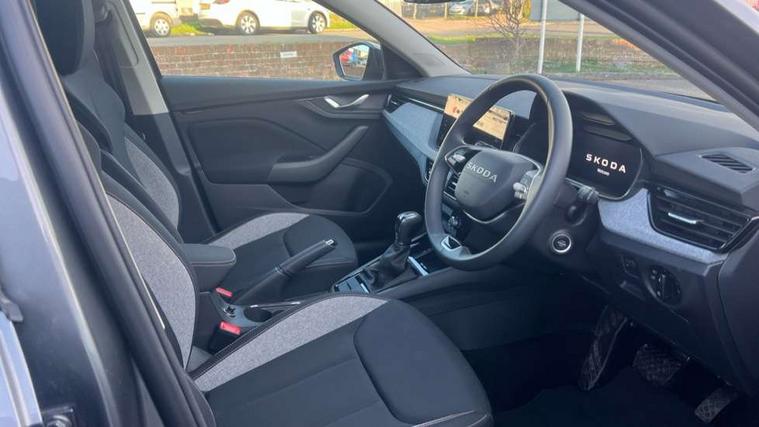 Advanced driver attention and drowsiness monitor, Bluetooth, e-Call (emergency call), Front assist system, PAS, Rear parking sensors, Rear view camera, Speed limiter, Tailgate, Traffic sign recognition, Virtual Cockpit - 10.25" digital display, Voice control system, Wireless smartlink, 4 USB C ports, 8 Speakers, 9.2" Skoda navigation display, DAB radio, Auto dimming rear view mirror, Automatic headlamp activation with Coming home and Leaving home feature, Automatic high/low beam, Body colour bumpers, Body colour door mirrors and handles, Chrome moulding around grille, Front and rear electric windows, Full LED headlights, Heated rear window, LED 3rd brake light, LED brake lights, LED daytime running lights, LED front turning lights, LED high beam, LED low beam, LED taillights, Rear LED fog light, Rear side wing doors, Rear wiper, Tinted windows, Unique dark chrome design logo on alloy wheels, 12V socket in luggage compartment, 3 seat bench in 2nd row, Black / Grey armrest stitching, Black hotstamping, Cargo elements, Chrome inner door handles, Door inserts in satin black, Driver and passenger sun visors with vanity mirror, Dual zone climate control, Front and rear roof lights, Front centre armrest, Front head restraints, Glasses storage in roof liner, Height adjustable driver seat, Height adjustable passenger seat, Ice scraper, Illuminated glove compartment, Inner circulation control with pollen filter, ISOFIX for front passenger seat, Isofix preparation for back seats, Leather gearknob and handbrake lever, Loft cloth upholstery, Luggage net under rear parcel shelf, Manual lumbar support for front seats, Net package and top tether hooks in boot space, Pearl grey ceiling, Pocket on the back of both front seats, incl. mobile phone pockets, Single front passenger seat, Skoda lettering on steering wheel, Textile floor mats, Third rear headrest, Ticket holder, Top tether for front passenger seat, Umbrella in driver's door, 3x3 point rear seatbelts, ABS, Child locks, Curtain airbags and front side airbags, Disc brakes, Driver and front passenger airbags, ESP, Hill hold control, Manual leather parking brake, One tone horn, Passenger airbag switch off function, Seatbelt reminder for driver and front passenger, Tyre pressure monitoring system, Anti theft alarm system with interior monitoring, backup horn and towing protection, Anti-theft wheel bolts, Remote central locking with 2 remote folding keys, SAFE function for remote central locking, Decord pad, door inserts Kota uni,