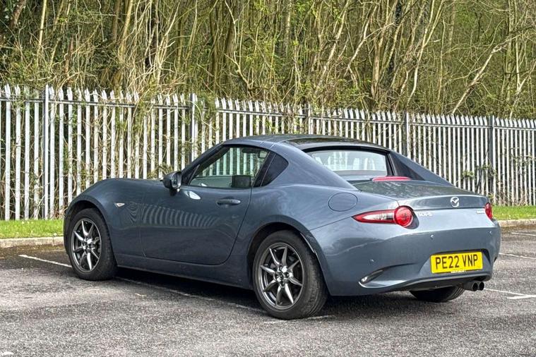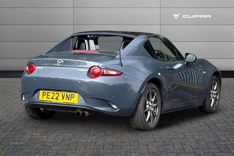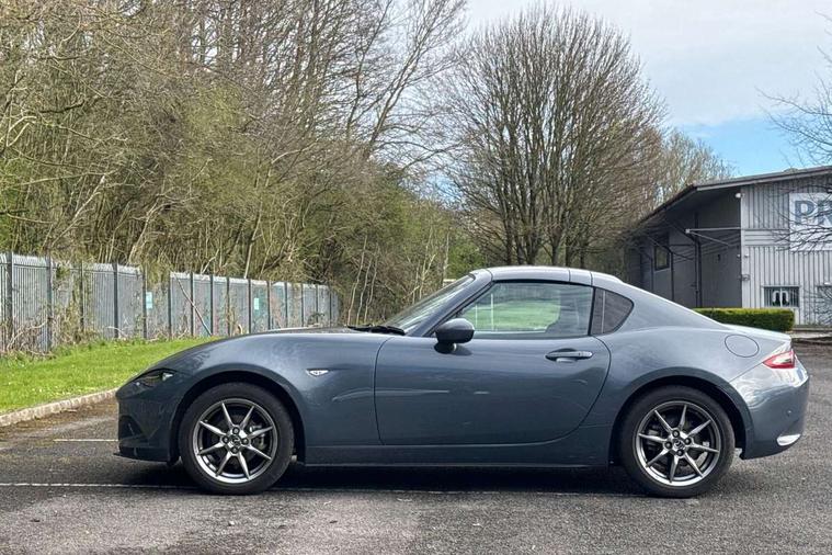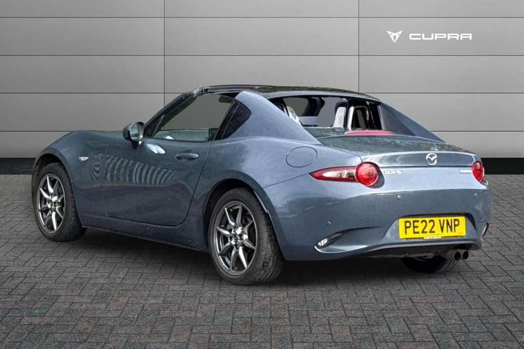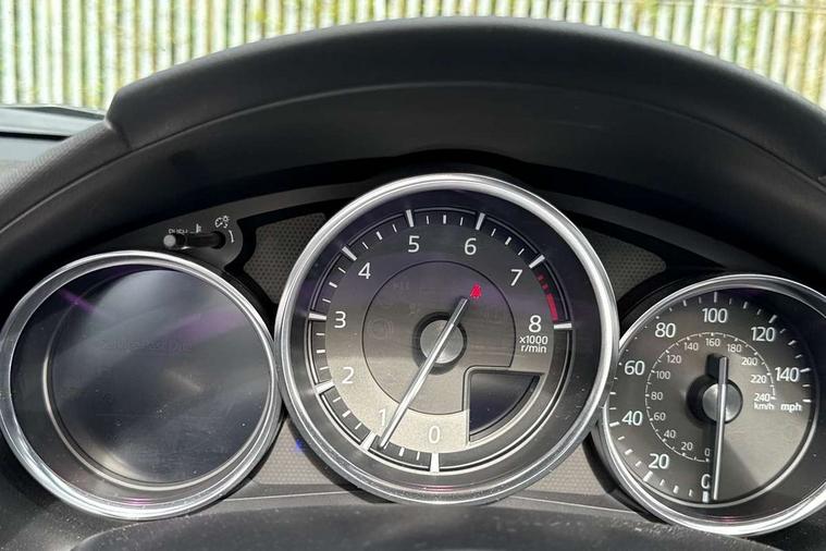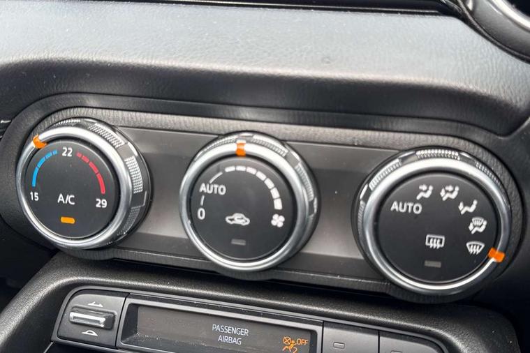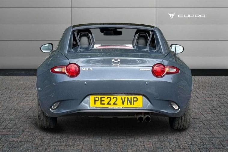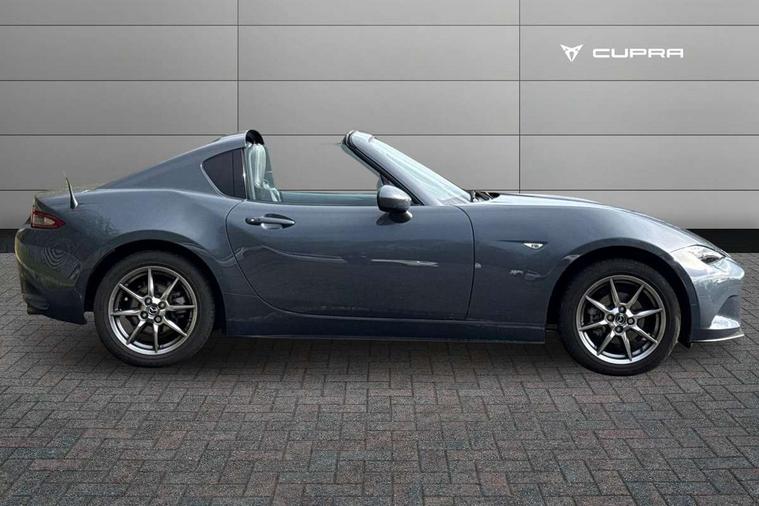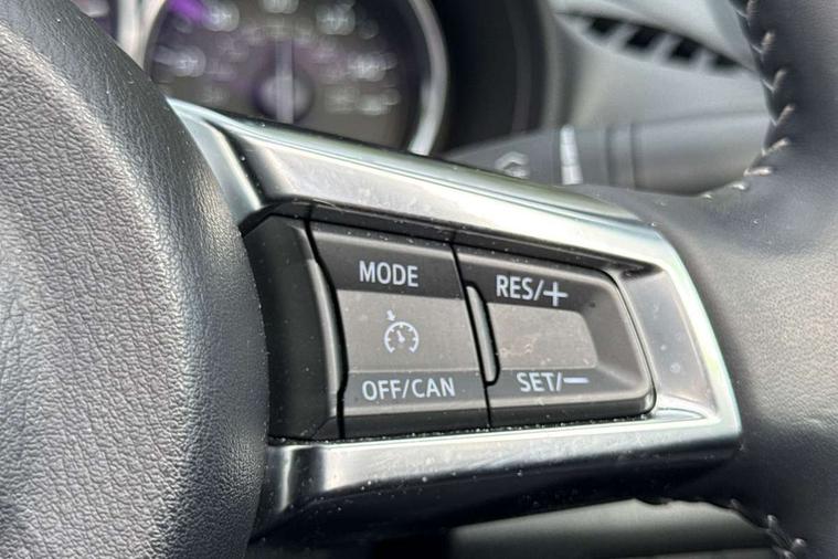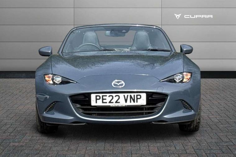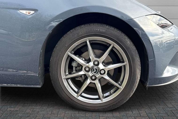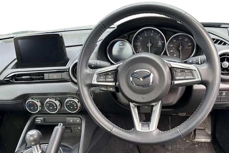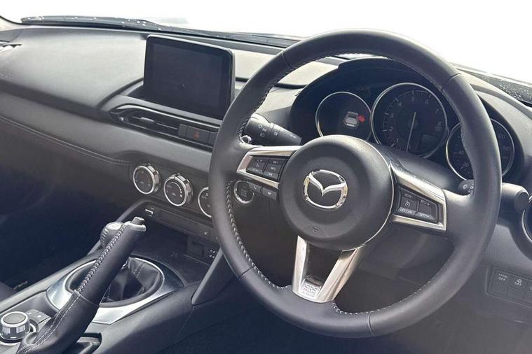 7" colour touch screen with Mazda connect infotainment, Aha and stitcher app, Analogue speedometer, Apple car play/Android Auto, Cruise control + speed limiter, Driver alert system, eCall emergency call system, Emergency stop signalling system, Engine start/stop button, Hands free phone preparation, Integrated bluetooth with hands-free calling, bluetooth audio and easy access to phone contacts, Integrated navigation system, Lane departure warning system, Multi dot display tachometer and electric odometer, PAS, Rear parking sensor, Service indicator, Traffic sign recognition, Trip computer, Water temperature gauge, I-ELOOP, i-stop, 2 USB/aux input socket, Multimedia Commander including separate volume dial, Premium Bose sound system with 9 speakers with 2 in each front headrest, AM/FM/DAB radio and MP3, Steering wheel mounted audio/bluetooth controls, Adaptive front lighting system, Auto dimming rear view mirror, Automatic headlamp levelling, Black scuff plates with stainless steel insert, Body colour bumpers, Body colour co ordinated interior upper door trim, Body coloured electric/heated door mirrors, Coming/leaving home lighting function, Dual exhaust pipes, Dusk sensitive headlamps, Electric front windows/one touch facility, High mounted rear brake light with Black coloured cover, LED 3rd brake light, LED daytime running lights, LED Headlights, LED indicator lights, LED rear lights, Manually operated black premium cloth soft top with heated rear glass window, Piano Black fashion bars, Rain sensing front wipers, Rear boot, 12V socket, Centre console storage box, Chrome Air conditioning dials, Climate control air conditioning, Coin Box, Driver and front passenger sunvisors with covered vanity mirror and driver ticket holder, Driver seat manual slide, recline and tilt adjustment, Front centre armrest, Front head restraints, Gear shift indicator, Heated front seats, in 3 heat levels, Interior courtesy light, ISOFIX front passenger seat child seat compliance, Leather gear knob, Leather handbrake lever, Leather steering wheel, Lockable rear centre box with lid, Passenger seat + manual slide/recline adjust, Perforated leather upholstery, Side door trim in black vinyl with silver stitching, Single front passenger seat, Sports seats, Tilt/telescopic steering column, Two cupholders, Windblocker, 3 point ELR front seatbelts with pretensioners, ABS+Electronic Brake force Distribution, Deployable Hood System (DHS), Driver and front passenger airbags, Driver and passenger seatbelt reminder audible warning, Front dynamic yaw stability control, Hill hold assist, Passenger airbag deactivate switch, SCBS - Smart City Brake Support, rear plus front with autonomous emergency braking, Side airbags, Traction control, Tyre pressure monitor, Remote central locking with deadlocking and remote boot release, Smart keyless entry, Superlocking, Thatcham category 1 alarm + immobiliser, Chrome air vent surrounds, Chrome meter rings, Dashboard panel - vinyl leather Black, 16" Bright Silver alloy wheels, Tyre puncture repair kit,