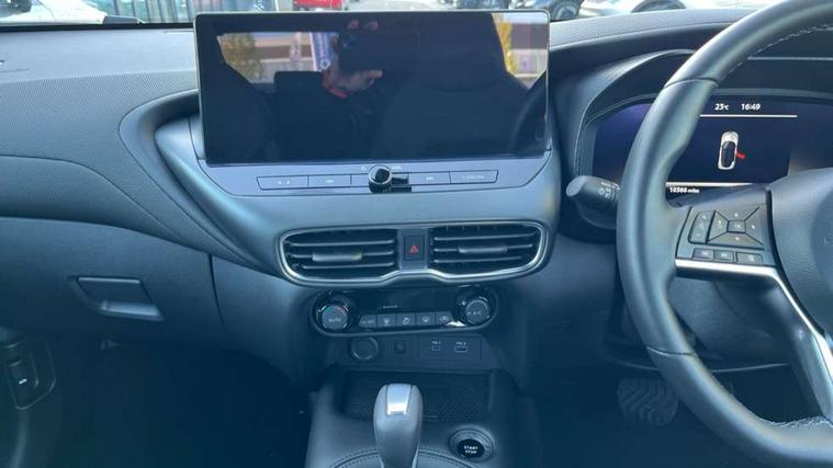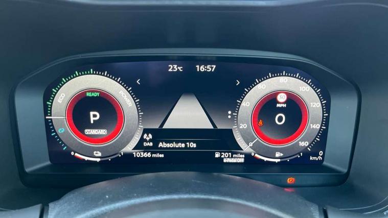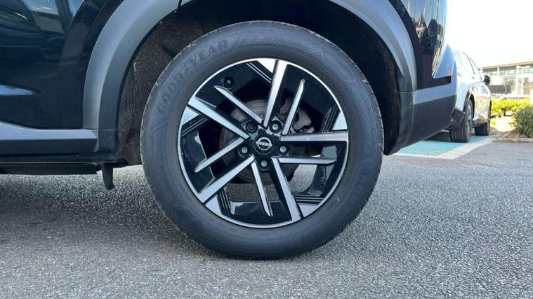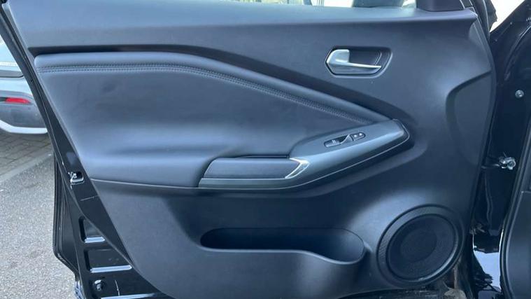 12.3" full colour TFT screen combimeter, Drive modes select (Eco, normal and sport), e-Pedal step, Emergency and breakdown call, EV mode switch, Front parking sensor, Intelligent driver alert system, Intelligent lane intervention, Lane departure warning system, Nissan connect 12.3" touch screen entertainment system, Nissan connect nav with TomTom traffic, Nissan connect services, Outside temperature sensor, Power Steering, Rear parking sensor, Stop/start button, Traffic sign recognition, Trip computer, Voice recognition, WiFi connectivity, Wireless Apple CarPlay and Google Android auto, Wireless Smartphone charger, 2 X Rear console USB port, 6 speakers, Bluetooth system, USB, Aux-in and 12V socket, DAB Digital radio, Auto dimming frameless rear view mirror, Automatic hazard signal with emergency stop signal, Body colour door handles, Electrically adjustable door mirrors with integrated indicators, Follow me home headlights, Front and rear electric window with one touch driver window, Heated and auto folding door mirrors, High beam assist, LED 3rd brake light, LED daytime running lights, LED headlamps, LED rear fog lamp, LED rear lamps, One touch passenger window, Rain sensor windscreen wipers, Rear privacy glass, Rear side wing doors, Rear wiper, Roof spoiler, Shark fin roof antenna in solid Black, Three blink turn signal, 3 height adjustable rear headrests, 3 seat bench in 2nd row, 60/40 split folding rear seat, Automatic climate control, Card holder on driver sunvisor, Cloth/Synthetic leather with melange fabric inserts, Driver side rear coat hanger, Driver/passenger sunvisors and vanity mirrors, Front and rear cabin lights, Front armrest, Front door pockets with bottle holders, Front head restraints, Front/rear passenger grab handles, Height adjustable driver's seat, Internal chrome door handles, Leather gearshift knob, Luggage board, Luggage space lighting, Monoform sporty seats, Multifunction steering wheel, Rear door bottle holders, Single front passenger seat, Smooth synthetic leather steering wheel, Synthetic leather kneepad, Telescopic steering wheel adjustment, Two cupholders in front centre console, Two rear isofix child seat anchorage points with top tether, Welcome light and console tray ambient lighting, ABS with EBD and brake assist, Active ride control, Active Trace Control, Driver and passenger airbags, Driver and passenger side airbags, Electric handbrake with auto hold function, Electronic Stability Programme (ESP), Front and rear curtain airbags, Height adjustable seatbelts, Hill start assist, Intelligent emergency braking with pedestrian and cyclist recognition, Rear door child safety locks, Seatbelt reminder for driver/front passenger and rear seats, Three 3 point rear seatbelts, Traction control, Tyre pressure monitoring system, VDC Dynamic Vehicle Control, Alarm, Immobiliser, Intelligent key and start push button with walk away lock and approach unlock functions, Remote central locking, 17" Alloy wheels, Tyre puncture repair kit,
