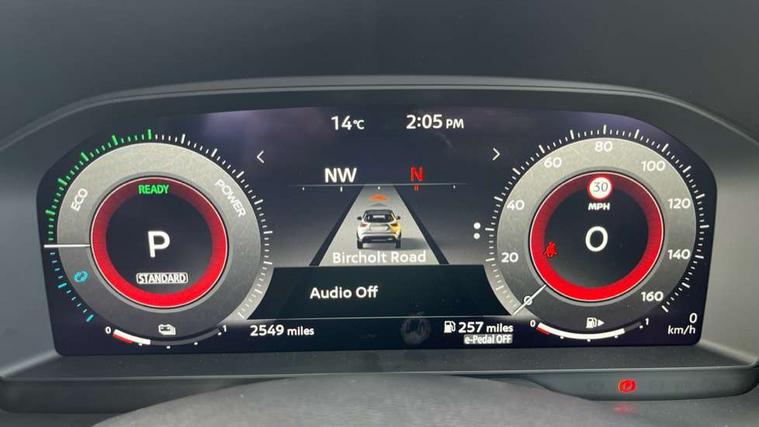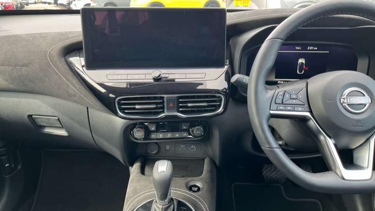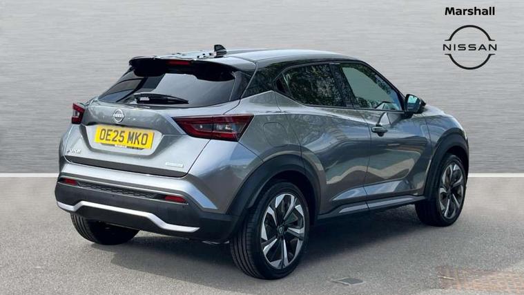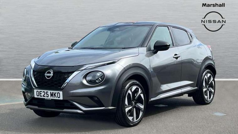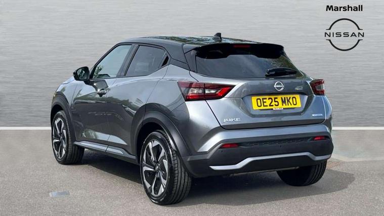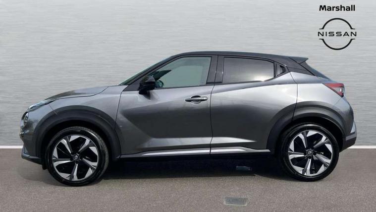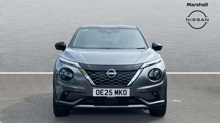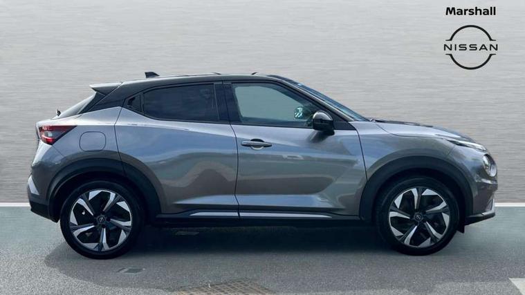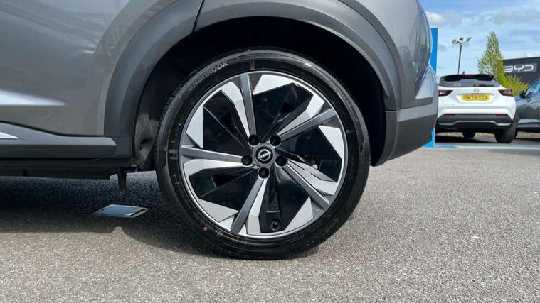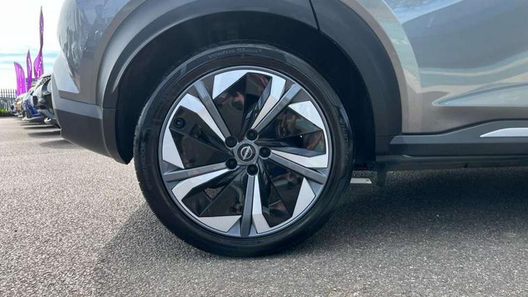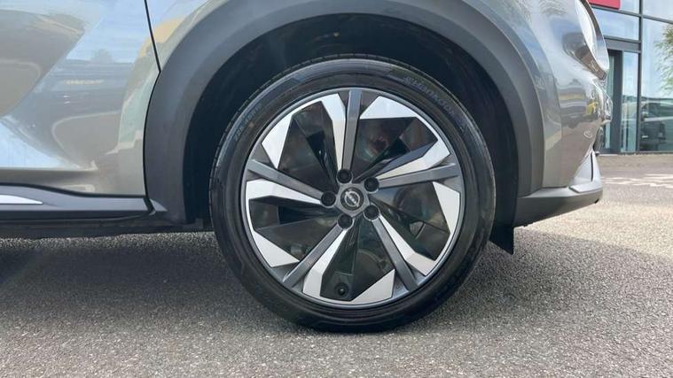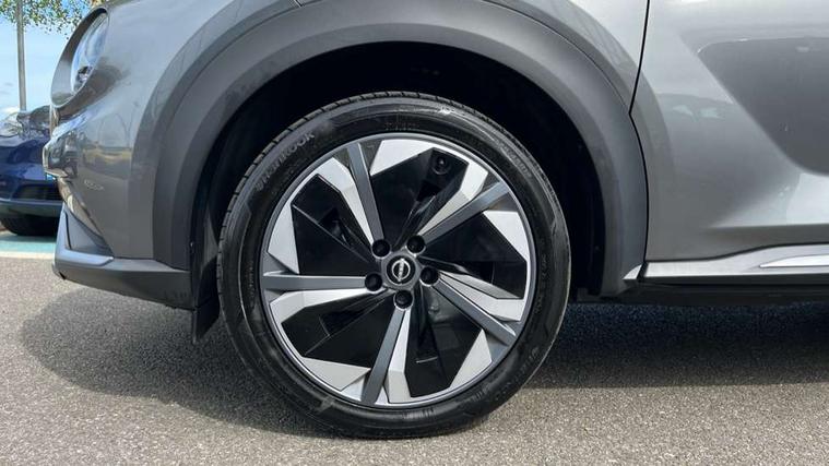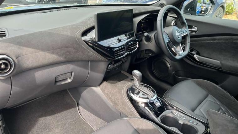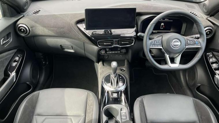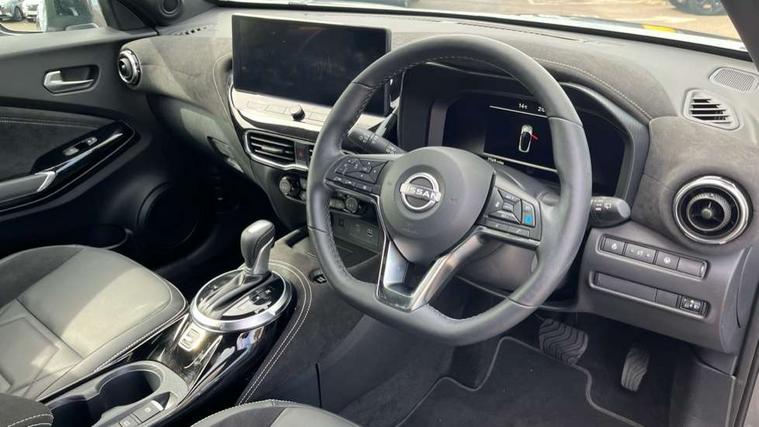 12.3" full colour TFT screen combimeter, Drive modes select (Eco, normal and sport), e-Pedal step, Emergency and breakdown call, EV mode switch, Front parking sensor, Intelligent driver alert system, Intelligent lane intervention, Lane departure warning system, Nissan connect 12.3" touch screen entertainment system, Nissan connect nav with TomTom traffic, Nissan connect services, Outside temperature sensor, Power Steering, Rear parking sensor, Stop/start button, Traffic sign recognition, Trip computer, Voice recognition, WiFi connectivity, Wireless Apple CarPlay and Google Android auto, Wireless Smartphone charger, 10 Bose speakers 6 speakers and 2 headrest speakers for driver/passenger seats, 2 X Rear console USB port, Bluetooth system, USB, Aux-in and 12V socket, Bose personal sound stage control, DAB Digital radio, Auto dimming frameless rear view mirror, Automatic hazard signal with emergency stop signal, Body colour door handles, Electrically adjustable door mirrors with integrated indicators, Follow me home headlights, Front and rear electric window with one touch driver window, Heated and auto folding door mirrors, High beam assist, LED 3rd brake light, LED daytime running lights, LED front fog lights, LED headlamps, LED rear fog lamp, LED rear lamps, One touch passenger window, Rain sensor windscreen wipers, Rear privacy glass, Rear side wing doors, Rear wiper, Roof spoiler, Shark fin roof antenna in solid Black, Three blink turn signal, 3 height adjustable rear headrests, 3 seat bench in 2nd row, 60/40 split folding rear seat, Automatic climate control, Card holder on driver sunvisor, Door ambient lighting, Driver seat back pocket, Driver side rear coat hanger, Driver/passenger sunvisors and vanity mirrors, Front and rear cabin lights, Front armrest, Front door pockets with bottle holders, Front head restraints, Front/rear passenger grab handles, Gear console ambient circle lighting, Height adjustable driver's seat, Internal chrome door handles, Leather gearshift knob, Luggage board, Luggage space lighting, Monoform sporty seats, Multifunction steering wheel, Passenger seat back pocket, Rear door bottle holders, Single front passenger seat, Smooth synthetic leather steering wheel, Synthetic leather kneepad, Telescopic steering wheel adjustment, Two cupholders in front centre console, Two rear isofix child seat anchorage points with top tether, Welcome light and console tray ambient lighting, Heat pack with height adjustable passenger seats - Juke, Interior personalisation pack - Juke, ProPilot pack - Juke Auto, Satin grey exterior personalisation pack - Juke, ABS with EBD and brake assist, Active ride control, Active Trace Control, Driver and passenger airbags, Driver and passenger side airbags, Electric handbrake with auto hold function, Electronic Stability Programme (ESP), Front and rear curtain airbags, Height adjustable seatbelts, Hill start assist, Intelligent emergency braking with pedestrian and cyclist recognition, Rear door child safety locks, Seatbelt reminder for driver/front passenger and rear seats, Three 3 point rear seatbelts, Traction control, Tyre pressure monitoring system, VDC Dynamic Vehicle Control, Alarm, Immobiliser, Intelligent key and start push button with walk away lock and approach unlock functions, Remote central locking, 19" Aero alloy wheels, Tyre puncture repair kit,