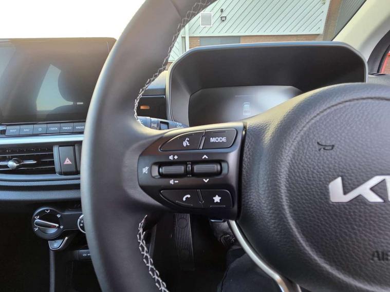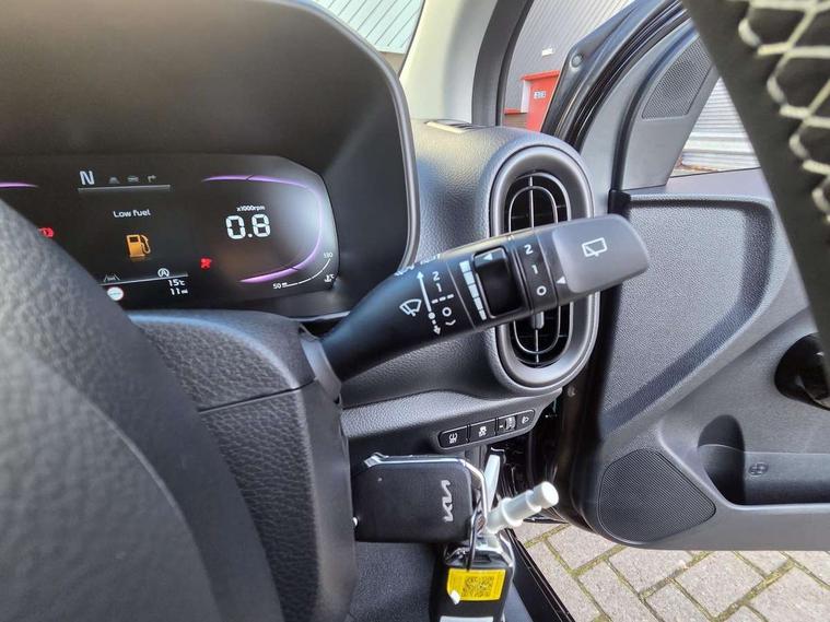 4.2" driver display screen, 8" touchscreen navigation, Apple car play/Android Auto with voice control, Cruise control + speed limiter, Emergency call service, Emergency stop signalling system, External temperature gauge, Forward Collision-Avoidance Assist (FCA) 1.0 - City/Pedestrian/Cyclist, Intelligent speed limit assist, Kia Connect (UVO), Lane Follow Assist 1.0, Lane keep assist, Motor driven power steering, Rear parking sensors, Reversing camera system, Tachometer, Trip computer, 4 speaker audio system, Bluetooth with music streaming, USB ports for connection of a media device, Automatic defog system, Automatic headlight control system, Body colour bumpers, Body coloured door mirrors, Body coloured side sills, Body coloured wheel arches, Daytime running lights, Electric adjustable heated door mirrors, Electric front and rear windows, Electric front touch drivers front window, Halogen headlamps, Headlamp levelling, Heated rear window, High mount brake light, Rain sensor, Rear fog lights, Rear Lights Bulb, Rear side wing doors, Rear wiper, Silver window surround, Speed variable front wipers, Tinted windshield glass, Visible VIN plate, 12V power point front, 3 seat bench in 2nd row, 60:40 Split folding rear seats, All round height adjustable headrests, Artificial leather steering wheel, Centre console storage box, Cloth upholstery, Driver and front passenger side sunvisors with vanity mirrors, Front and rear door storage, Front cabin lights, Front passenger USB-C charging port, Glovebox, Grey headlining, ISOFIX Child seat top tethers and anchor fixings outer rear seats, Luggage area light, Luggage area parcel shelf, Luggage board, Luggage net + hook, Manual adjust steering wheel, Manual adjustable driver and front passenger seat, Manual air conditioning, Single front passenger seat, All round 3-point seatbelts, Anti-lock braking system (ABS), Electronic stability control, Front + rear side airbags, Front airbags, Front passenger airbag cut-off switch, Front seatbelt height adjusters, Hill hold control, Hill start assist control (HAC), Rear airbags, Seatbelt warning, Side impact protection, Torque vectoring brake based and straight line stability (SLS), Traction control, Tyre pressure monitoring system, Vehicle stability management, Central door locking, Folding key, Locking wheel nuts, Manual child locks, Rear occupant alert, Thatcham category 2 security alarm and immobiliser, 14" alloy wheels, Tyre mobility kit,