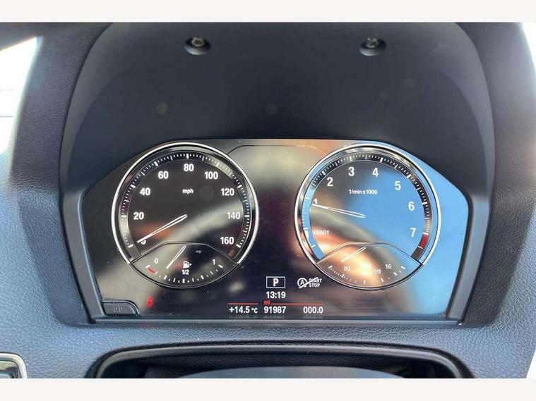 Automatic start/stop system, BMW Online services, BMW remote services, BMW Teleservices, Brake force display, Brake pad wear indicator in front and rear, Check Control warning system for monitoring of lights and door/luggage compartment open warning, Eco pro mode, Instrument cluster with speedometer with miles per hour read out, tachometer and fuel gauge, Lights on warning by audio warning signal when ignition is switched off, Oil temperature display via on board computer in instrument cluster, On board computer - average speed+fuel consumption, service interval, clock/date, odometer/trip meter, outside temperature display and ice warning, On board diagnostics, Optimum shift indicator, Personal Profile, Real time traffic information, Servotronic PAS, Speed limiter, Automatic transmission, Battery age recognition function, Drive Performance Control, BMW professional radio with CD player, DAB Digital radio, Body colour door handles, Body colour front and rear bumpers, Body colour roof mouldings, Clear lenses direction indicator lights, Dark chrome exhaust tailpipe, Daytime driving lights, Direction indicator side lights in exterior mirrors, Dynamic brake lights, Electrically adjustable heated door mirrors and washer jets, Follow me home headlights, Front air inlet with high gloss black finish, Front and rear bumper system with replaceable deformation elements, Front and rear electric windows with open and close fingertip control, anti trap facility and comfort closing, Green tinted heat protection glazing, Headlight beam throw control, Heated windscreen washer jets, High gloss black extra wide kidney grille with black vertical slats, High level third brake light, Lightweight engineering, Nearside reverse light in rear light cluster, Offside rear fog lights, Rain sensor including auto headlights activation, Rear bumper with high gloss black finish, Rear window aerial, Rear window wiper, Shark fin antenna, Visible VIN plate, Welcome lighting, 12V power socket in centre console, 12V power socket in passenger footwell, 60/40 split folding rear seat, Anthracite Velour floor mats, Conditioned based service, Four grab handles integrated in roof lining, Front and rear side armrest integrated into door trim, Front door sill finishers in BMW designation, Front folding sliding armrest with storage compartment, Front head restraints, Front sports seats with electric side bolster adjustment, Front storage compartment in centre console and in door trim, Front/rear courtesy lights with soft on/off dimming, Glove box handle with chrome surround, Glovebox, Interior light in front centre interior mirrors and rear centre auto interior light activation when door is opened when ignition switched off, Isofix child seat for two outer rear seats, Leather gear knob and handbrake grip, Luggage compartment access via BMW roundel, Manually adjustable steering column, Multi-function controls for steering wheel, Rear folding head restraints, Two cupholders with sliding cover and inlay mat, Two sills lashing eyes in the luggage compartment, 3 point seatbelts on all seats, front pyrotechnic belt tensioners, stopper and belt force limiters, rear coded belt buckles, Active differential brake (ADB), electronic differential lock in DSC-OFF mode, Airbags - Front driver and passenger, front and rear head, front side, curtain head protection, Anti lock braking system (ABS) with brake assist, Automatic Stability Control (ASC), Battery safety cut-off, BMW emergency call, Brake drying, Brake energy regeneration, Braking readiness, Cornering brake control (CBC), Crash sensor activating central locking release, hazard warning lights, Driver and front passenger seat belt security check, DSC+, Dynamic brake control, Dynamic Traction Control - DTC, Front passenger manual airbag deactivation, Front ventilated brake disc, Hill start assist, Rear brake discs, Rear child proof door locks, Side impact protection, Twin horns, Tyre pressure monitoring system, Warning triangle and first aid kit, Automatic drive away locking facility, Central locking switch for all doors, fuel filler cap and luggage compartment, Locking wheel bolts, Remote central locking with two Integrate key, one button for opening and closing all lock, open and close window, button for open luggage compartment, Remote control integrated key with red inset, Start/stop button with comfort go keyless engine start and auto start stop deactivation button, Thatcham Cat.1 alarm and immobiliser, Reduced rolling resistance tyres, Run flat tyres,