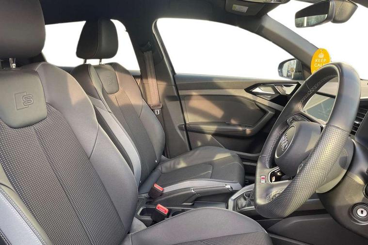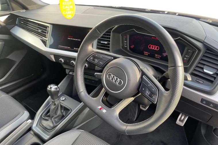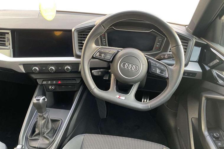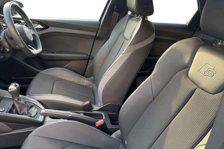 10.25" Digital instrument cluster display classis style instrument dials + speed, odometer, time, outside temperature, telephone menu + fuel level warning, Audi drive select - power steering assistance + engine, Audi smartphone interface with connect compatible smartphone via USB directly MMI display + Nav, music, third party apps controlled via MMI controller, Automatic start/stop system, Bluetooth interface, Cruise control, Driver's information system, Electromechanical power steering, Emergency e-call, Lane departure warning system, Rear parking sensor, Service interval indicator, Speed limiter, Voice control system, Washer fluid level indicator, Sports suspension, 2 x USB type C connection points, 6 passive loudspeakers, DAB Digital radio, MMI radio plus with 10.1" colour MMI display screen and MMI touch, Auto dimming rear view mirror, Black side skirts, Body coloured bumpers, Door sill trims with aluminium inlays and logo, Electric front and rear windows, Electrically adjustable, heated, folding door mirrors with integrated LED side indicator, Front side air inlets in grained matt black and C frame in anthracite black, Front wing badges, Heat insulating glass windscreen and side windows, Heated rear windscreen, High level LED brake light, LED headlights with LED rear lights + dynamic rear indicators + headlight adjustment and high beam, turning light + LED daytime running lights, Privacy glass, Rain and light sensors, Rear fog lights, Rear side wing doors, Rear wiper, Side front spoiler lips in grained matt black, 12V socket in centre console with two cup holders, 3 rear seats with headrests, 3 seat bench in 2nd row, 3 spoke flat bottomed multi-function plus leather steering wheel with S badging, grips in preforated leather and contrast stitching, 40:60 Split folding rear seat or folded fully, Black cloth headlining, Driver and passenger seat with manual height adjust with forward and backwards adjustment, Front and rear black floor mats with contrast stitching in fine silver, Front head restraints, Front passenger seat, Height and reach adjustable steering wheel, ISOFIX child seat mounting for front passenger and outer rear seats including top tether attachment point of outer rear seats, Leather gear knob with aluminium trim, Leather handbrake grip, Luggage compartment light with front and rear reading lights, Manual air conditioning, Manually adjustable lumbar support in front seats, Stainless steel pedals, Black styling pack - A1 Sportback Black Edition, LED interior lighting pack - A1, Luggage compartment pack - A1, 3x3 point rear seatbelts, Audi pre-sense front with pedestrain and cyclist recognition, Brake assist function, Driver and front passenger airbag with front side and head airbags, Electronic Stability Control including ABS, EBD, ASR and EDL, Front passenger airbag deactivation switch, Hill hold assist, Manual rear child locks, Seatbelt height adjustment for front seats, Seatbelt monitoring, Tyre pressure warning light, Warning triangle and first aid kit, Anti theft alarm, Anti theft wheel bolts and loose wheel warning, Immobiliser, Remote central locking with 2 foldaway keys, Aluminium trim for control switches, air vents and digital instrument cluster, Black dashboard, Silver grey inlays polygon structure in diamond paint finish, Structured grey accent areas including air vents, door handle recesses and centre console in quartz paint finish,