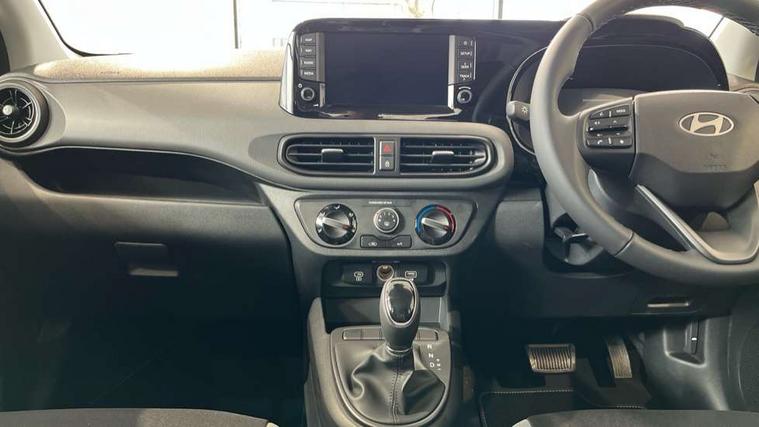 8" Touchscreen satellite navigation including mapcare and LIVE services, Apple car play/Android Auto, Bluelink mobile remote connectivity, Bluetooth connectivity with voice recognition, Cruise control, Driver attention alert system, eCall emergency call system, Forward Collision-Avoidance Assist (FCA) - Pedestrian/Cyclist, Full-width 4.2" LCD instrument cluster, Intelligent speed limit assist, Lane departure warning system with lane keep assist - LKAS, Lane follow assist, PAS, Rear parking sensors, Rear view camera with guidelines, Roadside assistance, Start/Stop function, Tailgate, Trip computer, 2 front/2 rear speakers, Front and rear USB-C ports, Front USB connection, Leading vehicle alert (LVA), Steering wheel audio, phone and cruise controls, 1 speed non intermittent rear windscreen wiper, Black finish on B pillars, Body colour door handles, Body coloured bumpers, Body coloured door mirrors, Electric front windows, Electric rear windows, Electrically adjustable and heated door mirrors, Flat metal emblem, Front grille in matte black, Front intermittent wipers, Halogen headlights, Headlights inner with Black Blade design, Heated rear window, High beam assist, Indicator light on door mirrors, LED daytime running lights, Rear roof spoiler with integrated LED brake light, Rear side wing doors, 12v power outlet - front, 3 seat bench in 2nd row, 60/40 split folding flat to floor rear seats, Auto light control, Bottle holders in front/rear doors + front centre console, Cabin and luggage compartment interior lighting, Cloth upholstery, Driver + passenger vanity mirrors, Driver's seat height adjustment, Driver/passenger sunvisors with ticket holders, Floor mats, Front door pockets, Front Head Restraints - Vertical and Horizontal Adjustment, Glove compartment, Height adjustable steering column, Isofix child seat preparation, Leather wrapped steering wheel and gear knob, Manual air conditioning, Rear door pockets, Single front passenger seat, Vertical adjustment rear head restraints, 3x3 point rear seatbelts, Airbags - front, front side and curtain airbags, Anti-lock brake system (ABS), Autonomous emergency braking (AEB) with forward collision warning system, Brake assist function, Childproof rear door locks, Electronic stability control, Front and rear seatbelt reminder, Front seatbelt pretensioners, Hill start assist control (HAC), Passenger airbag deactivate switch, Traction control, Tyre pressure monitoring system, Immobiliser, Perimeter alarm, Rear occupant alert, Remote central locking, Second remote key, Speed sensitive auto door locking, 15" Alloy wheels, Temporary mobility kit (TMK),