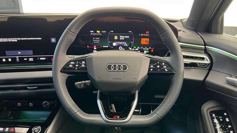 Adaptive cruise control, Advanced driver attention and fatigue montior, Audi application store, Audi assistant, Audi connect emergency call and service, Audi drive select, Audi smartphone interface, Audi virtual cockpit plus with 11.9" OLED colour display, Automatic start/stop system with coasting functionality, Camera based traffic sign recognition, Intersection assist, Lane departure warning, MMI navigation plus with high resolution 14.5" OLED touchscreen colour display, Park assist plus, Parking system plus with 360 display, Progressive steering with servotronic, Rear view camera, Swerve assist and turn assist, Traffic sign based speed limiter, Sports suspension lowered by 20mm, 2 USB-C ports in both the front and rear, Audi sound system impressive sound with 10 loudspeakers including centre speaker and subwoofer, 6-channel amplifier with a total output of 180 watts, DAB digital radio reception, Smartphone compartment with wireless charging, Aluminium window trims, Auto dimming rear view mirror, Body colour door mirrors, Door mirrors - electrically adjustable, heated, folding and auto dimming on both sides, Front and rear electric windows, Front door sill trims with aluminium inlays, illuminated with 'S' logo, High beam assist, LED headlights Plus incl. digital daytime running lights, turning light, all-weather light, motorway light, manouevring light and intersection light, LED rear lights pro incl. dynamic rear indicators and illuminated light strip with animated coming and leaving home function, LED third brake light, Privacy glass, Rear and side windows with heat insulating glass, Rear boot, Rear side wing doors, S Line badges on the front wings, S line bumpers, radiator grille and diffuser in phantom black and diffuser insert in matt anthracite, White rhombus logo projection light in exterior mirrors, Windscreen with acoustic glazing, 3 rear headrests, 3 seat rear bench, 3 spoke leather steering wheel with multi-function buttons with touch control, flattened on top and bottom, with S badging and contrast stitching, 3-zone automatic climate control, 40:20:40 split folding rear seat bench with centre armrest and cup holders, Comfort front centre armrest, Front and rear floor mats, Front seats with manual adjustment for position and 4-way electric lumbar support, Front sport seats with integrated headrest and S embossed logo, Headlining in black cloth, Heated front seats, i-Size child seat mounting on the front passenger side and outer rear seats, i-Size and top tether on the outer rear seats, Luggage compartment lid, electrically opening and closing, Manual steering column height and depth adjustment, Single front passenger seat, Stainless steel pedals and footrest, Steering wheel grips in perforated leather and shift paddles, Ambient lighting package plus - A5, 3x3 point rear seat belts, Driver airbag, Electric child safety locks, First aid kit with warning triangle and vests, Front emergency brake assist, Front passenger airbag, Front passenger airbag deactivation, Front side airbags with head airbag system and front interaction airbag, Hill hold assist, Seat belt monitoring with rear seat occupant reminder, Tyre pressure loss indicator, Anti theft alarm, Anti-theft wheel bolts, Keyless Go, Accent surfaces and control buttons in gloss black, Black dashboard with contrast stitching, Inlays in matt brushed aluminium with linear embossing, anthracite, Softwrap in leatherette with contrast stitching, Upper and lower interior elements in leatherette, Tyre repair kit,