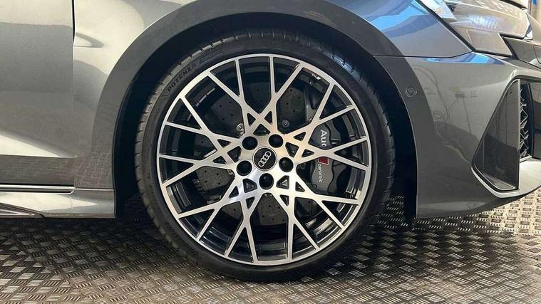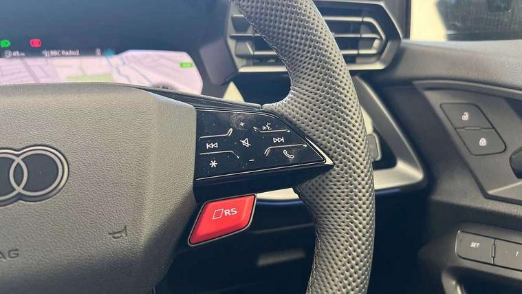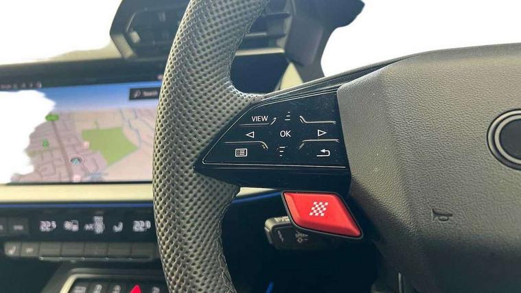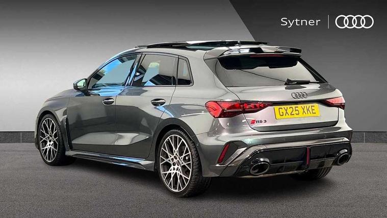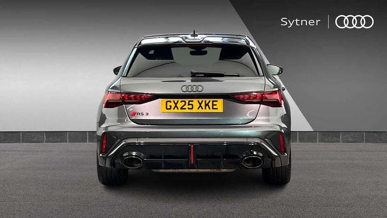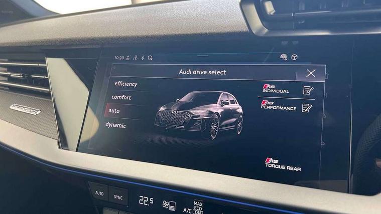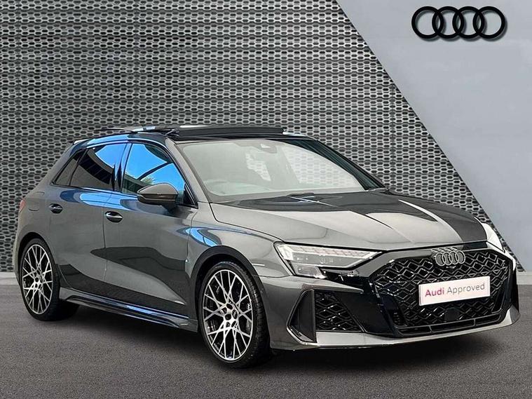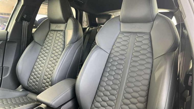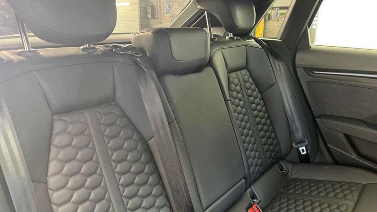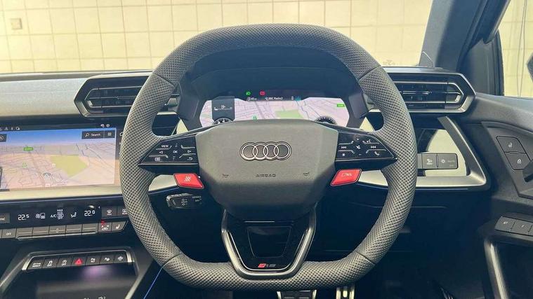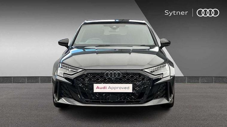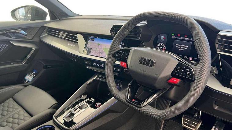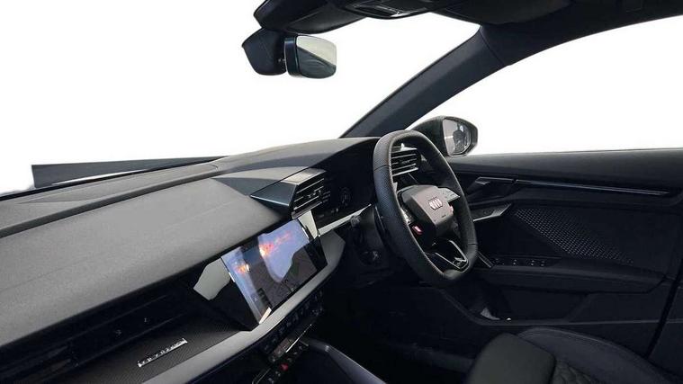 Adjustable speed limiter, Audi drive select comfort, auto, dynamic and efficiency, Audi smartphone interface with app store includes wireless Apple carplay, Android auto and Amazon alexa integration, Audi virtual cockpit plus with RS specific design and 12.3" display with additional graphic display options, Automatic start/stop system with recuperation, Bluetooth interface, Camera based traffic sign recognition, Collision avoidance assistant, Distraction and Fatigue warning, e-Call (emergency call), Lane departure warning system, MMI Navigation Plus with high resolution 10.1" colour touch screen display, Park Assist with parking system Plus, Progressive steering, RS specific driving modes - RS Individual, RS Performance and RS Torque rear, Voice control system with natural language interaction, Adaptive suspension with audi drive select, Increase of top speed to 174 mph, Quattro permanent four wheel drive, Audi Phonebox light with wireless charging, DAB Digital radio, USB ports with charging function in the rear, Audi beam LED projection of RS logo on ground as you exit, Auto dimming frameless rear view mirror, Automatic dynamic range control, Carbon door mirror housings, Carbon fibre engine cover, Dipped beam, main beam, position light and turning light, Electrically adjustable/heated/folding/auto dimming door mirrors with integrated LED indications + kerb view function for passenger side, Exterior model badging, Front electric windows, Heat insulating glass windscreen, LED 3rd brake light, LED brake lights, LED daytime running x3, LED rear number plate lights, LED reverse light, LED tail lights, Light and rain sensors, Privacy glass - dark tinted rear window, rear door and side windows, Rear electric windows, Rear side wing doors, Rear wiper, Roof edge spoiler in carbon, RS dual branch exhaust system with two chrome plated oval tailpipe trims, 12V socket and storage compartment in front centre console, 3 seat bench in 2nd row, 3 Spoke flat top and bottomed black leather multi function steering and gear shift paddles, 3-zone deluxe automatic air conditioning, 40/20/40 split folding rear seat bench, Black cloth headlining, Front and rear headrests, Front centre armrest, Front door sill trims with RS 3 logo, Front sports seats RS embossed logo, Front/rear floor mats, Heated front seats, Height and reach adjustable steering wheel, Manual boot compartment lid, Rear centre armrest with cupholder, Seat side bolsters, Single front passenger seat, Stainless steel pedals and front footrest in black, Vanadium look - Interior door handles, Door trim, power latching, Air vents, window controls, mirror adjust, rear door lock, Selector lever in centre console, Black Styling plus package - RS3, Extended ambient lighting package Pro with Multi-coloured contour lighting of instrument panel - RS3, RS exterior features pack in carbon and gloss black - RS3, RS sport suspension pack - RS3, Storage package - RS3 Sportback, 3x3 point rear seat belts, Driver and front passenger airbag with passenger airbag deactivation, Electronic Stabilisation Control (ESC) including ABS, ASR and EDL, First aid kit with warning triangle and 2 safety vests, Hill hold assist, Pre-sense front with pedestrian and cyclist detection, RS steel brakes, Seatbelt monitoring, Tyre pressure loss indicator, Anti theft alarm, Anti-theft wheel bolts, Electronically operated child locks, Inlays in carbon atlas structure, Tyre repair kit,