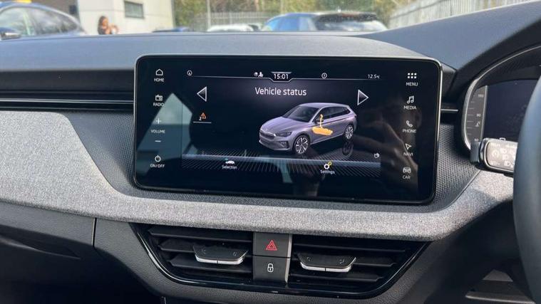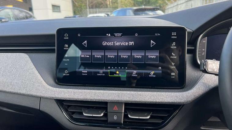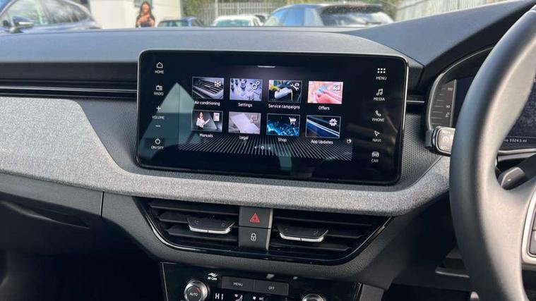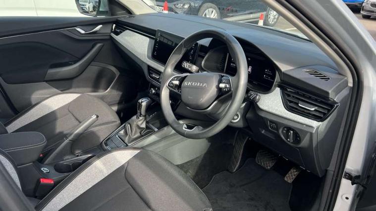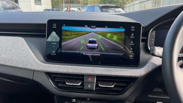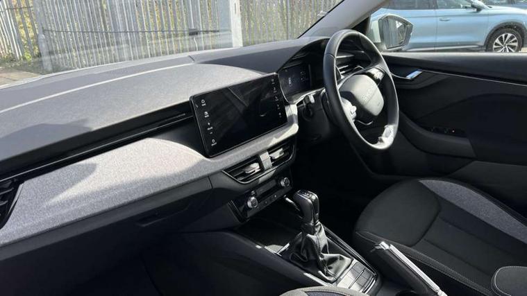 Advanced driver attention and drowsiness monitor, Bluetooth, e-Call (emergency call), Front assist system, PAS, Rear parking sensors, Rear view camera, Speed limiter, Tailgate, Traffic sign recognition, Virtual Cockpit - 10.25" digital display, Voice control system, Wireless smartlink, 4 USB C ports, 8 Speakers, 9.2" Skoda navigation display, DAB radio, Auto dimming rear view mirror, Automatic headlamp activation with Coming home and Leaving home feature, Automatic high/low beam, Body colour bumpers, Body colour door mirrors and handles, Chrome moulding around grille, Front and rear electric windows, Full LED headlights, Heated rear window, LED 3rd brake light, LED brake lights, LED daytime running lights, LED front turning lights, LED high beam, LED low beam, LED taillights, Rear LED fog light, Rear side wing doors, Rear wiper, Tinted windows, Unique dark chrome design logo on alloy wheels, 12V socket in luggage compartment, 3 seat bench in 2nd row, Black / Grey armrest stitching, Black hotstamping, Cargo elements, Chrome inner door handles, Door inserts in satin black, Driver and passenger sun visors with vanity mirror, Dual zone climate control, Front and rear roof lights, Front centre armrest, Front head restraints, Glasses storage in roof liner, Height adjustable driver seat, Height adjustable passenger seat, Ice scraper, Illuminated glove compartment, Inner circulation control with pollen filter, ISOFIX for front passenger seat, Isofix preparation for back seats, Leather gearknob and handbrake lever, Loft cloth upholstery, Luggage net under rear parcel shelf, Manual lumbar support for front seats, Net package and top tether hooks in boot space, Pearl grey ceiling, Pocket on the back of both front seats, incl. mobile phone pockets, Single front passenger seat, Skoda lettering on steering wheel, Textile floor mats, Third rear headrest, Ticket holder, Top tether for front passenger seat, Umbrella in driver's door, 3x3 point rear seatbelts, ABS, Child locks, Curtain airbags and front side airbags, Disc brakes, Driver and front passenger airbags, ESP, Hill hold control, Manual leather parking brake, One tone horn, Passenger airbag switch off function, Seatbelt reminder for driver and front passenger, Tyre pressure monitoring system, Anti theft alarm system with interior monitoring, backup horn and towing protection, Anti-theft wheel bolts, Remote central locking with 2 remote folding keys, SAFE function for remote central locking, Decord pad, door inserts Kota uni,