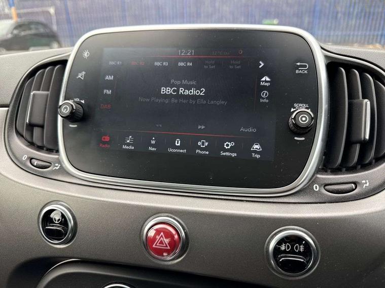 7" HD Touchscreen Radio with 3D Navigation, Bluetooth, USB, and DAB, 7" TFT instrument cluster, Apple car play/Android Auto, Cruise control, External temperature gauge, Power assist steering, Rear parking sensor, Speed limiter, Stop/start system, Trip computer, Rear speakers, Body colour sports bumpers, Chrome exhaust finish, Dark tinted rear windows, Electric front windows, Electrically adjustable satin graphite door mirrors with defrosting / external temperature sensor, Front fog lights, Heat insulated glass, Heated rear windows with wash wipe, LED daytime running lights, Satin Graphite exterior trim, 1 passenger grab handle, 50/50 split folding rear seats with height adjustable rear headrests, Auto climate control, Auxilliary 12V power socket, Chrome entry kick plates, Front headrests, Height adjustable drivers seat, Height adjustable steering wheel, Isofix child seat preparation, Sports seats, Techno leather steering wheel with audio controls, Sports Pack - 500 Rock Star, 7 airbags - Driver, passenger, side, window and drivers knee airbags, ABS/EBD, Curtain airbags, ESC + ASR/MSR + HBA + Hill holder, Manual passenger airbag deactivation function, Traction control, Tyre pressure monitoring system, Automatic door locking, Immobiliser, Locking fuel filler cap, Remote central locking,