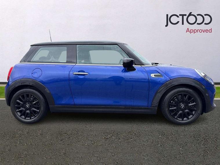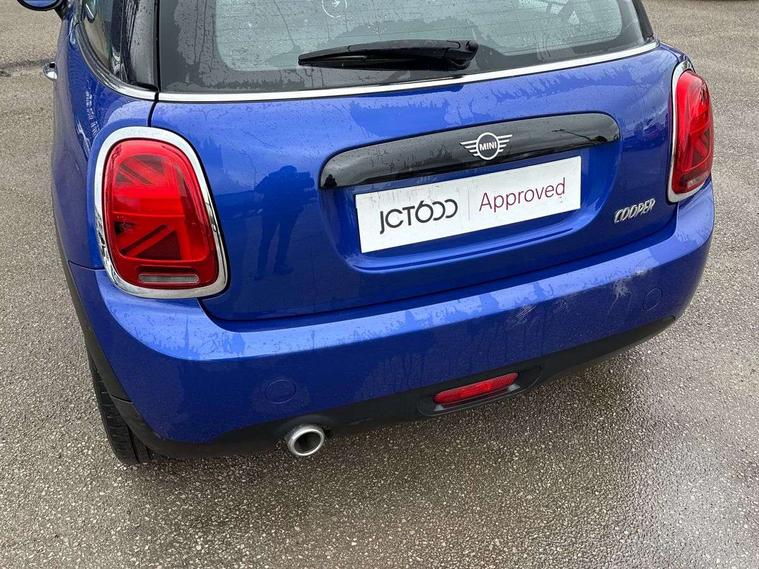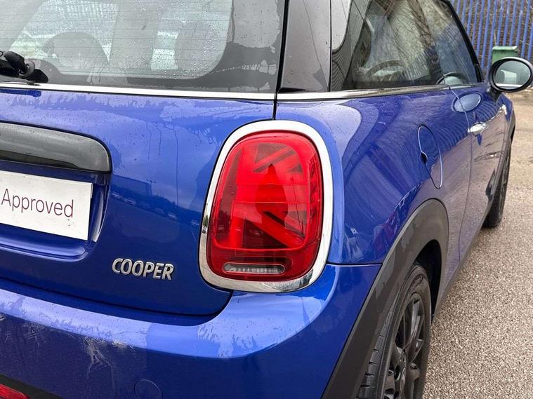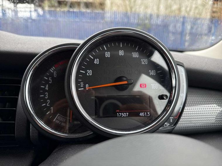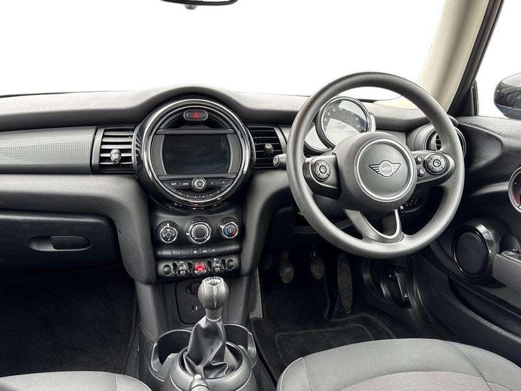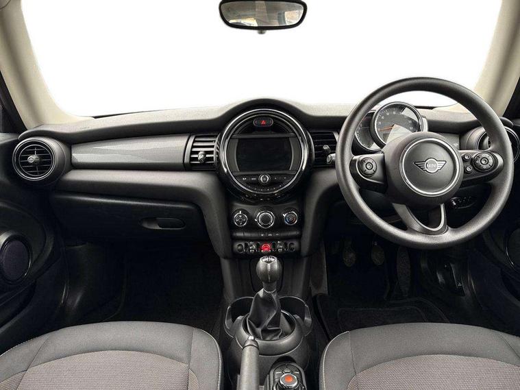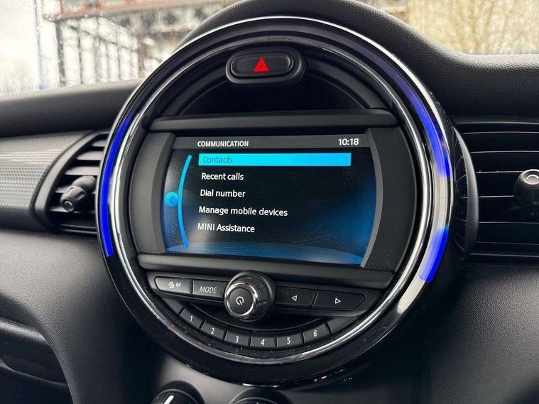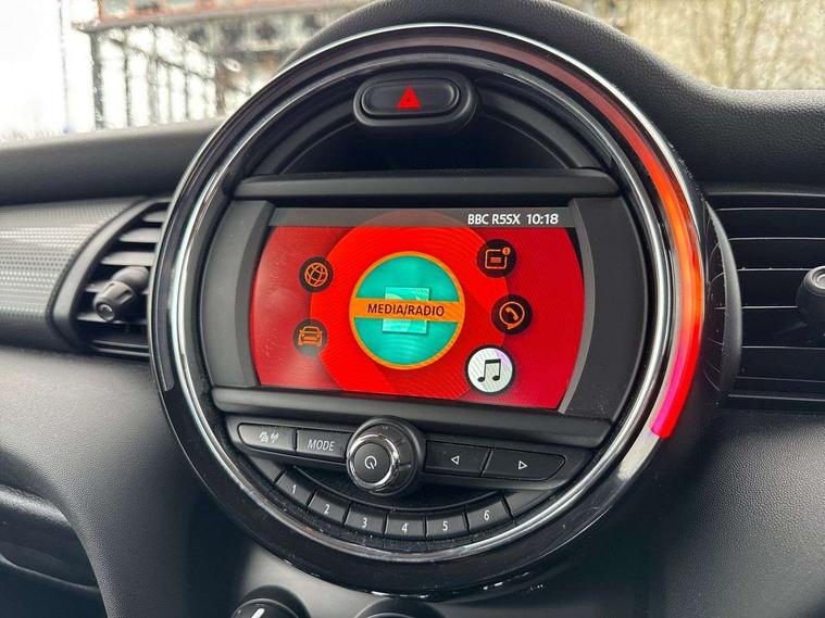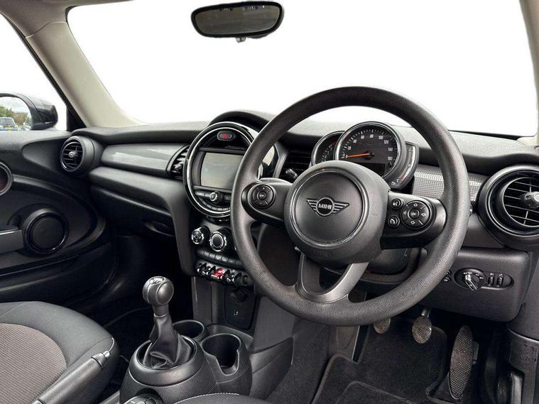 Automatic start/stop function with brake energy recuperation, Compatible mobile phone bluetooth with audio streaming, Electro-mechanical speed dependant steering assistance, Instrument cluster, Mini E-call, MINI TeleServices, On board computer, Service interval indicator, Double Vanos system, Fully variable valve control, High precision injection, 6.5" touchscreen with LED ring, FM tuner and DAB digital radio, Automatic headlight activation switch, Body colour fuel filler cap, Chrome border high gloss black slats radiator grille, Dynamic brake lights, Electric front+rear windows, Heated rear window, Heated windscreen washer jets, LED headlight with closed ring and daytime driving lights, Left exhaust tailpipe with chrome finisher, Metal door sill strips with MINI imprint, Model logo Cooper on right of tailgate, Rain sensor window wipers, Rear fog lights, Rear LED lights with union jack design, Rear window wiper, Side scuttle panel with integrated indicator, Sun/heat protection glass, White indicator lenses, 12V Accessory socket in centre console, 4 lashing eyes in luggage compartment, 60/40 split folding rear seat, Chrome interior highlights, Colour line - Carbon black, Cupholders, Front and rear head restraints, Front and rear isofix with front passenger airbag deactivation, Glove compartment, Height and length steering column adjustment, Interior lighting with 12 basic colours selectable via toggle switch in roof, Leather gearshift lever and handbrake gaiters, LED reading lights, vanity mirror lights, front foot well light and spotlight on front seats, Manual air conditioning, Mechanical seat adjustment, driver seat height adjust, forward/back and front seats backrest, Mini logo projection on floor from drivers exterior mirror, Multifunction steering wheel, Satellite grey headlining, Storage compartments in doors, Sunvisors with vanity mirrors, 3 point seatbelts on all four seats, 6 Airbags - front, side, head and seat belt tensioners, Anti-lock braking system (ABS), DSC - Dynamic Stability Control, Front and rear disc brakes, Hill start assist, Single tone fanfare horn, Tyre pressure monitoring system, Alarm system with tilt sensor, monitoring doors, bonnet interior and tailgate, Electronic vehicle immobiliser, Start/stop toggle with keyless go, Tool kit,