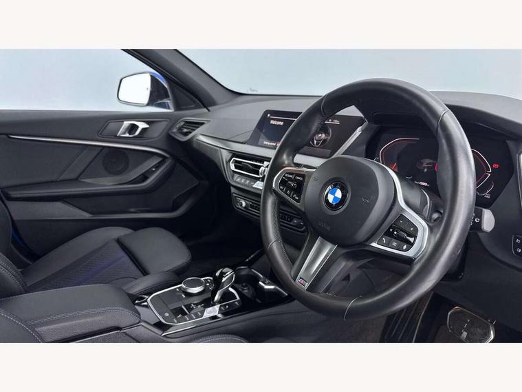 Active guard plus, Attentiveness assist, BMW ConnectedDrive online services, BMW Teleservices, Check Control warning system for monitoring of lights and door/luggage compartment open warning, Cruise control with speed limiter, Eco pro mode, Front axle single joint with specific axle kinematics to minimise drive influences on steering + provide increased rigidity agile driving behaviour, Integrated owners handbook, Lane departure warning system, Oil sensor for level and grade, On board computer, Optimum shift indicator, Personal Profile, Pull away assistant, Rigidly mounted rear subframe - Multi link construction with separate spring / damper configuration and excellent driving characteristics, Speed limit Info including no-overtaking indicator, Aluminium lightweight construction, Anti roll bar front and rear, Balancer shaft, Double VANOS twin scroll turbocharging system, Drive Performance Control, Electronic differential lock, High precision injection, M sport suspension, Petrol Particulate Filter, Twin tube gas filled shock absorbers with degressive characteristic curve, VALVETRONIC engine management, DAB Digital radio, Auto dimming rear view mirror, Automatic headlight beam throw control, Automatic windscreen wipers and automatic headlight, Body colour door handles, Body colour mirror caps, Body colour roof trims, Chrome 'M' logo side designation, Chrome exhaust twin tailpipes round 90mm in left, Chrome kidney grille frame with Satin Aluminium struts, Direction indicator side lights in exterior mirrors, Electrically adjustable exterior mirror with mirror adjustment switch on drivers armrest and aspheric on driver side, convex on passenger side, Fading support, Folding side mirrors with auto dimming/folding wing mirrors with auto dimming, Follow me home headlights, Front and rear bumper system with replaceable deformation elements, Front and rear electric windows with open and close fingertip control, anti trap facility and comfort closing, Front door sill finishers in black plastic with M designation in metallic look, Green tinted heat protection glazing, High gloss shadowline window frame, Recess cover mirror frames and B/C pillar embelisher trim, High level third brake light, Integrated front windscreen with washer jets, LED daytime running lights, LED eyebrow turn indicators, LED front fog lights, Lightweight engineering, Matt black air guide grilles, Matt black wheel arch trim, Model designation on electric bootlid, Nearside reverse light in rear light cluster, Preparation for high beam assistant, Rear fog lights, Rear side wing doors, Rear window wiper, Shark fin antenna, Trailer stabilisation logic, Visible VIN plate, Welcome lighting, 12V power socket in front centre console with blanking plug, 3 rear seat head restraints, 3 seat bench in 2nd row, 3 spoke sports leather steering wheel with black leather and stitching, pearl chrome decorative finish, specific M Badge, Anthracite headlining, Black boot net with lashing eyes, Cargo function on 2nd seat row, Child seat ISOFIX attachment for two outer rear seats and front passenger seat with anchorage points, Conditioned based service, Driver and front passenger backrest net on rear, Driver and front passenger seat heating, Driver side folding compartment in instrument panel, Folding rear clothes hook, Four grab handles integrated in roof lining, Front and rear door pockets with bottle holders, Front and rear side armrest integrated into door trim, Front armrest, Front sports seats, Glove compartment, Height adjustable front head restraints, Luggage compartment for bag hooks on left and right, foldable luggage compartment liner and four lashing eyelets, Manual adjust steering wheel, Multi-function controls for steering wheel, Single front passenger seat, Storage compartment in centre console, Storage compartment in luggage compartment, Stowage of the parcel shelf in luggage compartment trim, Sun visors with vanity mirrors and insert tab, Two front centre console cupholders, Two zone automatic air conditioning, Type C two USB ports in rear centre console, Velour floor mats, Additional interior lighting pack - 1 Series, BMW live cockpit professional pack- 1 Series, Connected pack professional - 1 Series, Interior lights pack - 1 Series, M Sport exterior styling aerodynamics pack - 1 Series, 2 tone horn, 3 point seatbelts on all seats, front pyrotechnic belt tensioners, stopper and belt force limiters, rear coded belt buckles, Airbags - Front driver/passenger, front and rear curtain head protection, front side, manual deactivation of front passenger airbag, Anti lock braking system (ABS) with brake assist, BMW emergency call, Brake drying, Braking readiness, Child proof locking system in rear door, City braking function, Comfort modes, Cornering brake control, Crash sensor activating of airbags, Unlocking doors, hazard warning lights, interior light, safety battery terminal, Driver and front passenger seat belt security check, Dynamic stability control + (DSC+), Dynamic Traction Control - DTC, Electrically operated hand brake including automatic hold function, Front and rear disc brakes, Seatbelt warning, Side impact protection, Tyre pressure monitoring system, Warning triangle and first aid kit, Central locking switch for all doors, fuel filler cap and luggage compartment, Deadlocking function system to all doors, Drive away locking system on all doors and luggage compartment with de-activated in iDrive settings, Locking wheel bolts, Remote control with integrated key with High-gloss Black inlay and M designation and 1 button for open/ close lock, window, open luggage compartment, Start/stop button illuminated in centre console with keyless engine start and auto start stop deactivation button, Thatcham Cat.1 alarm and immobiliser, Wheel slip limitation close to the actuator (ARB), Contrast stitching on instrument panel, 18" Burnished M double spoke bi-colour alloy wheels finished in orbit grey - style 819M, Electrically powered 12V com