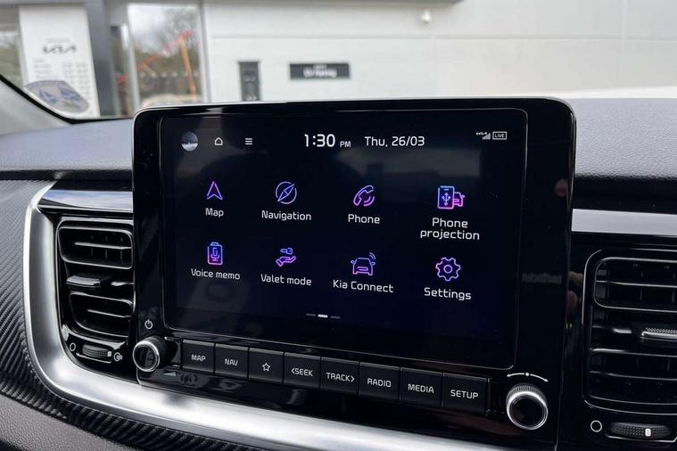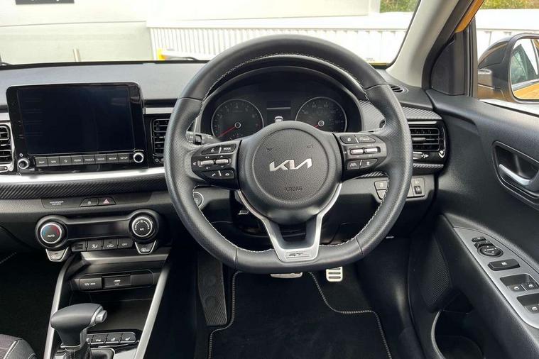 4.2" supervision colour cluster display, 8" touchscreen navigation, Apple car play/Android Auto with voice control, Blind spot collision avoidance assist, Blind spot collision warning, Drive mode selector, Electric power steering, Emergency call service, Emergency stop signalling system, External temperature display, Forward Collision-Avoidance Assist (FCA) - City/Pedestrian/Cyclist, Front parking sensors, Intelligent speed limit warning, Lane keeping assist system (LKAS), Driver attention warning (DAW) and High beam assist (HBA), Rear parking sensor, Reversing camera system, Smart cruise control, Trip computer, Intelligent Stop and Go, Audio system with 6 speakers, Bluetooth with music streaming, Front USB port, Steering wheel mounted controls, All round electric windows with drivers auto up/down function, Auto dimming rear view mirror, Automatic defog system, Automatic headlights control, Black rear roof spoiler with high mounted LED braking light, Black side sill, door garnish and wheel arch trims, Black/body colour bumpers, Body coloured exterior door handles, Chrome side window trim, Electrically adjustable/heated/folding door mirrors with LED indicators, Front and rear silver skid plates, Gloss black door mirrors with matt black lower housing, GT-Line body kit, Headlight levelling device, Heated rear window, High gloss black and satin radiator grille, LED Bi-function projection headlights with static bending, LED daytime running lights, LED front fog lights, LED position light, LED rear combination lights, Privacy glass - Rear windows and tailgate, Rain sensing front wipers, Rear fog lights, Rear side wing doors, Rear wash/wipe, Roof rails, Shark fin antenna, Solar windshield glass, Speed variable front aeroblade wipers, Tinted glass, Welcome and follow-me home light functionality, Windscreen Washer Level Warning, 12V power point front, 3 seat bench in 2nd row, 60/40 split folding rear seat, Air filter, All-round height adjustable headrests, Aluminium pedals, Automatic air conditioning, Centre armrest storage box, Centre console with cupholders, D-Cut perforated leather trimmed steering wheel, Dash illumination dimmer switch, Driver's seat height adjuster, Front and centre cabin lights, Front and rear door map pockets with bottle holder, Gear shift indicator, Glovebox illumination, GT-Line cloth/faux leather upholstery, Heated front seats, Heated steering wheel, ISOFIX Child seat top tethers and anchor fixings outer rear seats, Leather trimmed gearshift, Luggage area light, Luggage area parcel shelf, Luggage net, Luggage net with hooks, Overhead console lamp, Overhead console with sunglasses cases, Passenger front seatback pockets, Passenger seat height adjuster, Rear USB charging port, Satin chrome interior door handles, Single front passenger seat, Sunvisors with vanity mirror illumination (Driver and front passenger), Tilt/telescopic adjustable steering wheel, ABS with Electronic Brakeforce Distribution (EBD) and Brake Assist System (BAS), All round 3-point seatbelts, Electronic stability control (ESC) and vehicle stability management (VSM), Front passenger airbag cut-off switch, Front seatbelt pretensioners + load limiters, Height adjustable front seatbelts, Hill start assist control (HAC), Impact sensing auto door unlocking, Manual child lock in rear doors, Rear seat Occupancy alert, Seatbelt reminder warning, Twin curtain airbags, Twin front airbags, Twin front side airbags, Tyre pressure monitoring system, Alarm system, Door deadlocks, Engine immobiliser, Locking wheel nuts, Smart key with engine start/stop button, Speed sensitive auto door locking, Visible vehicle identification number, High gloss black centre fascia, 17" GT-Line alloy wheels, Tyre mobility kit,