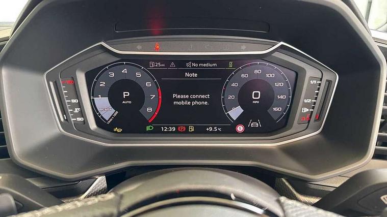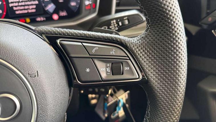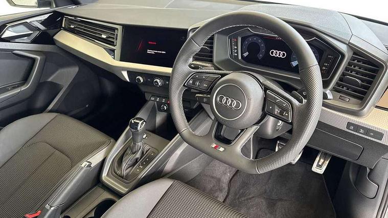 10.25" Digital instrument cluster display classis style instrument dials + speed, odometer, time, outside temperature, telephone menu + fuel level warning, Advanced driver attention and drowsiness monitor, Audi connect emergency call and service, Audi drive select, Audi remote connect and control, Bluetooth interface, Camera based traffic sign recognition, Cruise control, Driver's information system, Electromechanical power steering, Lane departure warning system, Rear parking sensor, Service interval indicator, Smartphone interface, Speed limiter, Start stop system with recuperation, Voice control system, Washer fluid level indicator, Sports suspension, 2 x USB type C connection points, 6 loudspeakers, DAB Digital radio, MMI radio plus with 10.1" colour MMI display screen and MMI touch, Auto dimming rear view mirror, Black door mirror housings, Black side skirts, Body coloured bumpers, Door sill trims with aluminium inlays and logo, Electric front and rear windows, Electrically adjustable, heated, folding door mirrors with integrated LED side indicator, Front side air inlets in grained matt black and C frame in anthracite black, Front wing badges, Headlight cleaning system, Heat insulating glass windscreen and side windows, Heated rear windscreen, High level LED brake light, LED daytime running lights, LED headlights with range control LED rear lights + dynamic rear indicators, Light and rain sensors, Privacy glass, Radiator grille and rear diffuser in matt anthracite black, Radiator protective grille frame in matt aluminium silver, Rear fog lights, Rear side wing doors, Rear wiper, Side front spoiler lips in grained matt black, 12V socket in centre console with two cup holders, 3 rear seats with headrests, 3 seat bench in 2nd row, 3 spoke flat bottomed multi-function plus leather steering wheel with S badging, grips in preforated leather, contrast stitching and paddle shift, 40:60 Split folding rear seat or fully collapsed, Black carpets, Black cloth headlining, Front and rear velour black floor mats with contrast stitching in fine silver, Front head restraints, Front passenger seat, Height and reach adjustable steering wheel, Interior lighting includes roof module, front and rear reading lights and right luggage compartment lighting, ISOFIX child seat mounting for front passenger and outer rear seats including top tether attachment point of outer rear seats, Leather gear knob with aluminium trim, Leather handbrake grip, Manual air conditioning, Manual height adjustable for driver and front passenger seat, Manually adjustable lumbar support in front seats, Stainless steel pedals, Ambient lighting package - A1, Black styling pack - A1 Sportback Black Edition, Luggage compartment pack - A1, 3x3 point rear seatbelts, Audi pre-sense front with pedestrain and cyclist recognition, Brake assist function, Driver and front passenger airbag with front side and head airbags, Electronic Stability Control including ABS, EBD, ASR and EDL, Front passenger airbag deactivation switch, Hill hold assist, Manual rear child locks, Seatbelt height adjustment for front seats, Seatbelt monitoring, Tyre pressure loss indicator, Warning triangle and first aid kit, Anti theft alarm, Anti theft wheel bolts, Immobiliser, Remote control key with safelock, Aluminium trim for control switches, air vents and digital instrument cluster, Black dashboard, Silver grey inlays polygon structure in diamond paint finish, Structured grey accent surfaces insert of air vents, interior door handle recesses and centre console in quartz paint finish,
