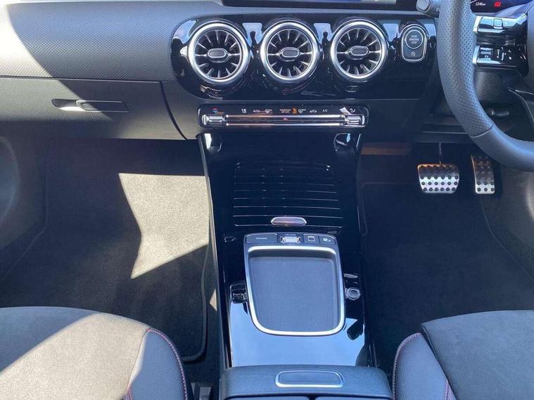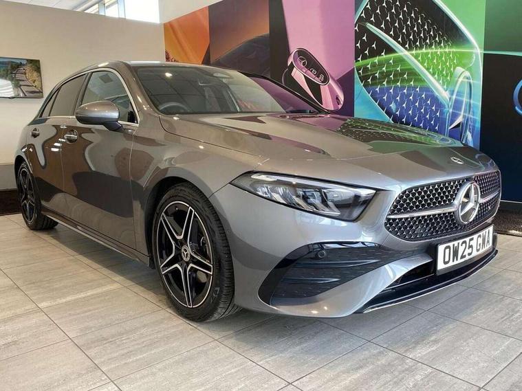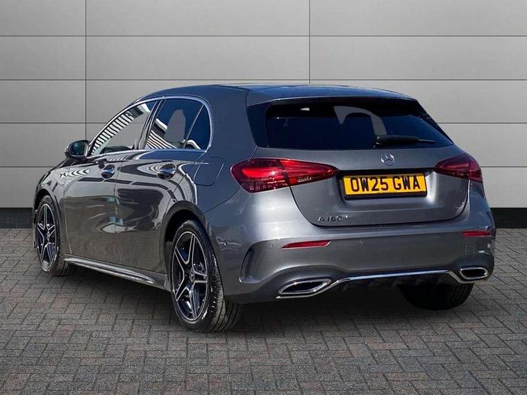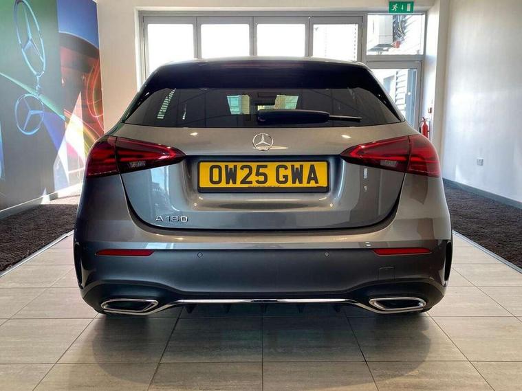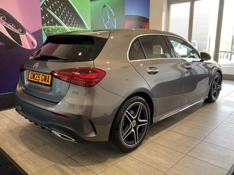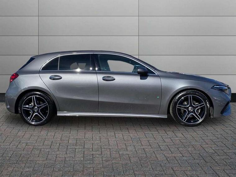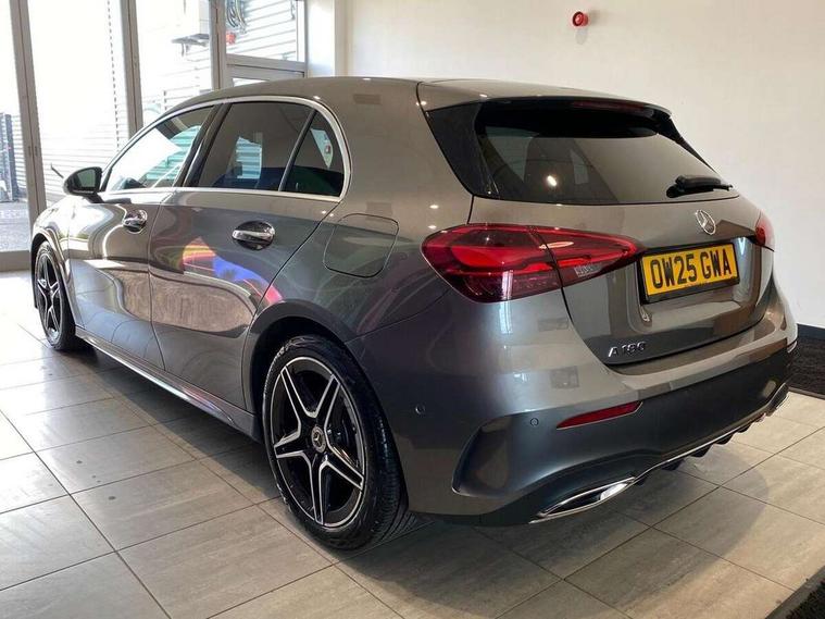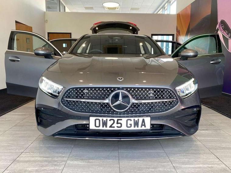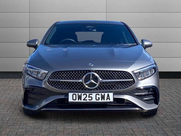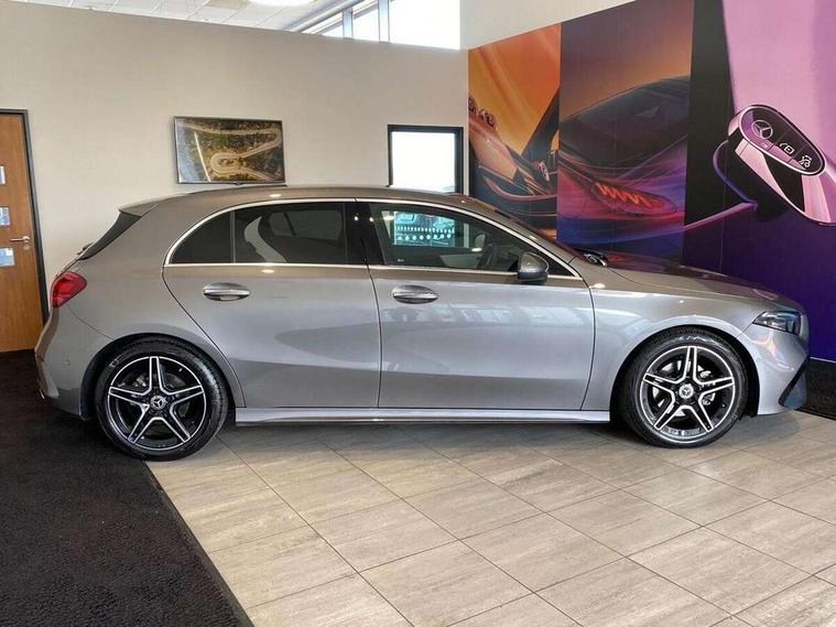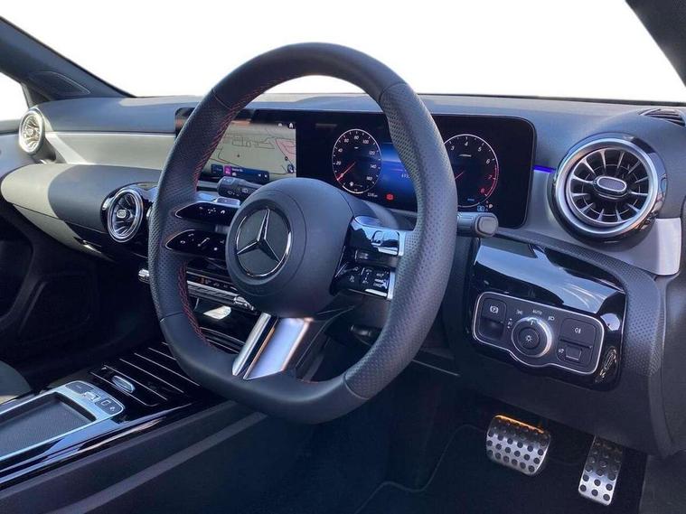 10.25 inch touchscreen central media display, 10.25" Digital instrument cluster display screen, Attention assist, Blind spot assist, Brake pad wear indicator warning light, Car wash mode, Cruise control + speed limiter, Direct steering, Direction indicators with lane change function, Dual bluetooth interfaces, DYNAMIC SELECT with a choice of driving modes (ECO, Comfort, Sport and Individual), ECO start/stop function, Engine start/stop button, Fluid level warning indicator for fuel, oil, coolant and washer fluid, Fluorescent jacket for driver, Hard-disk navigation, Hey Mercedes Voice activation, Lamp failure indicator, Lane keeping system, Mercedes me connect including emergency call system, accident recovery, breakdown and maintenance management, Mercedes me remote services, Outside temperature gauge, Owners manual in English, Pre-installation of private car share, Remote boot closing, Service indicator (ASSYST), Smartphone integration with Apple CarPlay and Android auto, Speed limit assist, Speed sensitive power steering, Tailgate, Trip computer in multifunction display with current consumption indicator, Wireless charging, Lowered comfort suspension, DAB Digital radio, MBUX multimedia system, Mercedes Benz sound system (100 W) with 6 speakers, 4 Electric Front and Rear windows, Adaptive brake lights, AMG body styling - AMG front apron with front splitter and AMG rear apron and visible exhaust tailpipe trim elements, Body colour bumpers, Body colour door handles with chrome inserts, Body colour side skirt, Chrome beltline strips, Diamond radiator grille with pins in fine star pattern, Electric adjustable and heated door mirrors with integrated LED side indicators, Exhaust system with 2 visible tailpipe trim elements and rear apron, Headlamp assist automatic headlamp activation, Heated glass rear windscreen + timer control, LED High level third brake light, LED High Performance headlamps including integral LED daytime running lamps and adaptive highbeam assist, LED tail lamp, Privacy glass, Radio aerial, Rain sensing windscreen wipers with two sensitivity settings, Rear fog lights, Rear side wing doors, Rear windscreen wiper, Window line trim strip in chrome, 3 seat bench in 2nd row, 3 Spoke flat bottom leather multi function steering wheel with perforated leather in grip area, 4 way lumbar support, 40:20:40 split folding rear seats, Air conditioning - One zone THERMATIC automatic climate control with automatically controlled air distribution, AMG floor mats, Artico man-made leather/Microcut microfibre upholstery, Automatic child seat recognition sensor, Black air vents with surround in silver chrome, Black roof lining, Brushed stainless steel sports pedals with rubber studs, Front centre armrest with stowage, Front door sills with Mercedes Benz lettering, Front seat backs luggage nets, Galvanished gear shift paddles on steering wheel, Heated front seats, Height/reach adjustable steering column, Interior lighting - 64 colour Ambient lighting, Interior mirror with reading lamps in black and frameless, Rear armrest with 2 cupholders, Rear head restraints, Seat occupancy sensor for front passenger seat, Single front passenger seat, Sports seats with integrated headrests, Stowage compartment in centre console with retractable cover, Sunvisors with illuminated vanity mirrors, Twin front cupholders, Light and sight package - A Class, Mirror package - A Class, Parking pack with 180 degree view - A Class, Seat comfort pack - A Class, USB pack plus - A Class, 3 rear 3 point seatbelts, ABS with Brake Assist, Active bonnet, Active brake assist includes forward collision warning system with autonomous braking, Adaptive brake assist with hold function and hill start assist, Bonnet with power domes, Childproof locks manually operated for rear doors and electrically operated for rear power windows, Crash responsive emergency lighting, Driver and passenger head and side airbags, Drivers knee airbag, Dual stage driver/passenger airbags, Electronic parking brake, ESP curve dynamic assist, ESP with ASR, Front and rear seatbelt reminder, ISOFIX and top tether child seat fixing points in two outer rear seats, Tyre pressure monitoring system, Warning triangle and first aid kit, Window airbags, Alarm system/interior protection/immobiliser, Guard 360 degree vehicle protection, Keyless entry lock/unlock, Keyless Go, Remote central locking and crash sensor with emergency opening function, Black seatbelts, Light longitudinal grain aluminium trim, 18" AMG 5 twin spoke light alloy wheels, aerodynamically optimised, painted in black with high sheen finish, Summer tyres, Tirefit sealant kit,