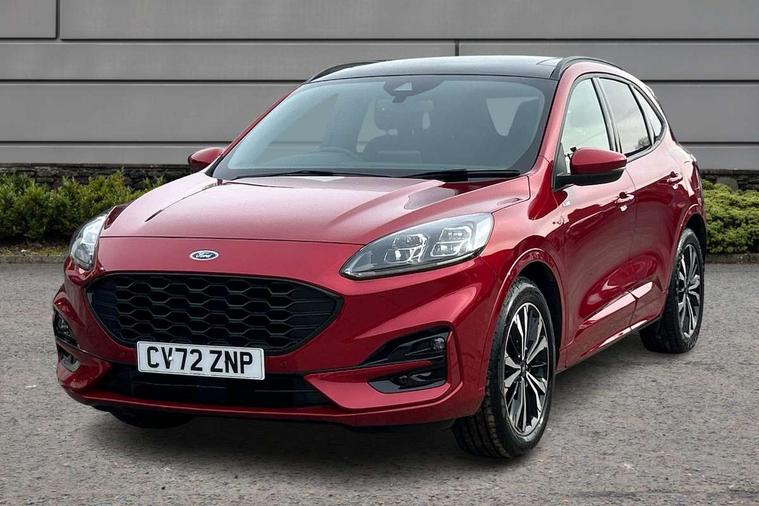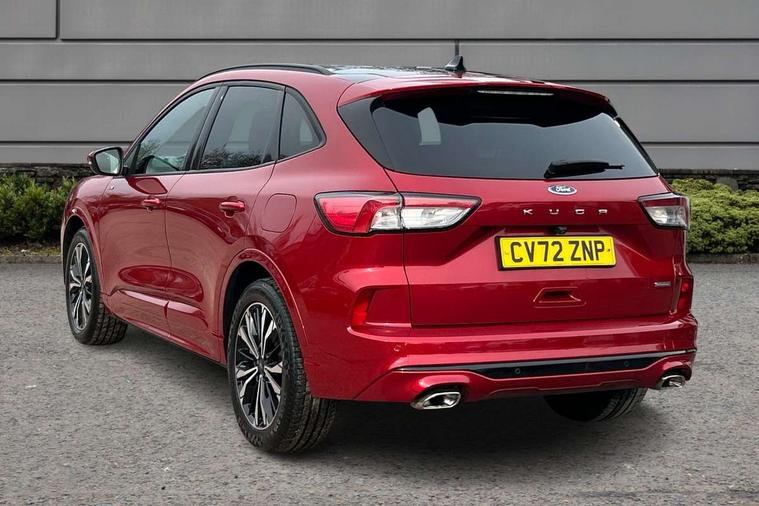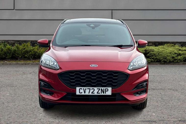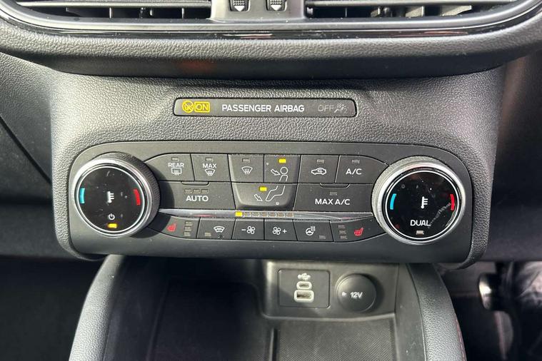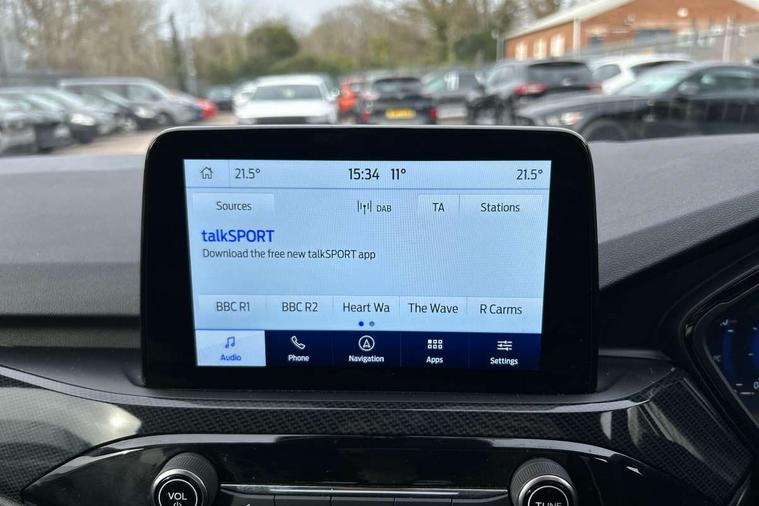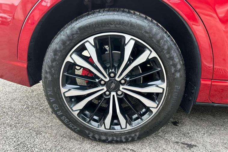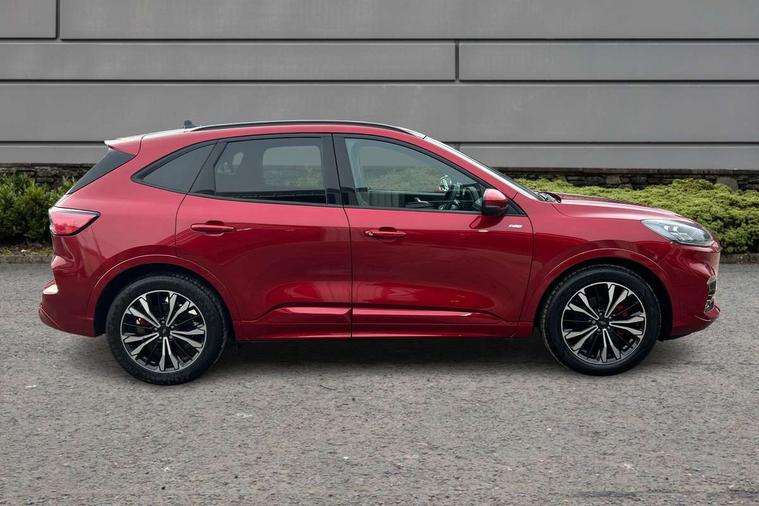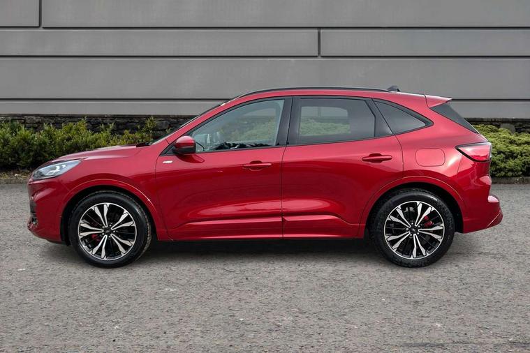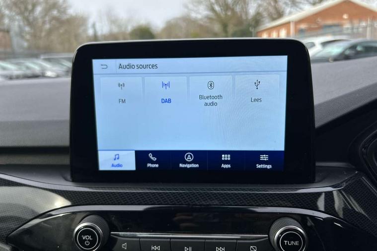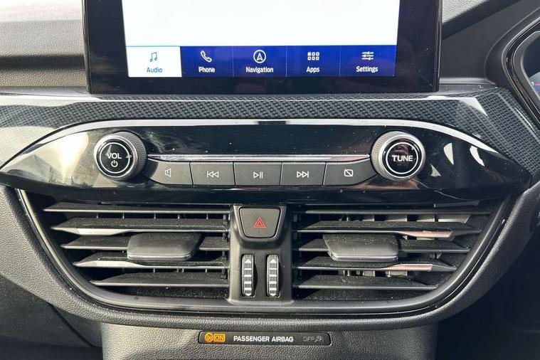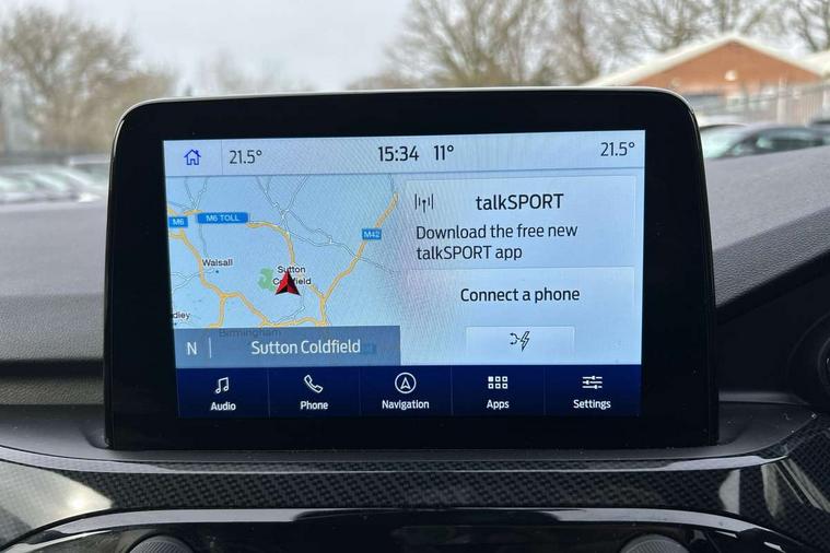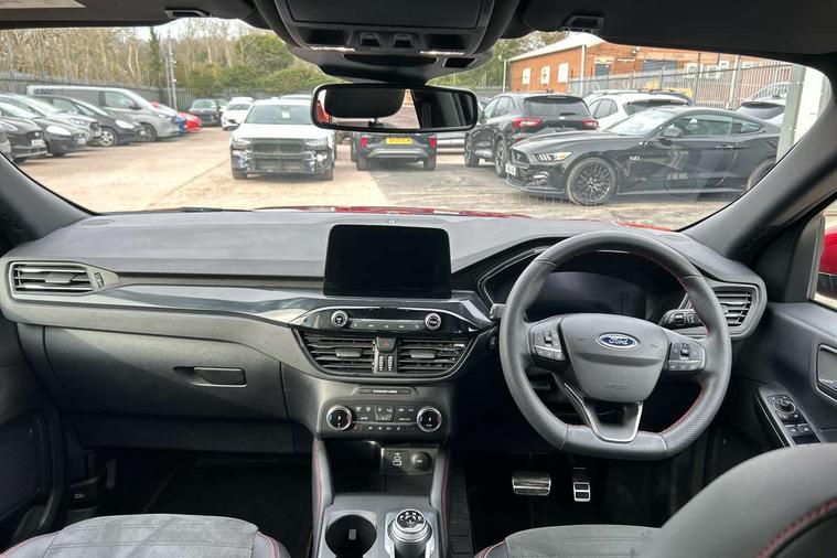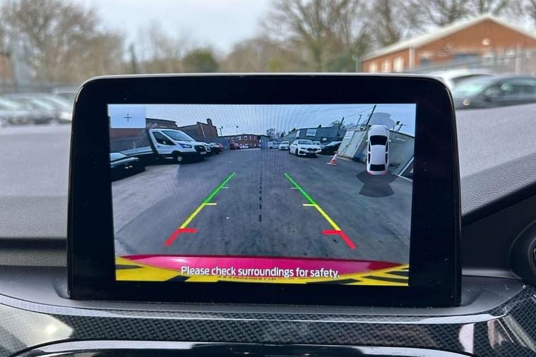 12.3" digital colour instrument cluster, Ford easy fuel, Ford SYNC 3 with 8" TFT LCD touchscreen, App Link, andriod auto/apple carPlay, emergency assistance and navigation with Ford pass connect, Front and rear parking sensors, Hands free power tailgate, Lane keeping aid with lane departure warning, Power assist steering, Rear view camera, Selectable drive modes, Service interval indicator, Sports suspension, Twist beam rear suspension, B&O premium audio system with 10 speakers and subwoofer, 2 USB ports, DAB radio/CD, Auto headlamps with high and low beam, Black roof rails, Day/night rear view mirror, Front LED fog lamps, Large rear spoiler, LED daytime running lights, LED rear lights, Power folding heated door mirrors with puddle lights, Power front/rear windows with global close, Power opening panoramic roof, Privacy glass, Quickclear heated windscreen, Rear side wing doors, Rear wiper, ST Line body styling kit with unique front and rear fascia and bumper, rear painted diffuser, front painted skid plates, dark mesh upper grille, ST Line front scuff plates, Third brake light, Twin exhausts, 10 way power adjustable drivers seat, 2nd row sliding seats with 60:40 split, 8 way manual passenger seat including lumbar support and height adjust, Alloy pedals, Centre console with electronic parking brake, Dark headlining and pillars, Electronic automatic temperature control (EATC), Flat bottomed leather steering wheel in sensico with red stitching, Front and rear head restraints, Heated passenger and driver seats, Heated rear seats, Heated steering wheel, Partial premium touch sensico leather upholstery with black cloth inserts and red stitching, Rear charging point, Single front passenger seat, Sports seats, ST Line front and rear floor mats, 3x3 point rear seatbelts, Airbags - front driver/passenger, front and rear curtain, Drivers knee airbag, Electronic stability control (ESC) and ABS, Ford MyKey Gen 2 safety system, Manual child proof rear door locks, Post collision braking, Pre collision assist with autonomous emergency braking, Rear seat Occupancy alert, Red brake calipers, Tyre pressure monitoring system, Engine immobiliser, Keyless entry and Ford power start button (Keyless start), Locking wheel nuts, Remote powered central double locking doors, Thatcham category 1 alarm,