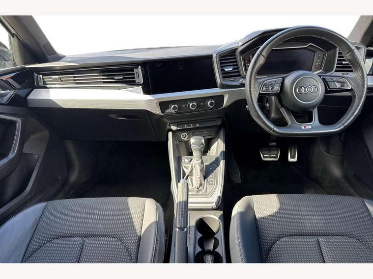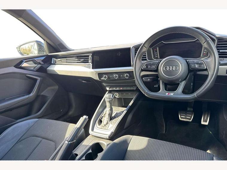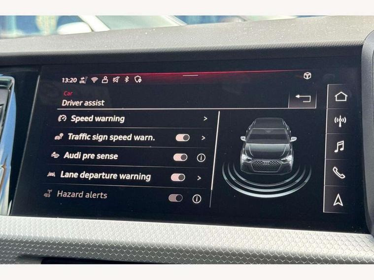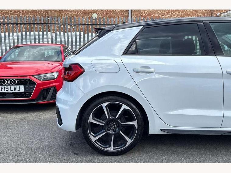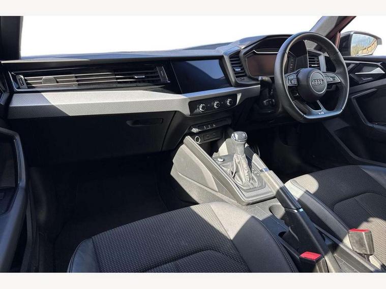 10.25" Digital instrument cluster display classis style instrument dials + speed, odometer, time, outside temperature, telephone menu + fuel level warning, Advanced driver attention and drowsiness monitor, Audi connect emergency call and service, Audi remote connect and control, Audi smartphone interface, Bluetooth interface, Camera based traffic sign recognition, Cruise control, Driver's information system, Electromechanical power steering, Lane departure warning system, Rear parking sensor, Service interval indicator, Speed limiter, Start stop system with recuperation, Voice control system, Washer fluid level indicator, Sports suspension, 2 x USB type C connection points, 6 loudspeakers, DAB Digital radio, MMI radio plus with 10.1" colour MMI display screen and MMI touch, Auto dimming rear view mirror, Black side skirts, Body coloured bumpers, Door sill trims with aluminium inlays and logo, Electric front and rear windows, Electrically adjustable, heated, folding door mirrors with integrated LED side indicator, Front side air inlets in grained matt black and C frame in anthracite black, Front wing badges, Headlight cleaning system, Heat insulating glass windscreen and side windows, Heated rear windscreen, High level LED brake light, LED daytime running lights, LED headlights with range control LED rear lights + dynamic rear indicators, Privacy glass, Radiator grille and rear diffuser in matt anthracite black, Radiator protective grille frame in matt aluminium silver, Rain and light sensors, Rear fog lights, Rear side wing doors, Rear wiper, Side front spoiler lips in grained matt black, 12V socket in centre console with two cup holders, 3 rear seats with headrests, 3 seat bench in 2nd row, 3 spoke flat bottomed multi-function plus leather steering wheel with S badging, grips in preforated leather, contrast stitching and paddle shift, 40:60 Split folding rear seat or fully collapsed, Black cloth headlining, Front and rear velour black floor mats with contrast stitching in fine silver, Front head restraints, Front passenger seat, Height and reach adjustable steering wheel, Interior lighting includes roof module, front and rear reading lights and right luggage compartment lighting, ISOFIX child seat mounting for front passenger and outer rear seats including top tether attachment point of outer rear seats, Leather gear knob with aluminium trim, Leather handbrake grip, Manual air conditioning, Manual height adjustable for driver and front passenger seat, Manually adjustable lumbar support in front seats, Stainless steel pedals, Ambient lighting package - A1, Black styling pack - A1 Sportback Black Edition, Luggage compartment pack - A1, 3x3 point rear seatbelts, Audi pre-sense front with pedestrain and cyclist recognition, Brake assist function, Driver and front passenger airbag with front side and head airbags, Electronic Stability Control including ABS, EBD, ASR and EDL, Front passenger airbag deactivation switch, Hill hold assist, Manual rear child locks, Seatbelt height adjustment for front seats, Seatbelt monitoring, Tyre pressure loss indicator, Warning triangle and first aid kit, Anti theft alarm, Anti theft wheel bolts, Immobiliser, Remote control key with safelock, Aluminium trim for control switches, air vents and digital instrument cluster, Black dashboard, Silver grey inlays polygon structure in diamond paint finish, Structured grey accent surfaces insert of air vents, interior door handle recesses and centre console in quartz paint finish,