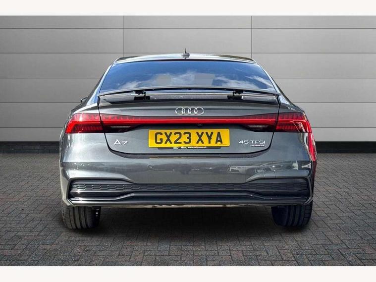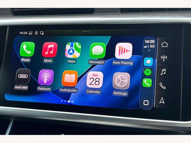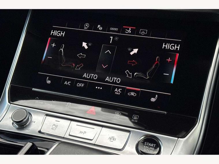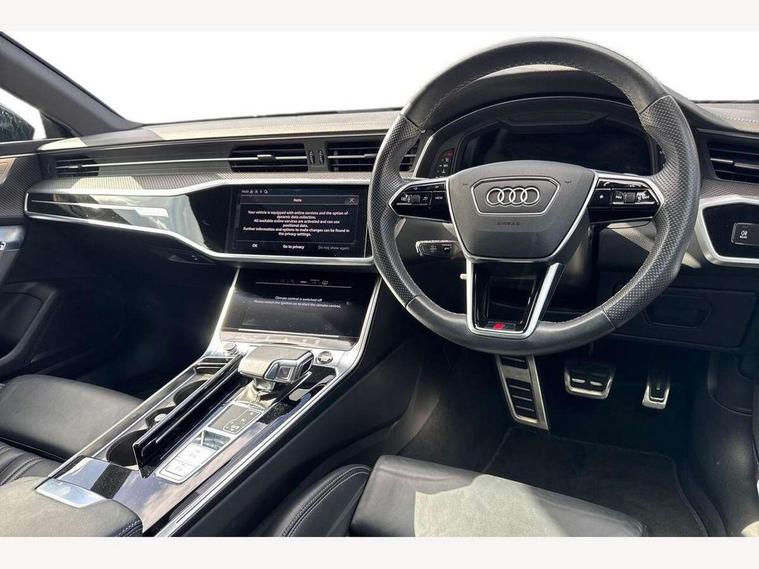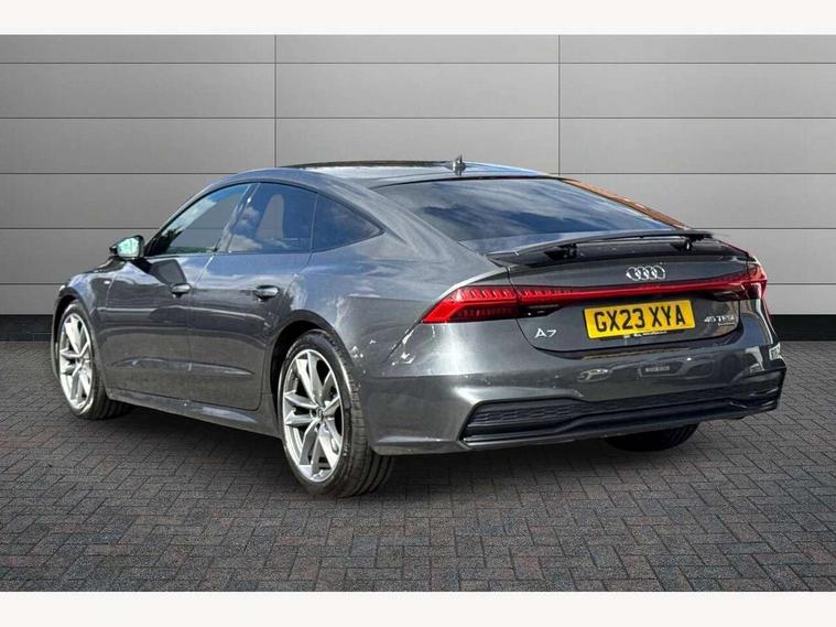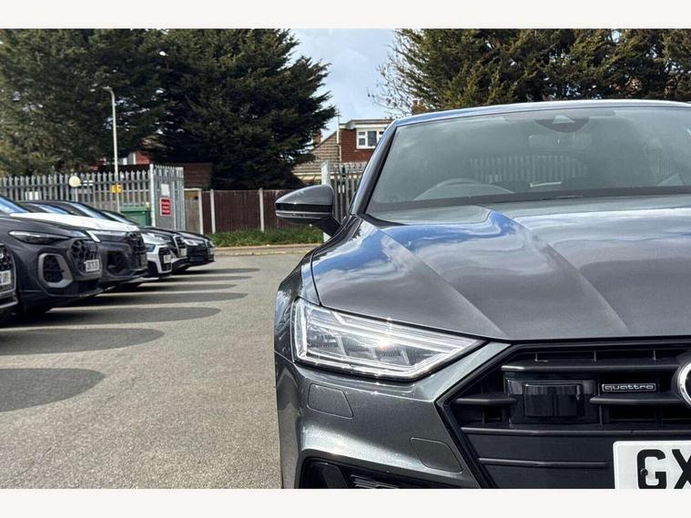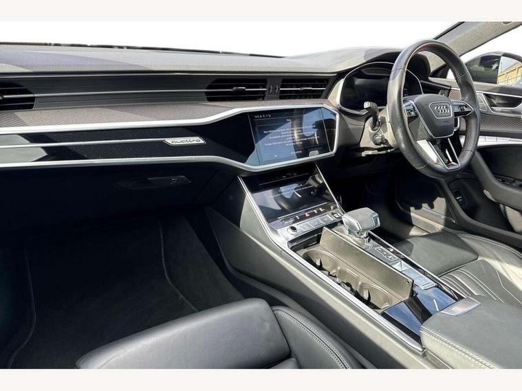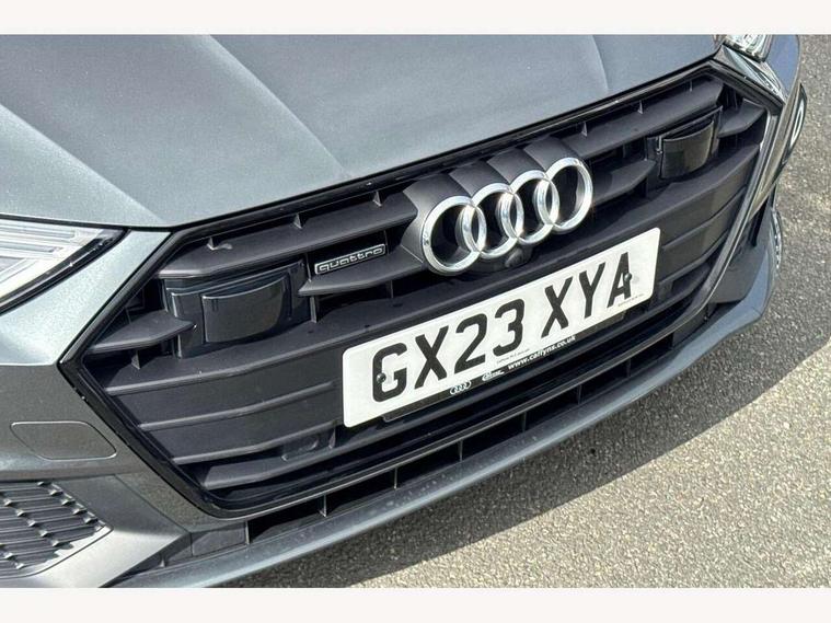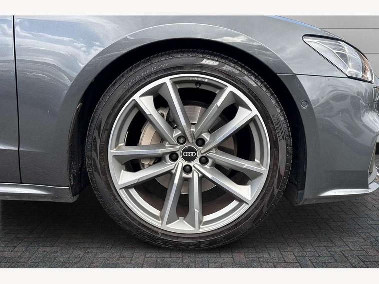 Audi connect safety and service (e-call), Audi connect with Amazon Alexa Integration, Audi drive select, Audi parking system plus - acoustic and visual park assist system for front and rear, Audi smartphone interface, Audi virtual cockpit - 12.3" high resolution LCD digital instrument cluster display, Automatic start/stop system with coasting functionality, Bluetooth interface, Colour driver's information system display, Electric boot lid release, Lane departure warning system, MMI nav plus with MMI touch + 10.1" and 8.6" HD haptic touch screen/3D city models/country information/online map/route info and personal route assist, Operating buttons in black, glass look with haptic feedback, Power operated tailgate, Progressive steering, Rear view camera, Service indicator, Voice control system, Sports suspension, Audi music interface - 2 USB ports with charger and data functions, Audi sound system with 6 channel amplifier, 180 watt amplifying capacity and 10 loudspeakers including subwoofer, Auxiliary input socket, DAB digital radio module, Coming/leaving home animations in front and rear, Frameless auto dimming interior rear view mirror, Front and rear electric windows, Gloss black highlights on the exterior area of the Audi Single frame, Gloss black highlights on the front and rear bumpers, Gloss black highlights on the radiator grille, Gloss black highlights on the side windows trim strips, HD Matrix LED headlights with dynamic front and rear indicators, Headlight washers, Heat insulating glass in side and rear windows, Rain and light sensors, Rear side wing doors, Rear wiper, Retractable rear spoiler, S line air inlet design with inlay in high gloss black, S Line badge on front fender, S line badge on front grille, S Line Black rear diffuser with chrome inlays and rear grille, S Line side skirts, Signature LED daytime running lights, Third brake light, Towbar preparation, Windscreen with heat-insulating glass, 2 zone deluxe electronic climate control, 4-way electric lumbar support, 40/20/40 split folding 3 seater rear seat bench with rear centre armrest, Black cloth headlining, Electrically adjustable front seats - driver seat with memory, Front and rear headrests, Front centre armrest, Heated front seats, Height/reach adjust steering wheel, Illuminated door sill trims with S logo, Illuminated sun visors with vanity mirrors, ISOFIX child seat mounting and top tether in front and outer rear seats with front passenger airbag deactivation, Leather gear knob, Leatherette upper instrument panel and door shoulders, Luggage compartment floor, S line front and rear floor mats with contrast stitching, Single front passenger seat, Stainless steel pedals and foot rest, Tool kit and car jack, LED interior ambient lighting pack - A7, Non smoking pack - A7, 3 point seatbelts on all seats, Audi pre-sense front, Driver and passenger airbags, Electromechanical parking brake, Electronic stabilisation control including ABS, ASR and EDL, Extended pedestrian protection measures, Hill hold assist, Manual child lock in rear doors, Seatbelt monitoring, Tyre pressure warning light, Warning triangle and first aid kit, Anti theft alarm with tow away protection, Anti-theft wheel bolts and wheel loosening detection, Immobiliser, Keyless Go, Preparation for tracking system, Remote central locking, Carbon twill inlays, 20" 5 double arm design Audi sport cast aluminium high sheen matt grey look alloy wheels,