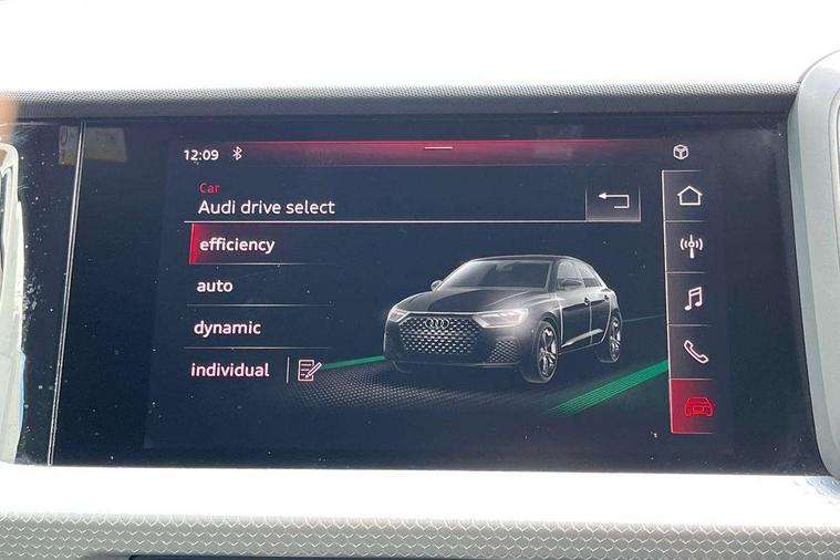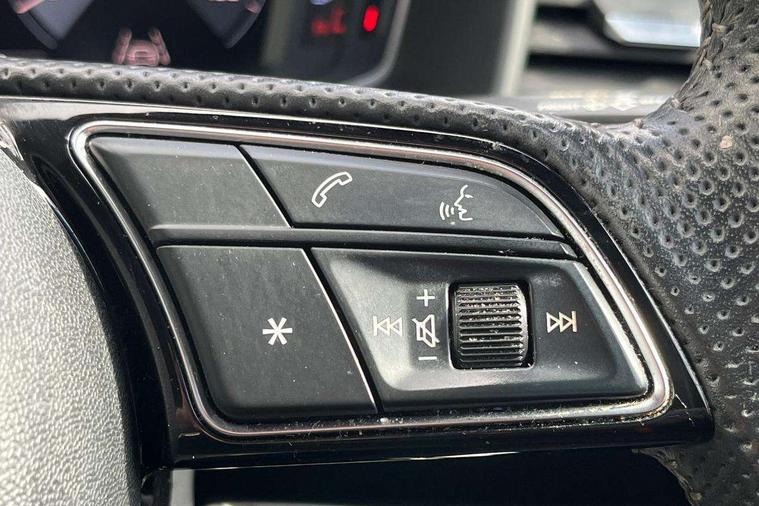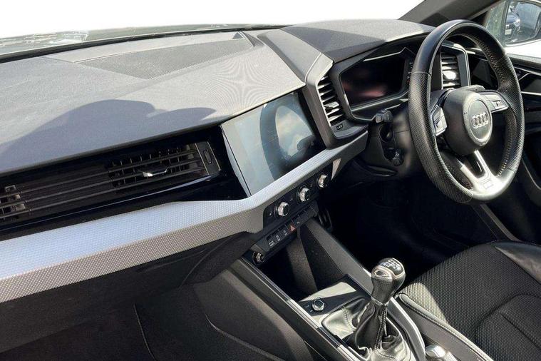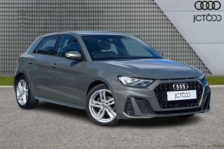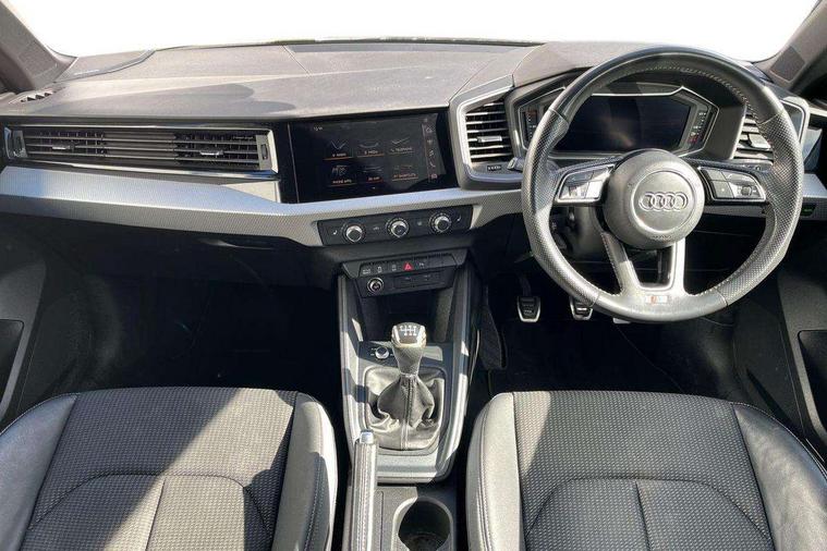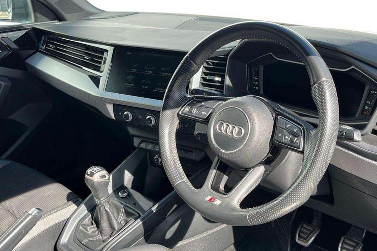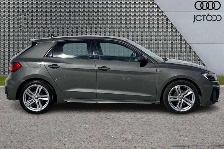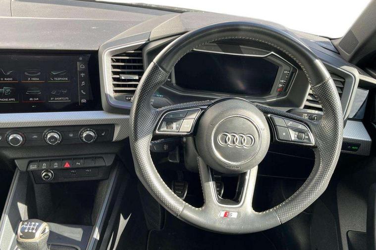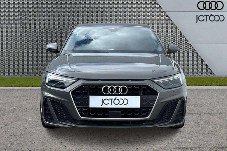 Aluminium trim for control switches, air vents and digital instrument cluster, Silver grey inlays polygon structure in diamond paint finish, Structured grey accent areas including air vents, door handle recesses and centre console in quartz paint finish, Anti theft alarm, Anti theft wheel bolts and loose wheel warning, Audi pre-sense front with pedestrain and cyclist recognition, Immobiliser, Remote central locking with 2 remote folding keys, 1 x SDXC card reader, 1 x USB type C and 1 USB type A charging points, Audi music interface, Bluetooth audio streaming, DAB Digital radio, MMI radio plus with 8.8" colour MMI display screen and MMI touch, 3x3 point rear seatbelts, Brake assist function, Driver and front passenger airbag with front side and head airbags, Electronic Stability Control including ABS, EBD, ASR and EDL, Front and rear seatbelt reminder, Front passenger airbag deactivation switch, Hill hold assist, Seatbelt height adjustment for front seats, Seatbelt monitoring, Tyre pressure warning light, Warning triangle and first aid kit, Auto dimming rear view mirror, Body colour side sill mouldings, Body coloured bumpers, Body coloured door mirrors, Door sills with aluminium inlays and S Line logo, Electric front and rear windows, Front side air inlets in grained matt black and C frame in titanium black, Heat insulating glass windscreen and side windows, Heated rear windscreen, LED headlights with LED rear lights + dynamic rear indicators, Matt aluminium silver tailpipe trim, Matt black radiator grille frame, Matt platinum grey in front spoiler clip and rear diffuser clip, Rain and light sensors, Rear fog lights, Rear wiper, S line badges on front wings, S line exterior bumpers, S line roof spoiler, Side air inlet frames titanium black, Side front spoiler lips in grained matt black, 12V socket in centre console with two cup holders, 3 rear seats, Black cloth headlining, Driver and passenger seat with manual height adjust with forward and backwards adjustment, Front and rear black floor mats with contrast stitching in fine silver, Front head restraints, Height and reach adjustable steering wheel, ISOFIX child seat mounting in front passenger and rear outer seats, Leather gear knob with aluminium trim, Leatherette handbrake grip, Luggage compartment light with front and rear reading lights, Lumbar adjustment for front seats, Rear head restraints, Split folding rear seats, Stainless steel pedals, 10.25" Digital instrument cluster display screen, Audi connect safety emergency and service including E-call, Audi drive select, Audi smartphone interface, Automatic start/stop system, Bluetooth interface, Driver's information system, Electromechanical power steering, Lane departure warning system, Service interval indicator, Speed limiter, Voice control system, Washer fluid level indicator, Sports suspension,