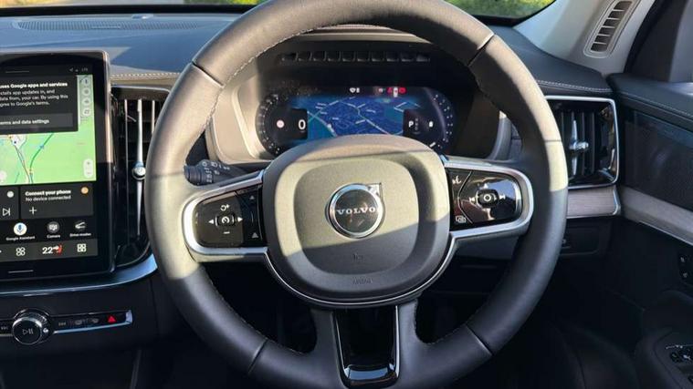11.2" centre console touch screen, 12.3" Progressive Driver Display, 360 degree surround view parking camera with side proximity sensors, Adjustable steering wheel force, Apple carplay (wired), Bluetooth handsfree system, Driver alert control with lane keeping aid, Driver assistance (pilot assist and adaptive cruise control), Driver awareness - Blind spot information system with steer assist, cross traffic alert with autobrake and rear collision warning and mitigation, Driver Understanding System (Eye Tracking), Emergency call service, Front and rear park assist, Google Automotive Services - Navigation with Voice recoginition and google assistant, Handsfree power tailgate opening and closing, Intelligent speed assistance, Oncoming Lane Mitigation, PAS, Power operated tailgate, Service interval indicator, Speed sensitive steering, Trip computer, Volvo on call, Wireless/Inductive Mobile Phone Charging, 8 speed automatic transmission with start/stop + manual change functions, Active four C chassis - four corner adaptive dampers with electronic air suspension, DAB Radio (Digital Audio Broadcasting), Premium Sound by Harman Kardon, dirac unison, dolby pro logic II surround sound, 13 speakers/600W output and fresh air subwoofer, Steering wheel remote infotainment controls, Adaptive brake lights with high level LED brake lights, Auto dimming interior + exterior mirrors, Auto folding and heated power door mirrors, Automatic headlight levelling system, Automatic matrix LED headlights with Adaptive shadow technology and Active high beam, incorporating Day running lights, Body colour bumpers, Front and rear power windows, Headlight cleaning system, Heated front windscreen, High gloss black door mirrors and window surround, High gloss black front and rear bumper deco, High gloss black front grille and deco, Home safe and approach lighting, Integrated roof rails in high gloss black, Power glass tilt and slide panoramic sunroof with sun curtain, Puddle lights, Rain sensor with automatic windscreen wiper activation, Rear side wing doors, Rear wash/wipe with intermittent wipe setting, Roof antenna, Roof spoiler, Visible VIN plate, 12V socket in luggage compartment, 2nd Row centre armrest with and cupholders, 3 Spoke tailored sport steering wheel with chrome trim, 4 zone electronic climate control with Clean zone air quality system + pollen filter, A-pillar parking ticket holder, Air conditioning for 3rd row of seats, Air purifier PM2.5, Ambient door and instrument panel lighting, B Pillar ventilation, Bright metal luggage scuff plate, Centre console cupholders and storage, Floor mats, Front and rear courtesy lights, Front and rear door pocket illumination, Front footwell and side step illumination, Front headrests, Front reading lights, Front seat cushion extensions, Front tunnel storage illumination, Glovebox compartment light, Heated front seats, Heated rear seats, Heated steering wheel, Height/reach adjustable steering column, Illuminated front and rear aluminium tread plates, Illuminated luggage compartment, Illuminated tailgate, Illuminated vanity mirrors + ticket holder, Inner door release handle illumination, Isofix outer rear child seat preparation in 2nd row, Load cover, Load protection net, Lockable glovebox compartment, Luggage compartment divider with grocery bag holder, Nordico quilted upholstery, Outboard armrest with cupholder and storage for third row passengers, Power driver seat with multi directional lumbar support and memory for seat and exterior mirrors, Power folding 2nd row headrests, Power passenger seat with multi directional lumbar support and memory, Rear footwell and side step illumination, Rear headrests, Rear reading lights, Second row integrated child seat for centre seat, Single front passenger seat, Textile headlining, Three 2nd row individual folding passenger seats with fore/aft adjustment, Two 3rd row individual folding passenger seats, Underfloor luggage compartment storage, 7 three point seatbelts, City safety with steering support includes pedestrian, cyclist detection, front collision warning with full auto brake and rear auto brake, Driver and passenger airbags, Drivers knee airbag, First aid kit, Front seats SIPS airbags, Hill descent control - off drive mode, Hill start assist, IC (Inflatable Curtains) - Full Length, Passenger airbag cut-off switch, Power child locks on rear doors, Power parking brake with auto hold function, Road sign information display, Run off Road Protection, Seatbelt reminder and pretensioners for all seats, SIPS (Side Impact Protection System), Slippery road and hazard light alert, Stability and Traction Control with Spin control, Engine Drag Control and Corner Traction Control, Tyre pressure monitoring system, Vehicle deceleration control with Anti-lock Brake System, Electronic Brake Distribution and Emergency Brake Assist, Warning triangle, WHIPS whiplash protection system - front, 2x Key integrated remote control central locking + deadlocking system and auto open/close windows, Anti-theft alarm including immobiliser/volume sensor + level sensor, Keyless drive includes keyless entry and keyless start, Locking wheel nuts, Tailored instrument panel and door tops, Tempa spare wheel and jack,