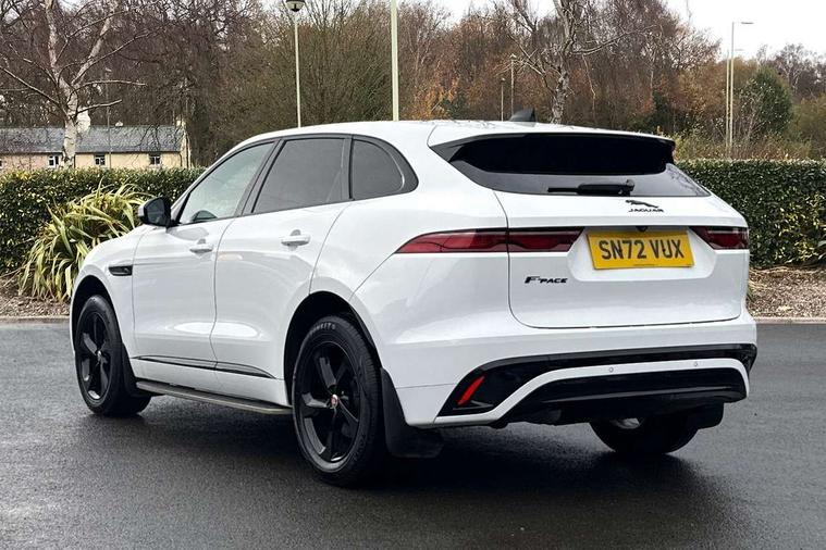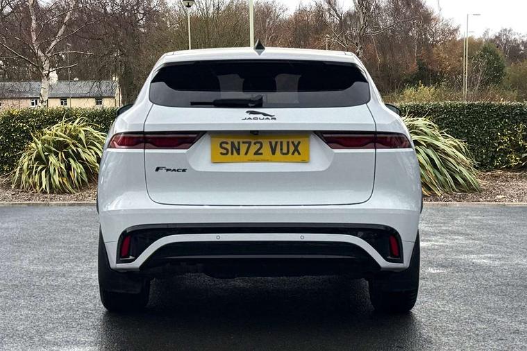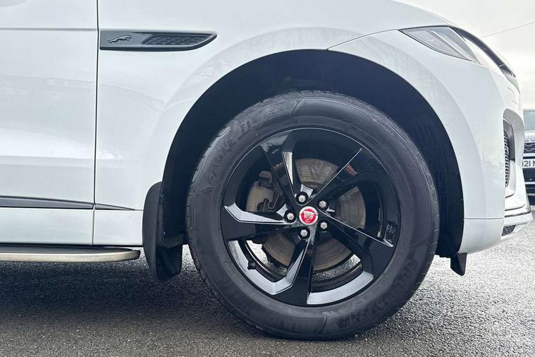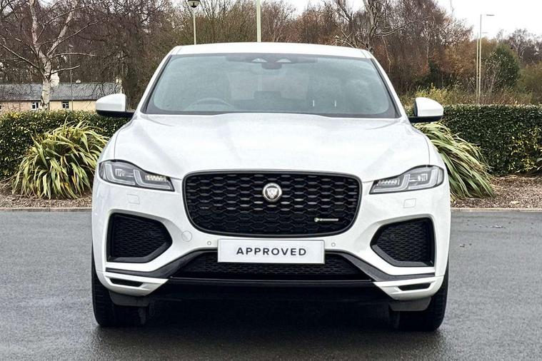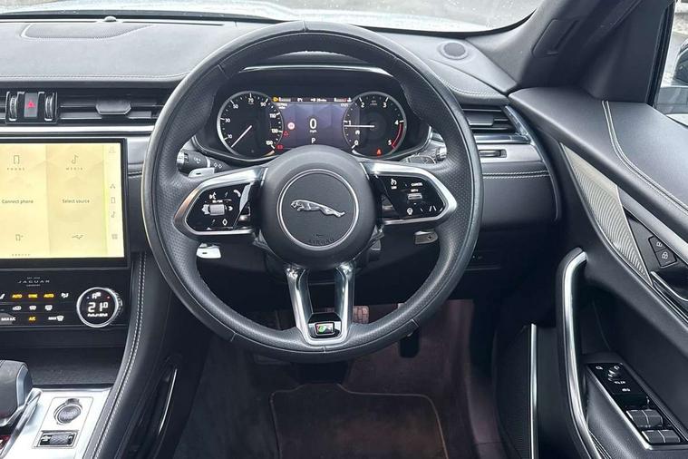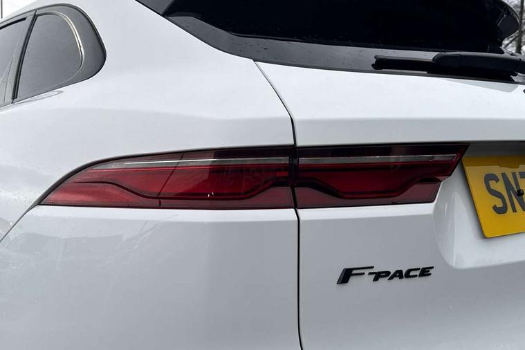 11.4" touchscreen, Android Auto, Apple car play, Bluetooth connectivity, Driver alert system, Driver condition monitor, eCall emergency call system, Eco driving style assistant, Electric power assisted steering, InControl remote, Jaguar Toggle shift selector, Lane departure warning system, Lane keep assist, Outside temperature gauge, Personalisation profile management, Pivi pro connected navigation system with app interface and media storage, Pro services and wifi hotspot, Push button starter, Service interval indicator, Speed proportional steering, Start up sequence with movement in dials and lighting, Traffic sign recognition with adaptive speed limiter, Trip computer, Voice control system, 8 speed automatic transmission, All terrain progress control, All Wheel Drive (AWD), Open differential with torque vectoring by braking, AM/FM radio, Bluetooth streaming, DAB Radio (Digital Audio Broadcasting), Dynamic volume control, InControl apps, InControl protect, iPod integration, 3 flash lane change indicators, Approach Illumination, Auto dimming rear view mirror, Automatic headlights, Body colour door mirrors, Electric windows with one touch open/close and anti trap, F-Pace and R Dynamic badge, Green tinted glass, Heated front windscreen + heated washer jets, Heated rear window with timer, Jaguar script and leaper, LED High level third brake light, LED tail lights, Non acoustic front windscreen, R Dynamic badge on side door, Rain sensor windscreen wipers, Rear fog lights, Rear metal tread plates, Rear side wing doors, Rear wiper, Trailer stability assist, Variable front intermittent wipers, 12V power point front, 3 rear headrests, 3 seat bench in 2nd row, Air distribution speed, Centre armrest console, Centre console with side storage, Deletion loadspace storage rails, Door sill tread plates, Fold flat front seats, Front centre armrest with storage compartment, Front door storage space, Glovebox finisher with jaguar script, Heated steering wheel, Hooks in loadspace, Illuminated glovebox, Interior front door handles with separate locking switches, ISOFIX on outer rear seats, Jaguar sense, Luggage tie downs in loadspace, Mist sensing, Multifunction steering wheel, Overhead lighting console, Overhead stowage for sunglasses, Passive front head restraints, Premium carpet mats, R-Dynamic branded leather steering wheel, Rear air vents, Rear armrest with twin cupholders, Rear centre headrest, Rear door storage space, Reversible boot floor, Satin chrome gearshift paddles, Shopping bag hook, Single front passenger seat, Sunvisors with illuminated vanity mirrors, Twin front cupholders with cover, Online Pack with data plan - F-Pace, 355mm front brakes and 325mm rear brakes, 3x3 point rear seatbelts, ABS, All surface progress control (ASPC), Brake pad warning light, DSC - Dynamic Stability Control, Electric parking brake (EPB), Emergency brake assist, Front airbags with passenger seat occupant detector, Front and rear seatbelt reminder, Front side airbags, Full length side window curtain airbag, Hill launch assist, Power operated child locks, Torque vectoring brake, Traction control, Tyre pressure monitoring system, Immobiliser, Keyless start, Locking wheel nuts, Perimeter alarm, Remote central locking, Valet mode,