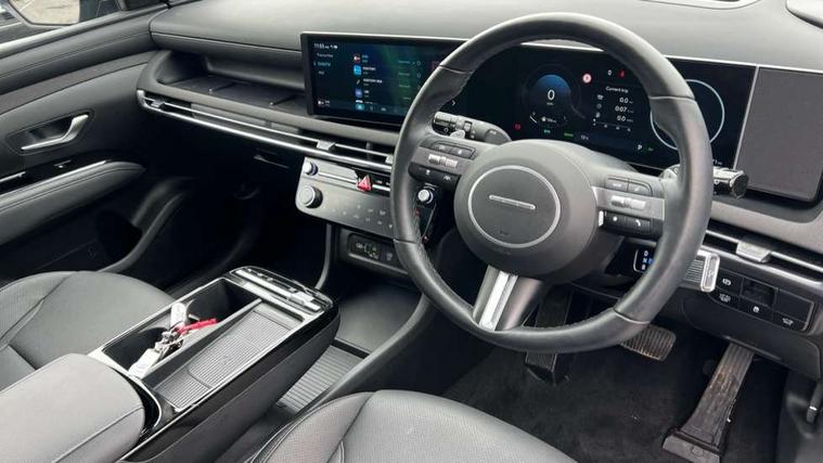 12.3" LCD display with driver's supervision instrument cluster, 12.3" widescreen navigation with bluelink and mapcare, Blind spot view monitor, Bluetooth system, Cruise control - smart adaptive speed control with stop and go function, Digital clock, Drive mode selector, Driver attention warning, E-call, Emergency stop signalling system, Forward Collision Avoidance Assist (FCA) - Car, Pedestrian and Cycle, Forward Collision Avoidance Assist Junction Turning (FCAJX), Front and rear parking sensors, Front, rear and side parking distance warning, Highway Driving Assist (HDA), Hyundai road side assistance, Intelligent speed limit assist, Lane follow assist, Lane keep assist, Over the air updates(OTA), Parking collision avoidance assist (PCA), PAS, Rear camera and guidance parking system, Rev counter, Smart power tailgate, Surround view monitor, Tailgate open warning light, Trip computer, Trip odometer, Voice recognition, Water temperature gauge, Windscreen washer fluid sensor and warning indicator, Wireless Apple CarPlay/Android Auto, Wireless phone charging pad, 2 front and 2 rear USB-C ports, DAB Digital radio, Krell premium audio system with 8 speakers and subwoofer, Steering wheel mounted audio/phone controls, Adjustable intermittent front windscreen wipers with aero wiper blade, Auto dimming rear view mirror, Automatic defog system, Automatic headlights with dusk sensor, Automatic windscreen wipers with rain sensor, Black wheel arches, Body colour bumpers, Body colour door mirrors with integrated indicators, Body colour exterior door handles, Electric tilt/slide panoramic sunroof, Electrically adjustable, heated and power folding door mirrors, Follow me home headlights, Front and rear electric windows with anti-trap mechanism and one touch control, Front fog lights, LED 3rd brake light, LED daytime running lights, LED rear lights, Matrix LED headlights, Positioning Lights - LED, Privacy glass - Rear windows and tailgate, Rear side wing doors, Rear wash/wipe with intermittent wipe setting, Roof rails, Tinted glass with windscreen shade band, Trailer stability assist, 12V power outlets in front console and luggage compartment, 3 seat bench in 2nd row, 40/20/40 split folding rear seat, 64 colours interior ambient lighting, Adjustable head restraints (Up and down), Cupholders in rear armrest, Door courtesy lights, Driver and passenger sunvisors with illuminated LED vanity mirrors, Driver's seat electric adjustments, Driver's seat memory, Front and rear door pockets, Front armrest with storage box, Front centre console and door bottle holders, Front passenger's seat electric adjustments, Heated front seats, Heated rear seats, Heated steering wheel, Height/reach adjustable steering column, Illuminated/air conditioned glove compartment, ISOFIX child seat anchorage points attached on outer rear seats, Leather upholstery, Leather wrapped steering wheel and gear knob, Luggage compartment lighting, Luggage cover, Luggage hooks, Luggage net, Map and reading lights, Rear seat remote folding function, Rear side window sunblind, Reclining rear seats, Retractable load cover, Single front passenger seat, Sunglasses holder, Three zone climate control, Touch sensitive climate controls with temperature dials, TUCSON branded metal door scuff plate, Underfloor boot compartment, Ventilated front seats, Trailer wiring package - Tucson, 3x3 point rear seatbelts, Active bonnet, Airbag - Front, front side, curtain and centre front airbags, Anti-lock brake system (ABS), Brake assist function, Childproof rear door locks, Curtain airbag roll over sensor, Downhill brake control, Electric parking brake, Electronic stability control, Front and rear seatbelt reminder, Front passenger airbag deactivation switch, Front seatbelt pretensioners, Hill start assist control (HAC), Multi-Collision braking, Outer rear seatbelt height adjustment, Seatbelt height adjustment for front seats, Traction control, Tyre pressure monitoring system with individual tyre pressure display - TPMS, Vehicle stability management, Deadlocks, Immobiliser, Locking wheel nuts, Remote control central locking, Smart key with keyless entry and engine start/stop button, Speed sensitive auto door locking, Thatcham category 1 alarm, 19" Alloy wheels, Tyre repair kit,
