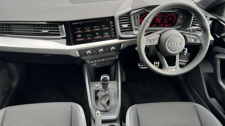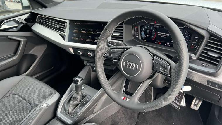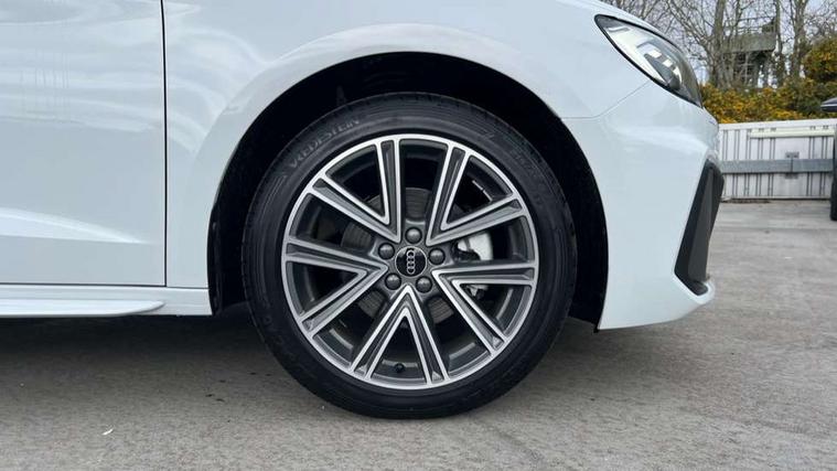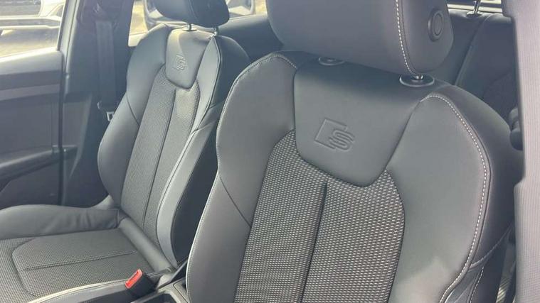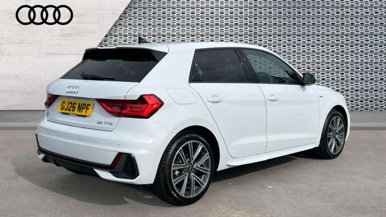 10.25" Digital instrument cluster display classis style instrument dials + speed, odometer, time, outside temperature, telephone menu + fuel level warning, Advanced driver attention and drowsiness monitor, Audi connect emergency call and service, Audi drive select, Audi remote connect and control, Bluetooth interface, Camera based traffic sign recognition, Cruise control, Driver's information system, Electromechanical power steering, Lane departure warning system, Rear parking sensor, Service interval indicator, Smartphone interface, Speed limiter, Start stop system with recuperation, Voice control system, Washer fluid level indicator, Sports suspension, 2 x USB type C connection points, 6 loudspeakers, DAB Digital radio, MMI radio plus with 10.1" colour MMI display screen and MMI touch, Auto dimming rear view mirror, Body coloured door mirrors, Door sill trims with aluminium inlays and S line logo in front, Electric front and rear windows, Electrically adjustable, heated, folding door mirrors with integrated LED side indicator, Front side air inlets in grained matt black and C frame in anthracite black, Headlight cleaning system, Heat insulating glass windscreen and side windows, Heated rear windscreen, High level LED brake light, LED daytime running lights, LED headlights with range control LED rear lights + dynamic rear indicators, Light and rain sensors, Privacy glass, Radiator grille and rear diffuser in matt anthracite black, Radiator protective grille frame in matt aluminium silver, Rear fog lights, Rear side wing doors, Rear wiper, Side front spoiler lips in grained matt black, 12V socket in centre console with two cup holders, 3 rear seats with headrests, 3 seat bench in 2nd row, 3 spoke leather multi-function plus steering wheel features S badging and grips in perforated leather with contrast stitching, 40:60 Split folding rear seat or fully collapsed, Black carpets, Black cloth headlining, Front and rear velour black floor mats with contrast stitching in fine silver, Front head restraints, Front passenger seat, Height and reach adjustable steering wheel, Interior lighting includes roof module, front and rear reading lights and right luggage compartment lighting, ISOFIX child seat mounting for front passenger and outer rear seats including top tether attachment point of outer rear seats, Leather gear knob with aluminium trim, Leather handbrake grip, Manual air conditioning, Manual height adjustable for driver and front passenger seat, Manually adjustable lumbar support in front seats, Stainless steel pedals, Ambient lighting package - A1, Luggage compartment pack - A1, S line exterior styling pack - A1 Sportback, 3x3 point rear seatbelts, Audi pre-sense front with pedestrain and cyclist recognition, Brake assist function, Driver and front passenger airbag with front side and head airbags, Electronic Stability Control including ABS, EBD, ASR and EDL, Front passenger airbag deactivation switch, Hill hold assist, Manual rear child locks, Seatbelt height adjustment for front seats, Seatbelt monitoring, Tyre pressure loss indicator, Warning triangle and first aid kit, Anti theft alarm, Anti theft wheel bolts, Immobiliser, Remote control key with safelock, Aluminium trim for control switches, air vents and digital instrument cluster, Black dashboard, Silver grey inlays polygon structure in diamond paint finish, Structured grey accent surfaces insert of air vents, interior door handle recesses and centre console in quartz paint finish,
