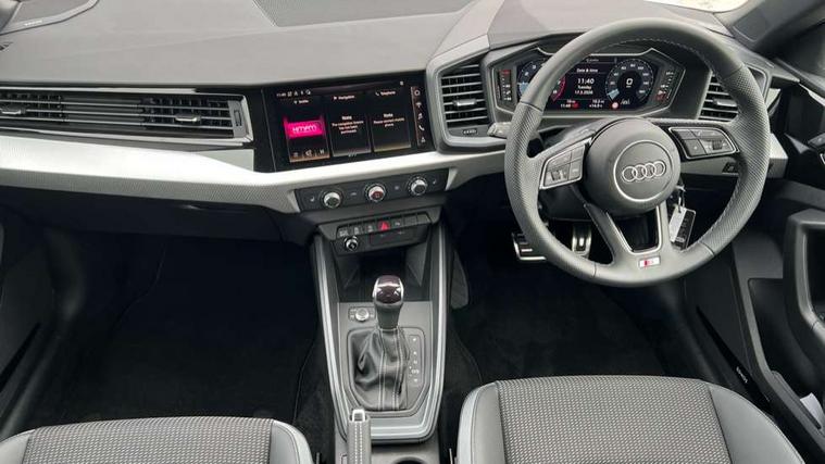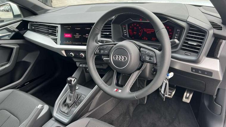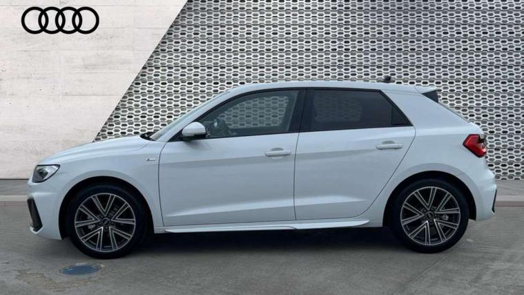 10.25" Digital instrument cluster display classis style instrument dials + speed, odometer, time, outside temperature, telephone menu + fuel level warning, Advanced driver attention and drowsiness monitor, Audi connect emergency call and service, Audi drive select, Audi remote connect and control, Bluetooth interface, Camera based traffic sign recognition, Cruise control, Driver's information system, Electromechanical power steering, Lane departure warning system, Rear parking sensor, Service interval indicator, Smartphone interface, Speed limiter, Start stop system with recuperation, Voice control system, Washer fluid level indicator, Sports suspension, 2 x USB type C connection points, 6 loudspeakers, DAB Digital radio, MMI radio plus with 10.1" colour MMI display screen and MMI touch, Auto dimming rear view mirror, Body coloured door mirrors, Door sill trims with aluminium inlays and S line logo in front, Electric front and rear windows, Electrically adjustable, heated, folding door mirrors with integrated LED side indicator, Front side air inlets in grained matt black and C frame in anthracite black, Headlight cleaning system, Heat insulating glass windscreen and side windows, Heated rear windscreen, High level LED brake light, LED daytime running lights, LED headlights with range control LED rear lights + dynamic rear indicators, Light and rain sensors, Privacy glass, Radiator grille and rear diffuser in matt anthracite black, Radiator protective grille frame in matt aluminium silver, Rear fog lights, Rear side wing doors, Rear wiper, Side front spoiler lips in grained matt black, 12V socket in centre console with two cup holders, 3 rear seats with headrests, 3 seat bench in 2nd row, 3 spoke leather multi-function plus steering wheel features S badging and grips in perforated leather with contrast stitching, 40:60 Split folding rear seat or fully collapsed, Black carpets, Black cloth headlining, Front and rear velour black floor mats with contrast stitching in fine silver, Front head restraints, Front passenger seat, Height and reach adjustable steering wheel, Interior lighting includes roof module, front and rear reading lights and right luggage compartment lighting, ISOFIX child seat mounting for front passenger and outer rear seats including top tether attachment point of outer rear seats, Leather gear knob with aluminium trim, Leather handbrake grip, Manual air conditioning, Manual height adjustable for driver and front passenger seat, Manually adjustable lumbar support in front seats, Stainless steel pedals, Ambient lighting package - A1, Luggage compartment pack - A1, S line exterior styling pack - A1 Sportback, 3x3 point rear seatbelts, Audi pre-sense front with pedestrain and cyclist recognition, Brake assist function, Driver and front passenger airbag with front side and head airbags, Electronic Stability Control including ABS, EBD, ASR and EDL, Front passenger airbag deactivation switch, Hill hold assist, Manual rear child locks, Seatbelt height adjustment for front seats, Seatbelt monitoring, Tyre pressure loss indicator, Warning triangle and first aid kit, Anti theft alarm, Anti theft wheel bolts, Immobiliser, Remote control key with safelock, Aluminium trim for control switches, air vents and digital instrument cluster, Black dashboard, Silver grey inlays polygon structure in diamond paint finish, Structured grey accent surfaces insert of air vents, interior door handle recesses and centre console in quartz paint finish,