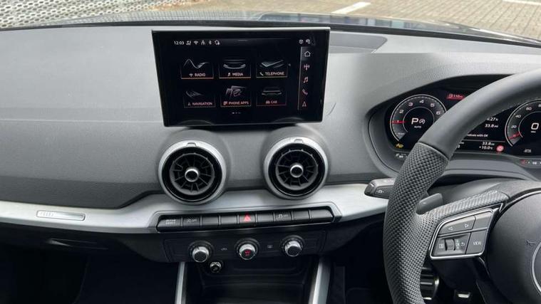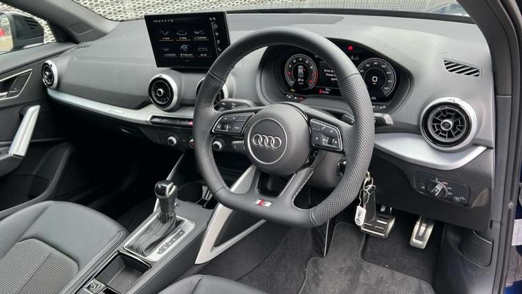 3D map display, Audi connect navigation and infotainment includes innovative services, Audi connect remote and control connects your vehicle to your smartphone, Audi drive select: S tronic - power steering assistance + engine + gearshift (modes: comfort, auto, dynamic, efficiency, individual), Audi smartphone interface - Apple carplay/Android Auto, USB connect, 2xSDXC card readers, voice control for navi, telephone, music and 3rd party apps, Audi virtual cockpit, Automatic start/stop system with recuperation, Bluetooth interface includes bluetooth audio streaming, Camera based traffic sign recognition, Cruise control, Distraction and Fatigue warning, E-call, Jukebox hard drive memory for music (10GB), Lane departure warning, MMI navigation plus with 8.8" touchscreen, Natural voice recognition, Power operated tailgate, Progressive steering, Rear parking sensors, Sport suspension, 6 passive loudspeakers, DAB Digital radio, USB type C port, Audi beam, Auto dimming rear view mirror, Black window trims, Bumper in full body colour paint finish, Electrically adjustable, folding, auto dimming and heated door mirrors with integrated LED side indicators, Front windscreen with grey tinted sunband, LED daytime running lights, LED headlights with dipped beam, high beam, position lights, indicators, LED rear lights, LED third brake light, Privacy glass - dark tinted rear and rear side windows from B-pillar backwards, Rear side wing doors, Rear wiper, Variable front intermittent wipers, Wheel arch trims in manhattan grey, 12V socket in front, 3 seat bench in 2nd row, 3 spoke flat bottomed multi-function leather sport steering wheel with gear shift paddles with S logo, 4-way electric lumbar support for front seats including manual seat height adjustment for both front seats, 60/40 split folding rear seat bench, Black carpets, Black cloth headlining, Front and rear head restraints, Front centre armrest, Front sport seats, Front/rear floor mats, Height/reach adjust steering wheel, Illuminated door sill trims with S logo, ISOFIX child seat mounting in front passenger and rear outer seats, Manual air conditioning, Single front passenger seat, Stainless steel pedals, Black styling pack - Q2, 3x3 point rear seatbelts, 6 airbags - Front, curtain and front side airbags, Electromechanical parking brake, Electronic stabilisation control including ABS, ASR and EDL, Front passenger airbag deactivation, Hill hold assist, Pre-sense front with pedestrian recognition, Seatbelt monitoring, Tyre pressure warning light with visual and acoustic warning, Warning triangle and first aid kit, Anti theft wheel bolts, Electronically operated child locks, Remote central door locking, Thatcham category 1 alarm, Aluminium interior element, Black dashboard, Gloss black centre console, Matt brushed aluminium trim inlays, Tool kit,