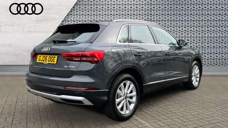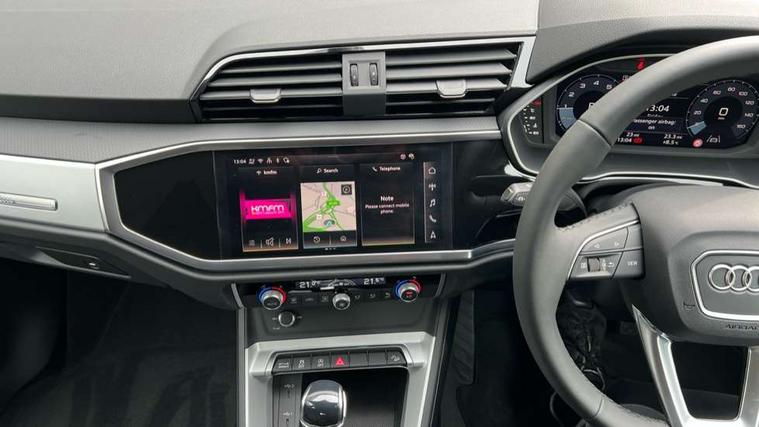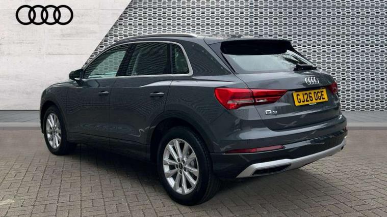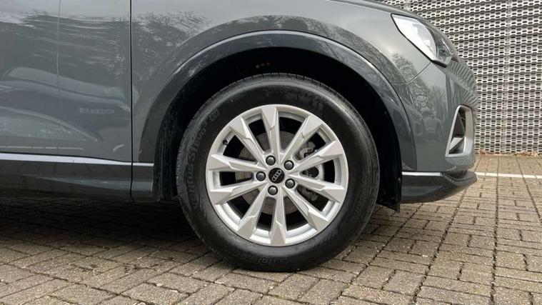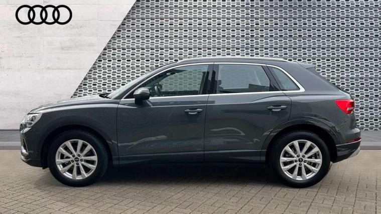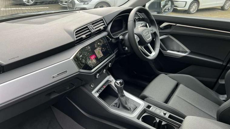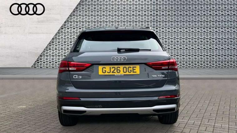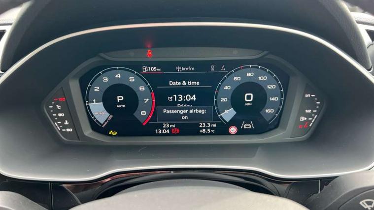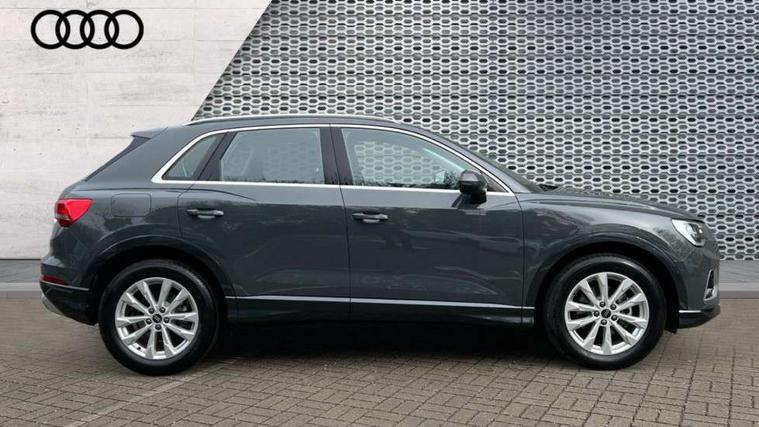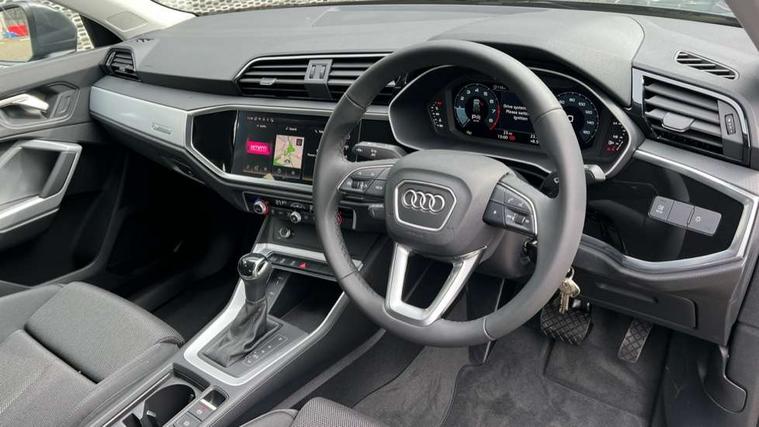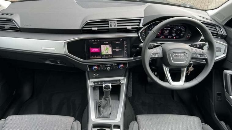 Amazon alexa Integration, Audi connect safety and service, Audi drive select, Audi lane departure warning, Audi Virtual Cockpit - 10.25" display, Bluetooth interface, Camera based traffic sign recognition, Distraction and Fatigue warning, Legal emergency call, MMI Navigation Plus with high resolution 10.1 inch touchscreen colour display, Power operated tailgate, Progressive steering, Service interval indicator, Smartphone interface includes wireless Apple carplay/Android Auto, Start stop system with recuperation, Voice control system with natural language interaction, Standard suspension, 2 USB-C ports with charge and data functions, 6 passive loudspeakers, DAB digital radio module, Acoustic windscreen, Aluminium roof rails, Aluminium window trim, Anthracite black radiator grille, Auto dimming door mirrors, Auto dimming frameless rear view mirror, Electrically folding, adjustable and heated door mirrors with integrated LED side indicators and kerb view function for passenger side, Front and rear bumpers, wheel arch trims and side sill trims in contrasting Manhattan grey paint finish, Front and rear electric windows, Front fog lights, Front side air inlets in matt selenite silver, Front spoiler in matt selenite silver, Grille vertical bars in aluminium silver/Matt, High gloss black finish B and C pillars, LED headlights with LED daytime running lights, LED third brake light, Rain and light sensors, Rear diffuser strip in matt selenite silver, Rear side wing doors, Rear wiper, Variable front intermittent wipers, 12V socket in rear centre console, 3 seat bench in 2nd row, 3 spoke multi-function leather steering wheel, 40:20:40 folding with manual adjustment for 60:40 forwards/backwards position and backrest angle, Black carpet mats, Door sill trims with aluminium inlay, Dual zone electronic climate control, Electric lumbar support, Front and rear floor mats, Front and rear headrests, Front centre armrest, Height and reach adjustable steering wheel, ISOFIX child seat mounting for front passenger with airbag deactivation and outer rear seat including top tether attachment point for outer rear seats, Luggage compartment sill protection in stainless steel, Lunar silver cloth headlining, Manual front seats with height adjustment, Single front passenger seat, Non smoking pack - Q3, 3x3 point rear seatbelts, 6 airbags - Driver, front passenger, curtain and side windows, Audi pre-sense front with pedestrain and cyclist recognition, Electrically operated child locks on rear doors, Electromechanical parking brake, Electronic stabilisation control including ABS, ASR and EDL, Front seatbelt reminder, Hill descent control, Hill hold assist, Pre sense basic, Seatbelt monitoring, Tyre pressure warning, Warning triangle and first aid kit, Anti theft wheel bolts, Immobiliser, Remote central locking, Thatcham approved category 1 anti theft alarm, Aluminium look interior elements, Detail dashboard around MMI touch colour display in glass look, black with surround in aluminium look, Micrometallic silver inlay,