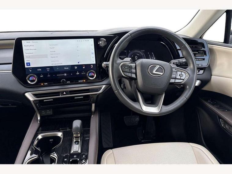 Bluetooth mobile phone connectivity, BSM - Blind spot monitoring, Drive mode selector, E-call, Intelligent clearance sonar, Lexus link connected services including over the air updates, MM21 Lexus link pro - 14" HD touchscreen with embedded and cloud based navigation, voice assistant, connected services, over the air and always online, Push button starter, Speed sensitive electric power assisted steering, Ultrasonic parking sensors, Wireless Apple CarPlay and wired Android Auto, Wireless Smartphone charger, E-Four Automatic transmission, Vehicle Stability Control (VSC), 12 speakers audio, 6 USB ports (3 front USB C, 1 front USB A and 2 rear USB C), DAB Digital radio, 3 projector bi-beam LED headlight with auto high beam, Auto dimming rear view mirror, Auto headlights, Front and rear one touch power windows with voice command, Front and rear silver window frame mouldings, Headlight washers, Heated, auto-folding door mirrors, auto dimming with rerverse tilt and turn indicators, L-shaped rear light bar, LED brake lights and rear lights with emergency brake signal, LED cornering headlights, LED daytime running lights, LED front and rear fog lights, LED Indicators, Power back door system, Privacy UV glass, rear doors and tailgate, Rain sensor windscreen wipers, Rear side wing doors, Rear wash/wipe, Roof rails, Variable front intermittent wipers, 12V accessory port centre console and luggage compartment, 2 cup holders in centre console, 2 way electric lumbar support for driver and front passenger, 2 x Sunvisors with vanity mirror and lamp, 3 rear headrests, 3 seat bench in 2nd row, 40:20:40 split folding rear seats, 8 way electrically adjustable front seats, Front aluminium scuff plates, Front headrests, Front tray in front of centre console, Glovebox, Heated front seats, Heated steering wheel, Lever type shft control, Manually adjustable rear seats, Power adjustable steering wheel, Rear resin scuff plates, Single colour ambient lighting, Single front passenger seat, Tahara leather steering wheel with paddle shifts, Tahara man-made leather upholstery, Textile carpet mats, Three zone climate control air conditioning system, Two way opening centre armrest with storage, 2 x Isofix child rear seat restraints, 3 point ELR front and rear seatbelts with pretensioners, ABS, Curtain shield airbags (front and rear), Driver and front passenger 2 stage airbag, Driver/front passenger side airbags, Drivers knee airbag, E-Latch with safe exit assist, EBD + Brake Assist, Electronic parking brake, Electronically controlled braking, Front and rear left/right force limiters and tension reducers, Front and rear left/right seatbelt reminders, Front centre airbag, Hill assist control, Lexus safety system+ 3 - dynamic radar cruise control, pre collision system day and night, lane tracing assist, road sign, Manual child lock in rear doors, Passenger airbag cut-off device, Traction control, Tyre pressure warning, 2 x remote key fobs, Customisable auto door lock, Motion sensor key, Smart keyless entry, Thatcham category 1 alarm + immobiliser, VIN etching, Black Inlay,