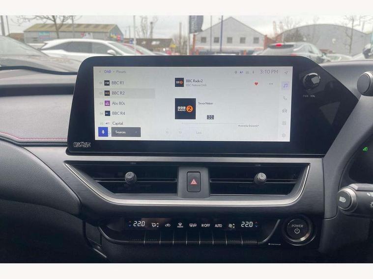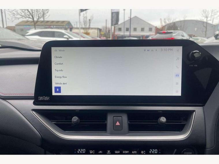 4 driving modes EV/Eco/Normal/Sport, 7" Lexus media display, 8" LFA inspired TFT meters with movable meter ring, Analogue clock with GPS function, Apple car play/Android Auto, Compatible mobile phone bluetooth with audio streaming, E-call, Electric power steering (EPS) with speed sensitive features, Front and rear parking sensor with intelligent clearance sonar, Lane change flasher function, Lexus link connected services, Lexus navigation system, Lexus safety systems + includes dynamic radar cruise control, pre collision system day and night, lane tracing assist, road sign assist, Push button start, Remote touch interface, Reversing camera with back guide lines, Trip computer, F Sport suspension tuning and rear performance dampers, Vehicle Dynamics Integrated Management (VDIM), Vehicle Stability Control (VSC), 2 front USB and 2 rear USB charging points, 6 speakers, AM/FM and DAB radio, AUX socket with VTR compatibility, CD player, Acoustic windscreen, Aero stabilising arch mouldings, Aero stabilising rear lights, Aero ventilated wheels, Aluminium roof rails, Auto dimming interior rear view mirror, Bi-LED (low and high beam) headlights with Auto High Beam (AHB), Black roof drip mouldings, Body adhesive, laser screw welding and laser brazed roof structure, Body coloured bumpers, Colour coded wheel arches, Electric adjustable/heated door mirrors, F SPORT exterior styling consists of black Mesh front grille, enhanced side rockers, metallic coated front bumper and F SPORT badging, Front and rear one touch power windows, with anti-jam protection, Headlight cleaners, LED cornering headlights, LED daytime running lights, LED front and rear fog lights, LED tail lights, LED third brake light, Privacy glass, rear doors and tailgate, Rain sensor windscreen wipers, Rear side wing doors, Rear wiper, Shark fin roof aerial, Single hidden exhaust pipe, Towing preparation, Variable front intermittent wipers, 12V accessory port centre console and luggage compartment, 2 cup holders in the front and rear centre console, 2 way electrical lumbar adjustment for driver, 2 x folding shopping bag hooks in boot, 2 x sun visors with vanity mirror and lamp, 3 seat bench in 2nd row, 4 x tie down hooks in the boot, 5 headrests, 60/40 split folding rear seat, 8 way driver/passenger electrically adjustable front seats, Active sound control, Card holder installed in driver and passengers sun visors, Centre armrest with storage, Driver and passenger door pocket, Dual zone electronic climate control + Nano-E humidity sensor, F Sport aluminium sports pedals, F SPORT dimpled leather gear lever, F SPORT front seat headrest adjustable forwards and backwards, F Sport interior styling, F Sport leather steering wheel with paddle shifts, Fabric/Tahara leather upholstery, Glovebox, Heated steering wheel, Illuminated entry system, LED interior illumination, Map pockets in the rear of passenger's front seat, Rear air vents with 2 USB chargers, Rear armrest with 2 cupholders, Single front passenger seat, Storage tray under audio panel, Textile carpet mats, Tilt/reach adjustable steering column, Under deck storage, Under desk side storage, 2 x Isofix child rear seat restraints, 3x3 point rear seatbelts, Anti-lock braking system (ABS), BAS (Brake Assist System), Driver and front passenger 2 stage airbag, Driver and front passenger knee airbag, Driver/front passenger side airbags, EBD - Electronic brakeforce distribution, ECB (Electronically Controlled Brake System), Electric child locks, Electric parking brake, Front adjustable seatbelt anchor points, Front and rear curtain shield airbags, Front outer seatbelt+pre-tensioners, force limiter+tension reduction: 3-point with active safety link to PCS, Hill start assist control (HAC), Passenger airbag cut-off device, Rear outer seatbelt+pre-tensioners, force limiter+tension reduction: 3-point with active safety link to PCS, Centre belt w/o pre tensioner+force limiter, Secondary Collision Brake (SCB), TRC (Traction Control), Tyre pressure warning, 2 x remote key fobs, Anti theft system : Alarm instruction sensor, glass breakage sensor and engine immobiliser, Locking wheel nuts, Remote central door locking, Speed sensitive auto door locking, Two motion door lock with double lock, VIN Window etching, 18" F Sport alloy wheels with run flat tyres,