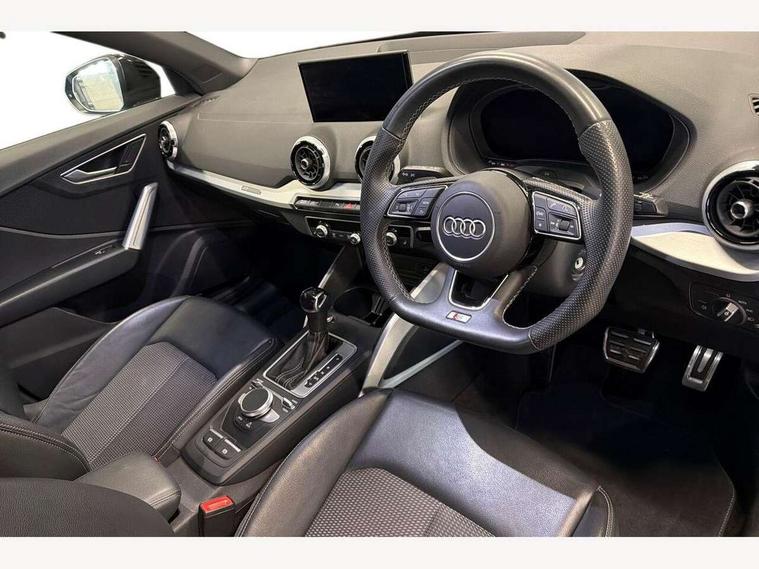 Adaptive cruise control with speed limiter, Advanced driver attention and drowsiness monitor, Audi application store, Audi connect safety and service (e-call), Audi drive select, Audi side assist with exit warning and rear cross traffic assist, Audi smartphone interface, Audi Virtual Cockpit - 10.25" display, Bluetooth interface, Camera based traffic sign recognition, Lane departure warning including emergency assist, MMI Navigation Plus with high resolution 11.6 inch touchscreen colour display, Power operated tailgate with sensor controlled release, Progressive steering, Rear view camera, Swerve assist and turn assist, 11KW onboard charger, 165kW DC charging capability, AC and DC charging access point positioned on driver's side rear, Control unit with household plug and charging cable, Mode 2, Type 2 / G (10A), Mode 3 type 2 AC charging cable 22kW, Sport suspension, 2 USB-C ports with charge and data functions, Audi sound system with 8 loudspeakers incl. centre speaker, subwoofer and 6-channel amplifier with total output of 180 watts, DAB Digital radio, Audi rings and model badging in black (with powertrain designation removed), Black roof rails, Contrast bumpers in Manhattan grey, Electrically adjustable/heated/folding/auto dimming door mirrors with integrated LED indications + kerb view function for passenger side, Frameless auto dimming interior rear view mirror, Heat insulating glass windscreen, Heated rear window, LED 3rd brake light, LED daytime running lights, LED Headlights, LED rear lights, Privacy glass - dark-tinted rear window, rear door windows and rear side windows, Projection light in the exterior mirrors, e-tron logo projected from the underside of the exterior mirror onto the ground, Rear side wing doors, Rear wiper, S Line badges on the front wings, S line exterior styling, Single frame grille with a structured, closed surface within an octagonal shape, 3 seat bench in 2nd row, 3 zone automatic air conditioning, 4 way electric lumbar support for driver and front passenger, 40/20/40 split folding rear seat bench, Accent surfaces in gloss black - centre console control panel, switch panel and trim on front doors in gloss black, Black carpets, Black cloth headlining, Comfort auxiliary air conditioning, Door armrests in leatherette, Flat top and bottomed twin-spoke leather multifunction sport steering wheel with shift paddles for recuperation, Front centre armrest, Front door sill trims with aluminium inlay, illuminated with S logo, Front/rear floor mats, Heated front seats, Pedals in stainless steel, Rear centre armrest with cupholders, Rear head restraints, Single front passenger seat, Steering wheel with trim in chrome look, S emblem, steering wheel grips in perforated leather and contrast stitching, Ambient lighting plus pack - Q4 E-tron, Black styling pack plus - Q4 E-tron, Non smoking pack - Q4 E-tron, 3x3 point rear seatbelts, Acoustic vehicle alerting system, Audi pre sense basic and rear, Convenience key with safelock, Driver and front passenger airbag with passenger airbag deactivation, Electric child locks, First aid kit with warning triangle and vests, Front side airbags with head airbag system and front interaction airbag, i - Size child seat mounting on the front passenger side and i - Size and top tether on the outer rear seats, Pre-sense front with pedestrian and cyclist detection, Rear seat occupant reminder for child presence detection, Seat belt monitoring, Tyre pressure loss indicator, Anti theft alarm, Anti-theft wheel bolts, Keyless Go, Aluminium look interior elements, Black dashboard, Vehicle tool kit,
