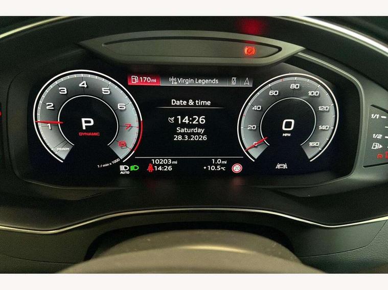 Audi connect safety and service (e-call), Audi connect with Amazon Alexa Integration, Audi drive select, Audi parking system plus - acoustic and visual park assist system for front and rear, Audi virtual cockpit, Automatic start/stop system with coasting functionality, Bluetooth interface, Camera based traffic sign recognition, Lane departure warning system, MMI navigation plus with 10.1" and 8.6" touch screens, Power operated tailgate, Progressive steering, Rear view camera, Service interval indicator, Smartphone interface includes wireless Apple carplay/Android Auto, Voice control system, Sports suspension, Audi front music interface, Audi sound system, Auxiliary input socket, DAB Digital radio, USB connection, Aluminium roof rails, Body colour rear roof spoiler, Body coloured door mirrors, Electric front/rear windows, Electrically adjustable heated and folding + automatically dimming exterior mirrors with memory function, Frameless auto dimming interior rear view mirror, Front intermittent wipers, Heat insulating darkened glass in side and rear windows, Heat insulating glass in windshield, LED rear lights with dynamic indicators, LED signature front daytime running light, LED third brake light, Matrix LED headlights, Matt black rear diffuser with diffuser strip and tailpipes in chrome, Matt black side air intake grille with inlay in matt aluminium, Privacy glass, Radiator grille in anthracite black matt, single frame in chrome and horizontal struts in matt aluminium silver, Rain and light sensors, Rear side wing doors, Rear wiper, 2 zone deluxe electronic climate control, 3 spoke high multi-function perforated leather steering wheel with contrast stitching and shift paddles, 40/20/40 split folding 3 rear seat bench in 3 parts with rear centre armrest, Audi phone box light, Black cloth headlining, Electrically adjustable front seats including seat height, fore/aft position, backrest angle and 4-way lumbar with memory for driver's seat, Front and rear floor mats, Front centre armrest, Front head restraints, Heated front seats, Height/reach adjust steering wheel, Illuminated door sill trims with S logo, Illuminated sun visors with vanity mirrors, Leather gear knob, Luggage compartment system, Rear headrests, Single front passenger seat, Stainless steel pedals and foot rest, Tool kit and car jack, LED Interior Ambient Lighting Pack - A6, Non smoking pack - A6, S line exterior style pack - A6, 3 point seatbelts on all seats, Airbags - Front side, front and rear including head, Audi pre-sense front, EBD - Electronic brakeforce distribution, Electromechanical parking brake, Electronic Stability Control (ESC) including ABS, ASR and EDL, Extended pedestrian protection measures, ISOFIX child seat mounting for front passenger seat and ISOFIX child seat mounting with Top Tether for outer rear seats, Manual child proof rear door locks, Seatbelt monitoring, Tyre pressure warning light, Warning triangle and first aid kit, Anti theft alarm with tow away protection, Anti-theft wheel bolts and wheel loosening detection, Immobiliser, Keyless Go, Remote central locking, Matt brushed aluminium inlays,