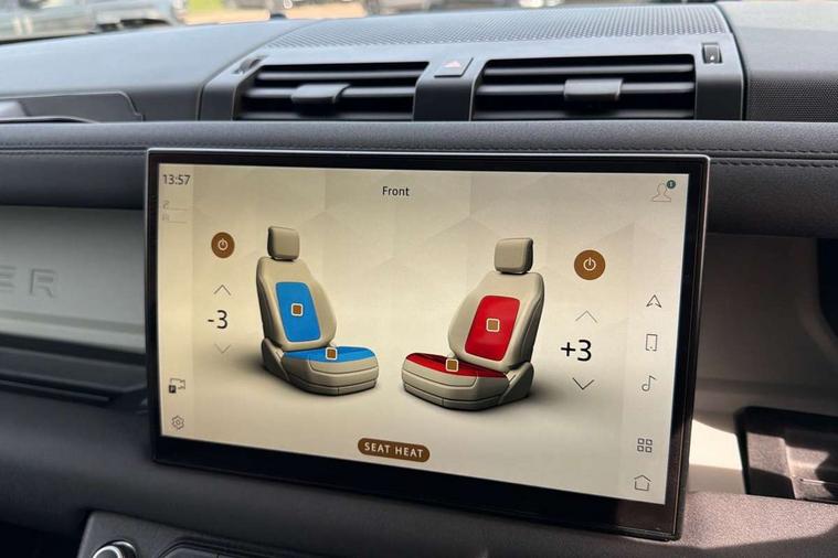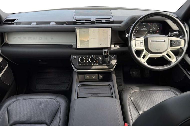 360 degree parking aid, 3D Surround Camera with 360 View, 180 Rear View, Front Traffic Detection, Forward Vehicle Guidance, Tow Hitch Assist and clear sight Ground View, Android Auto, Apple CarPlay, Assisted tailgate with soft close, Blind spot assist, Bluetooth system, Brake pad wear indicator, Clear exit monitor, Click and go integrated base unit, Connected navigation pro, Cruise control + speed limiter, Driver condition monitor, Electric power assisted steering (EPAS), Interactive driver display, Lane keep assist, Push button start, Rear traffic monitor, Traffic sign recognition with adaptive speed limiter, Trip computer, Wade Sensing, Wireless device charging, Adaptive dynamics, DAB Radio (Digital Audio Broadcasting), Meridian 400w sound audio system with 11 speakers and subwoofer, Pivi pro connected, Automatic headlight levelling, Automatic headlights, Body coloured roof, Centre high mounted stop light, ClearSight interior rear view mirror, Electric heated/power fold door mirrors with approach lights and auto dimming driver side, Electric windows with one touch open/close and anti-trap, Follow me home lighting, Front fog lights, Heated rear window with timer, Heated windscreen, Illuminated metal treadplates with brand name script, LED tail lights, Matrix LED headlights with signature DRL, Privacy glass, Puddle lights, Rain sensing windscreen wipers, Rear fog lights, Signature graphic (with interior storage), Sliding panoramic roof, Trailer stability assist, 12 way heated and cooled electric memory front seats with 2 way manual headrests, 12V power socket in loadspace, 40:20:40 folding rear seats with centre armrest, Cabin lighting, Carpet mats, Durable rubber cabin flooring, Durable rubber loadspace flooring, Electric cabin pre conditioning, Electric reach + rake adjustable steering column, Footwell lights, Front centre console refrigerator compartment, Front passenger isofix child seat attachment, Grained Leather upholstery, Heated steering wheel, Leather gearshift, Leather wrapped steering wheel with PU DAB, Light oyster morzine headlining, Loadspace cover, Loadspace Hook, Multifunction steering wheel, Overhead stowage for sunglasses, Rear headrests, Rear ISOFIX, Rear reading lights, Storage glovebox, Sunvisors with illuminated vanity mirrors, Twin front cupholders with cover, Non-smoker package, Online pack with data plan - Defender, XS Edition exterior pack - Defender, 5 x 3 point seatbelts, ABS, Brake hold function, Cornering brake control (CBC), Cross car beam in Light Grey Powder Coat, Customer configurable autolock, Driver and passenger airbags, DSC - Dynamic Stability Control, EBD - Electronic brakeforce distribution, Electric parking brake (EPB), Emergency braking, ESP + traction control, Front airbags with passenger seat occupant detector, HDC - Hill descent control, Hill launch assist, Low traction launch, Power operated child locks, Remote for (e-Call, Optimised assistance call, InControl app, Climate, beep and flash and door), RSC - Roll stability control, Seat belt reminder, TPMS (Tyre pressure monitoring system), Alarm, Immobiliser, Intrusion sensor, Keyless entry and go, Locking wheel nuts,
